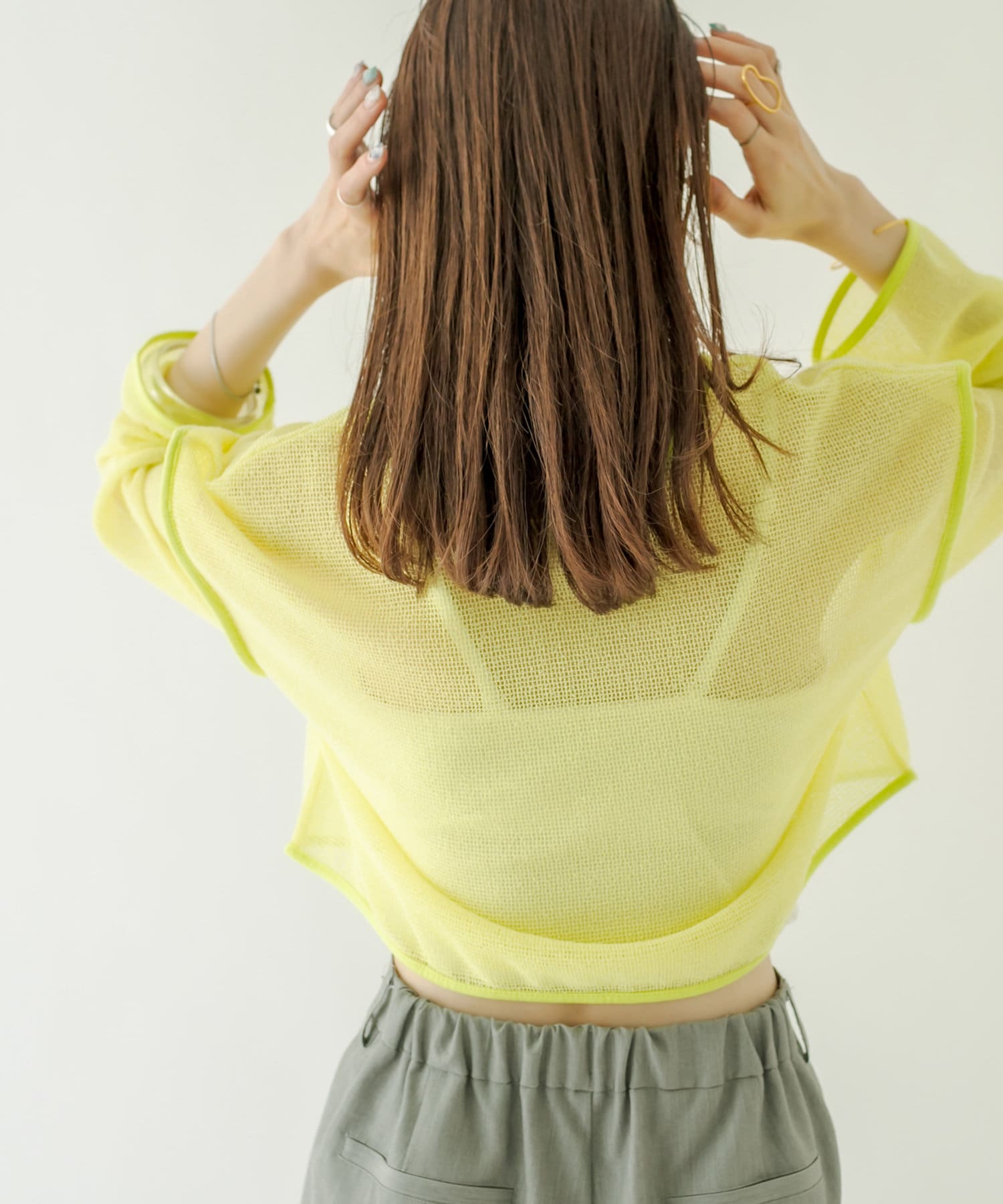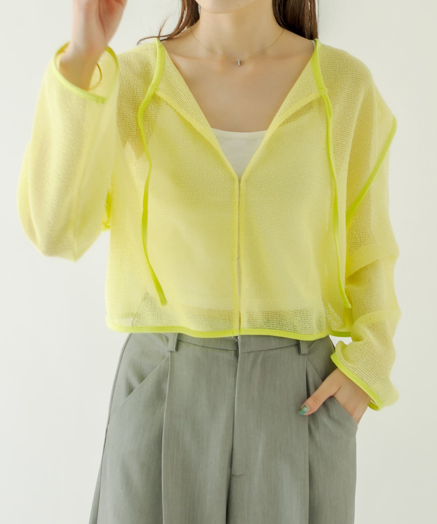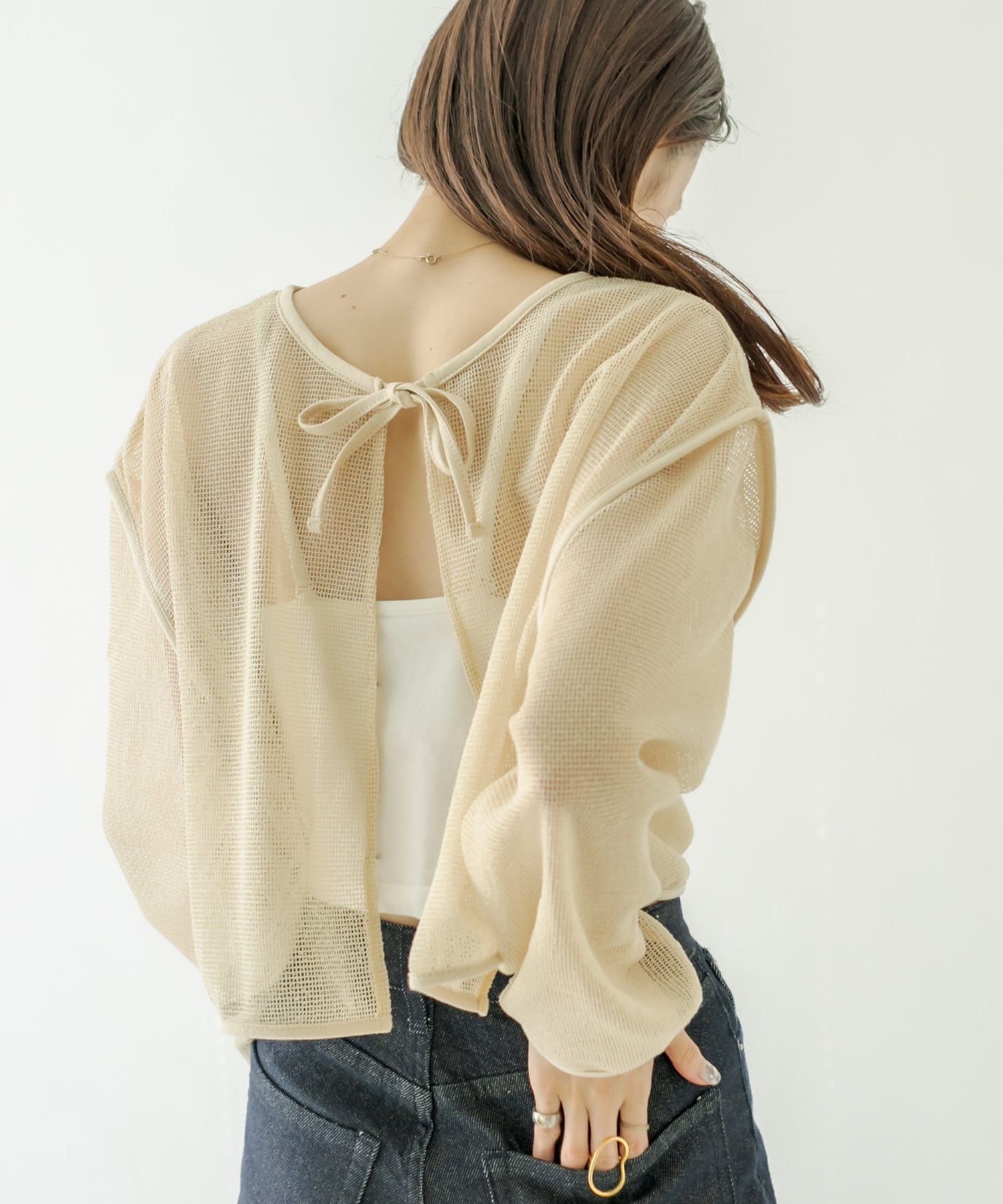 ・レイヤードスタイルに欠かせないメッシュ素材のカーディガン。