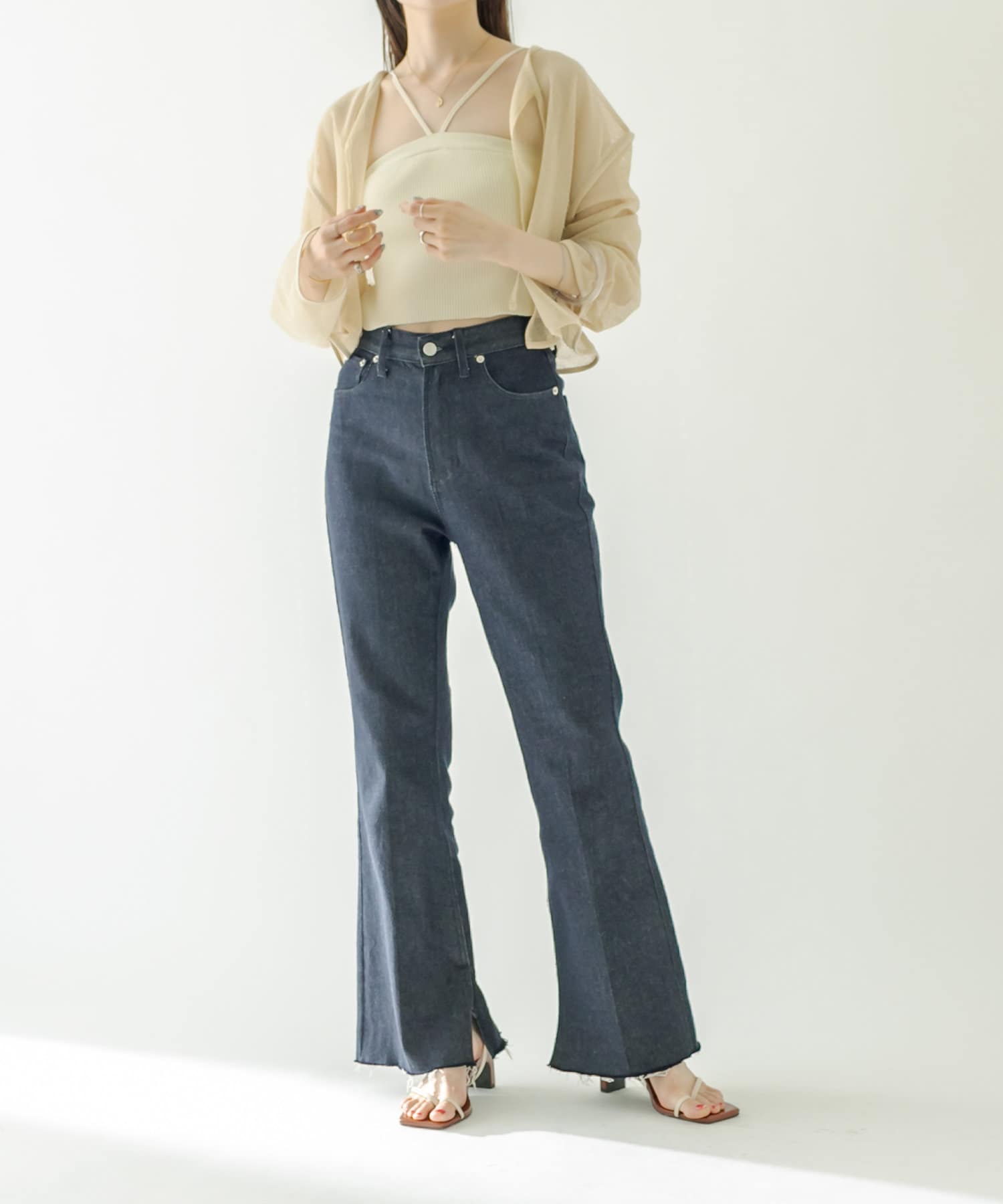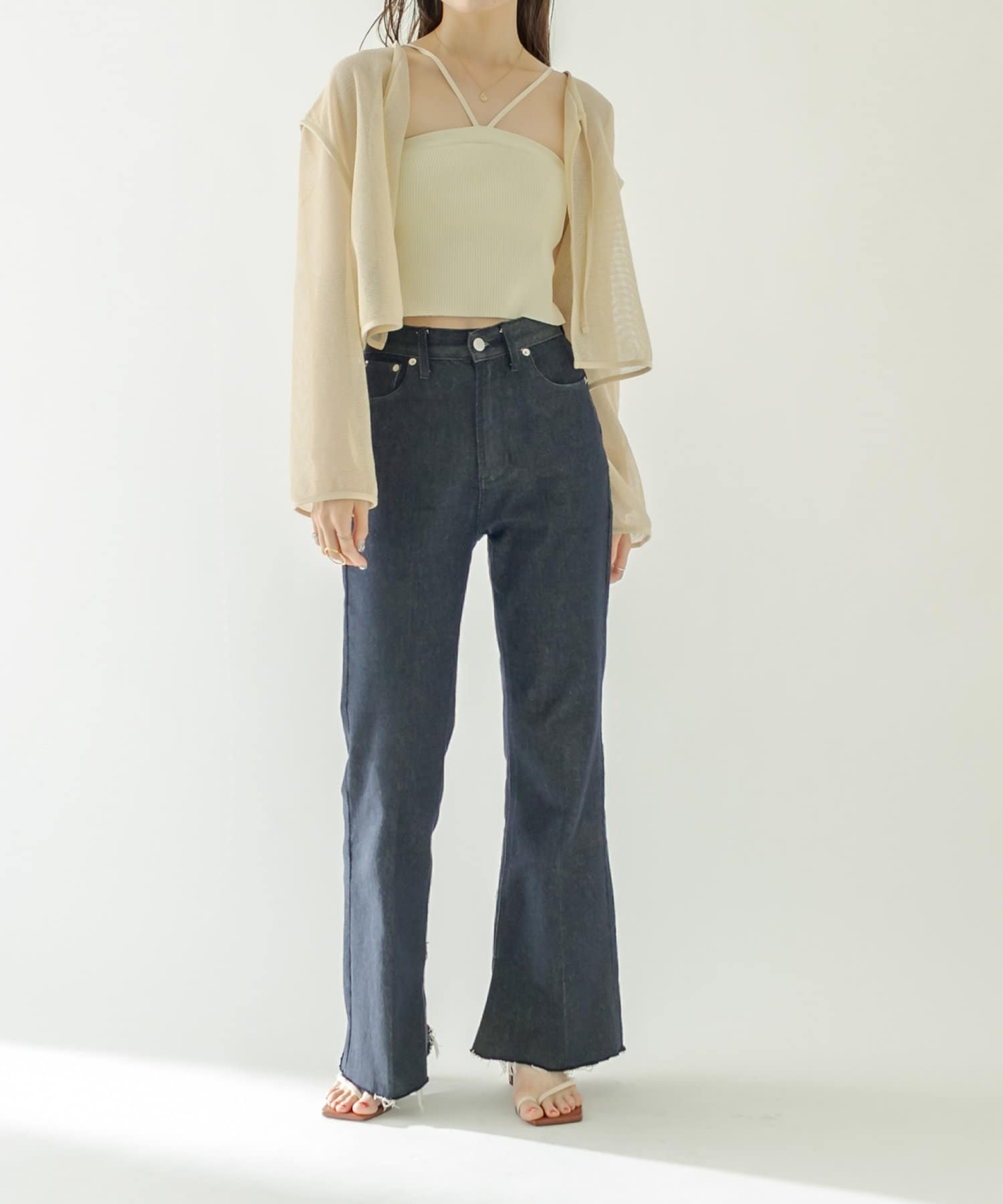 ・薄手のロンTやキャミソールなどに合わせるのがオススメ。