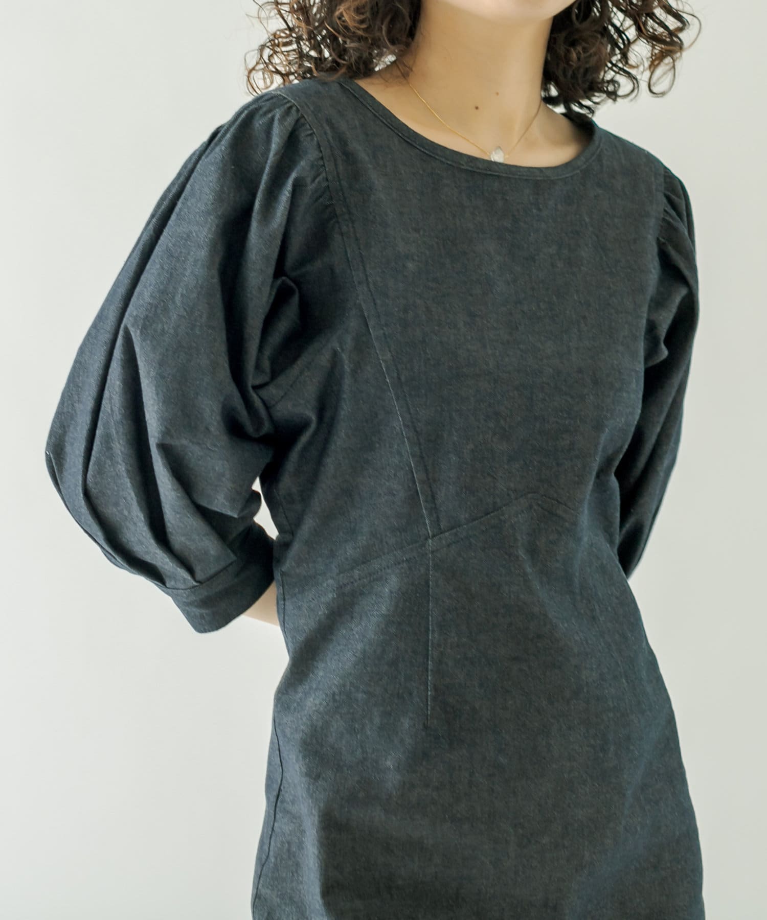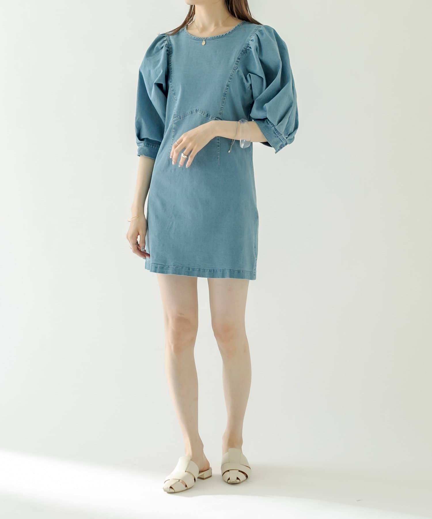 今季らしいパフスリーブが目を惹くデニムワンピース。