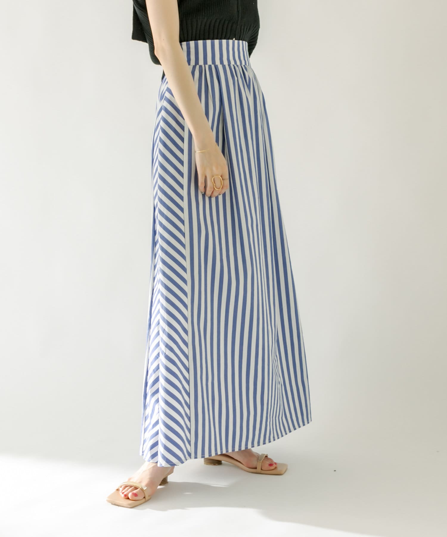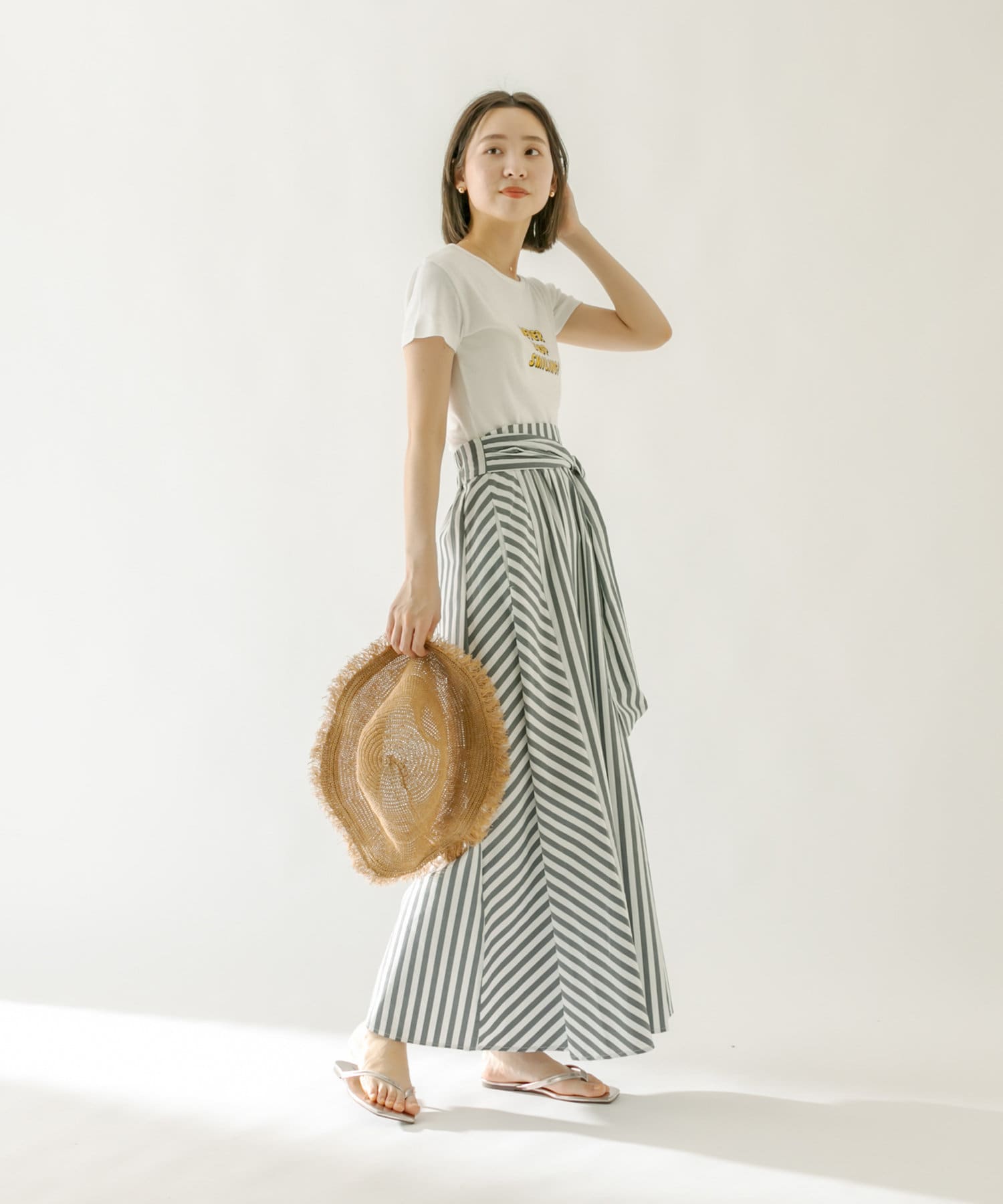 ・鮮やかなストライプ柄が目を惹くロングスカートが登場。