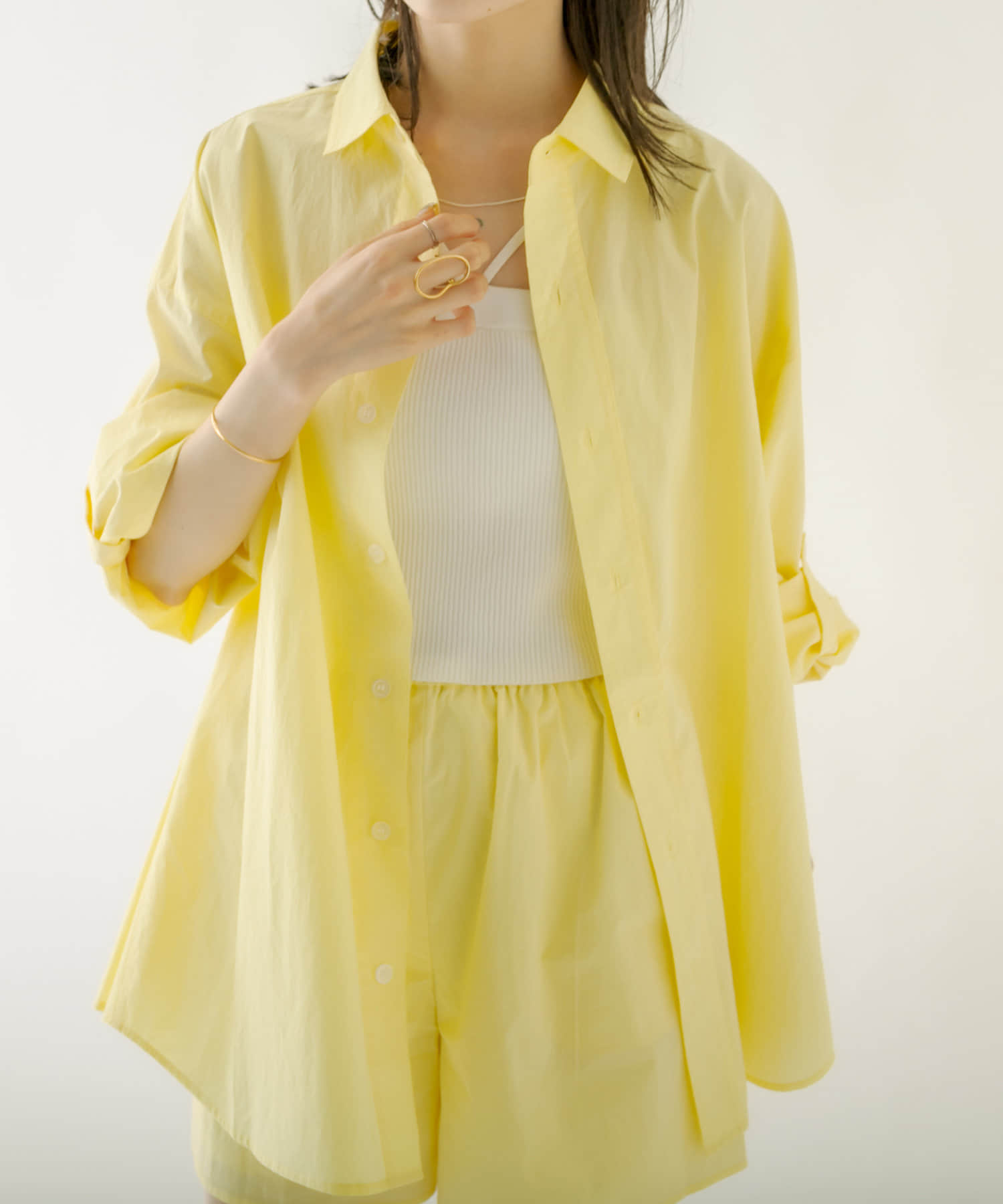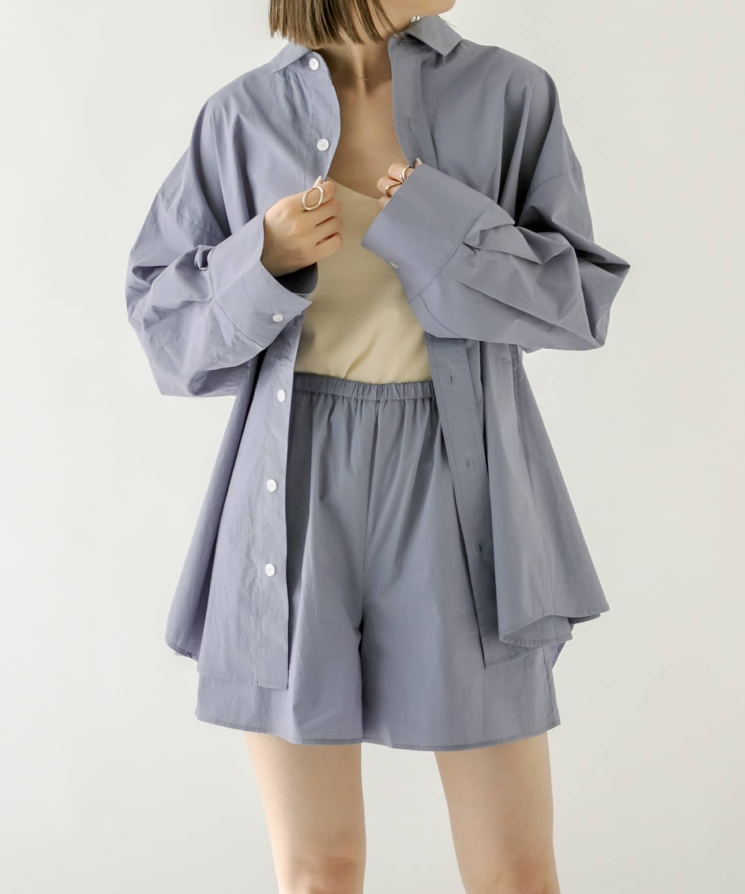・同素材のシャツに合わせてセットアップスタイルがオススメ◎