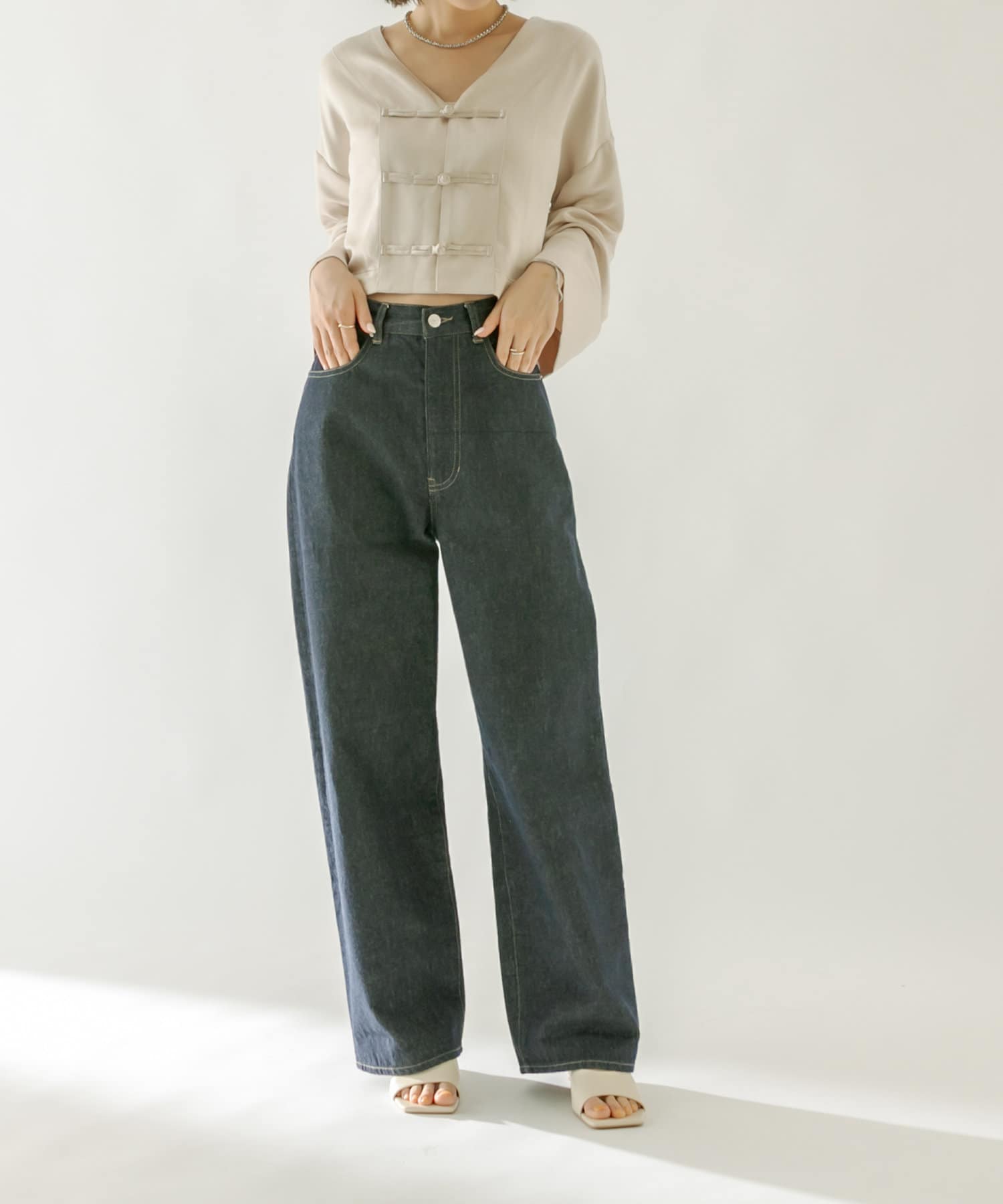 ・ハイウエストでスタイルを綺麗に見せシンプルに決まる1着。