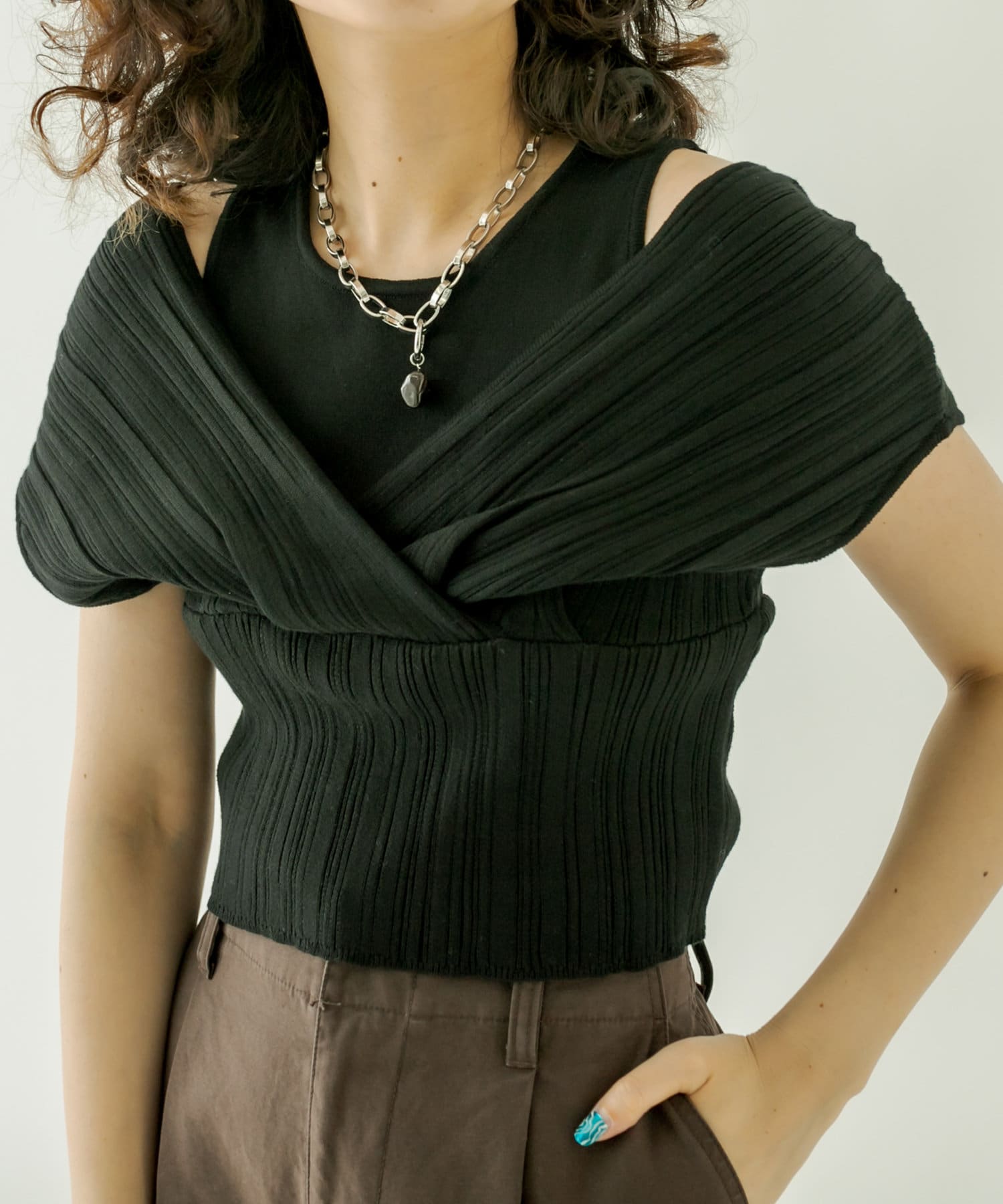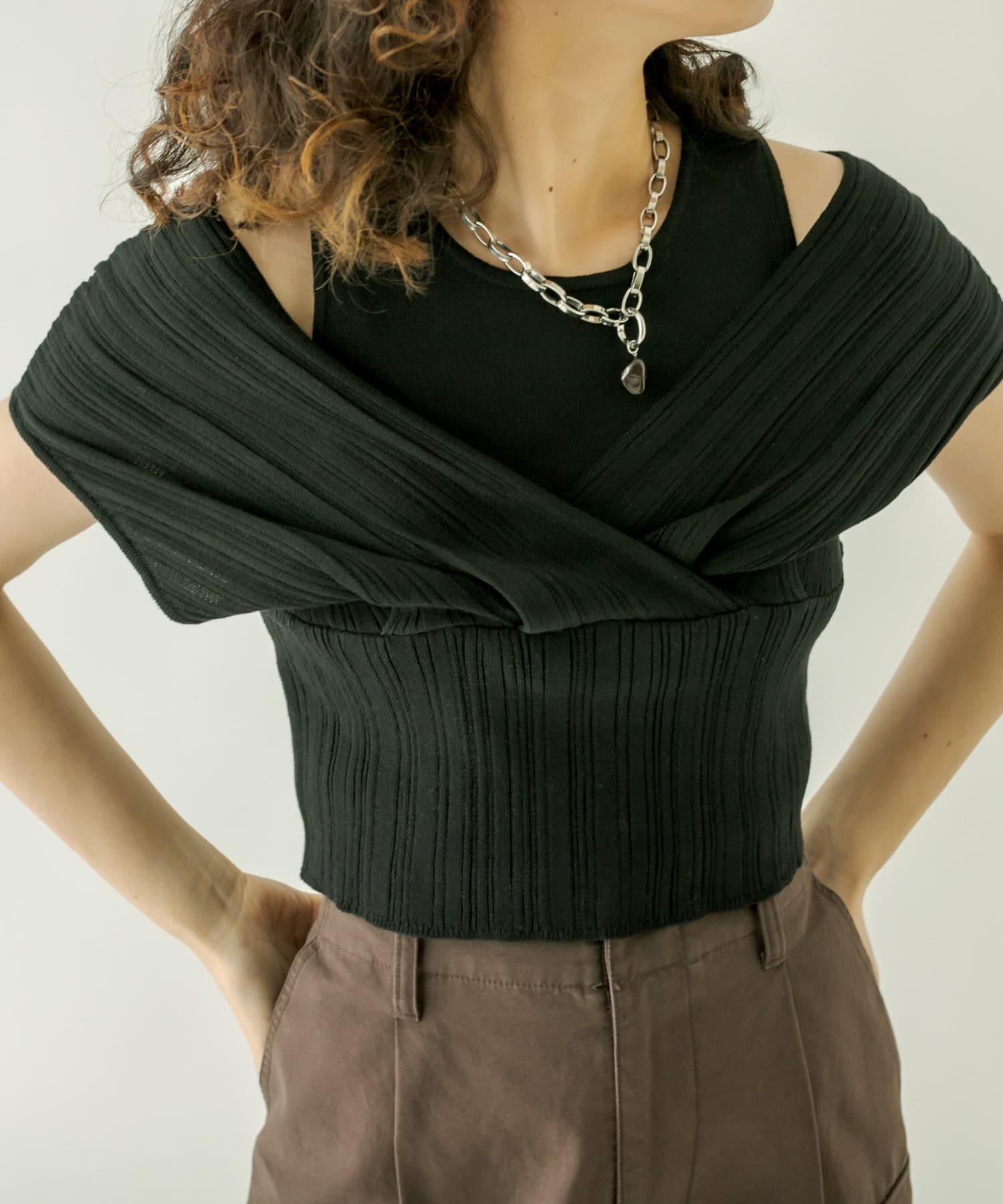 購入場所:店舗1枚でお洒落に見えます!大人っぽくてスカートにもパンツにも合います。ウエストが細く見えるのも気に入ってます!肩の出し具合も調整可能です!ただし、タンクトップの肩の部分からインナーが見えてしまうので、インナーには注意が必要だと思いました。
