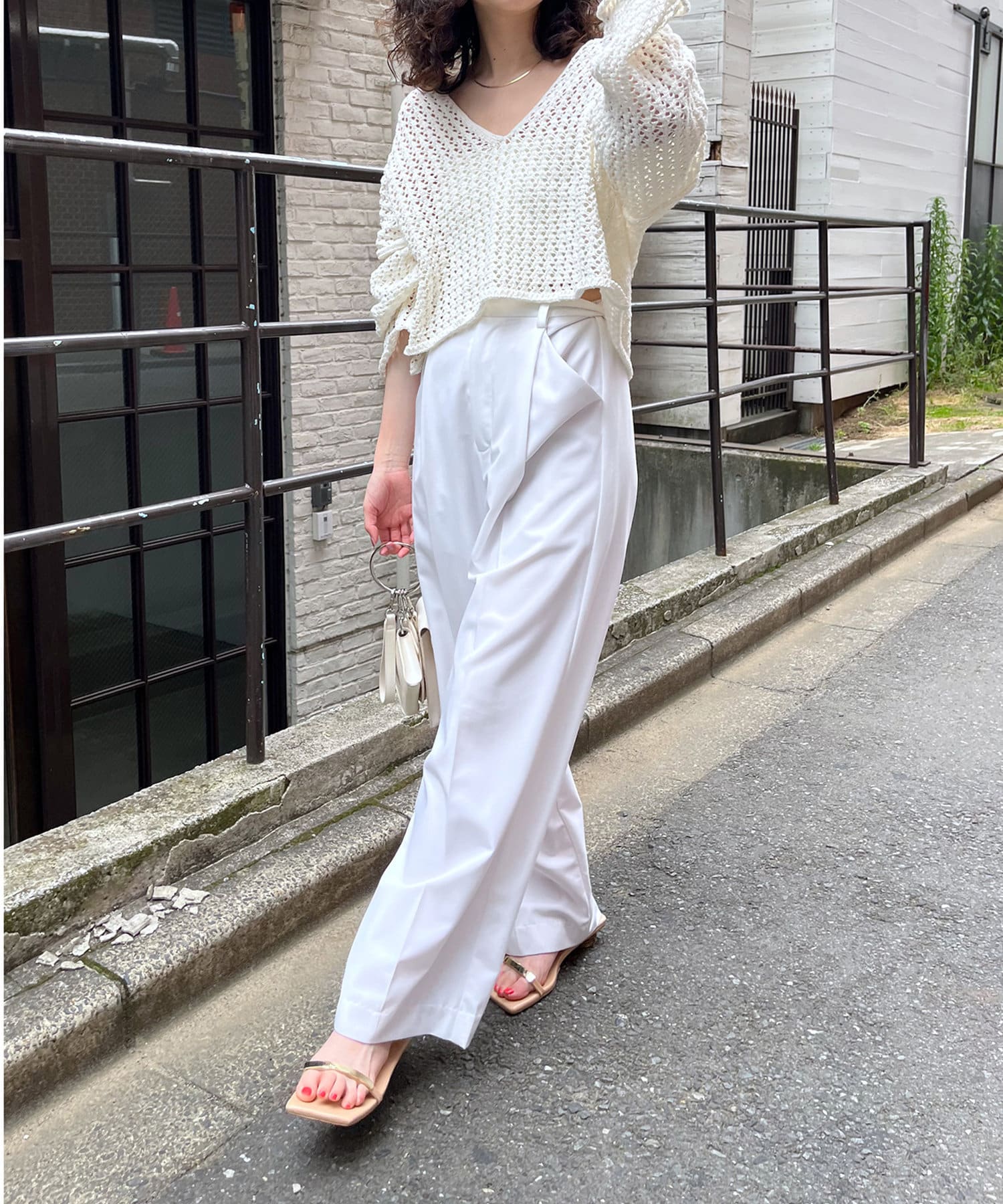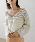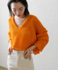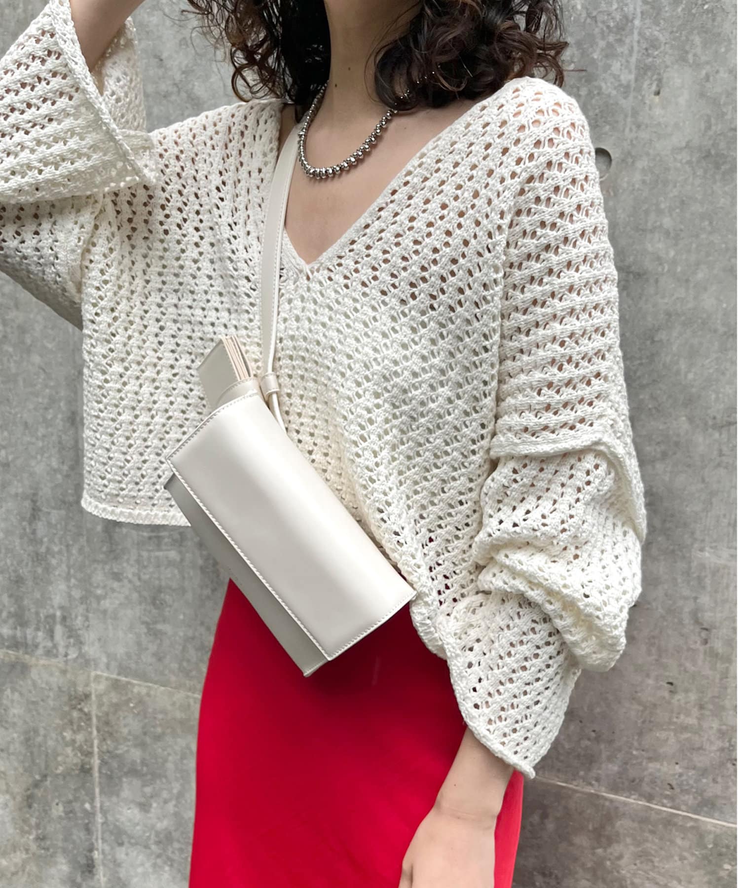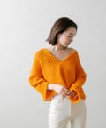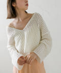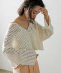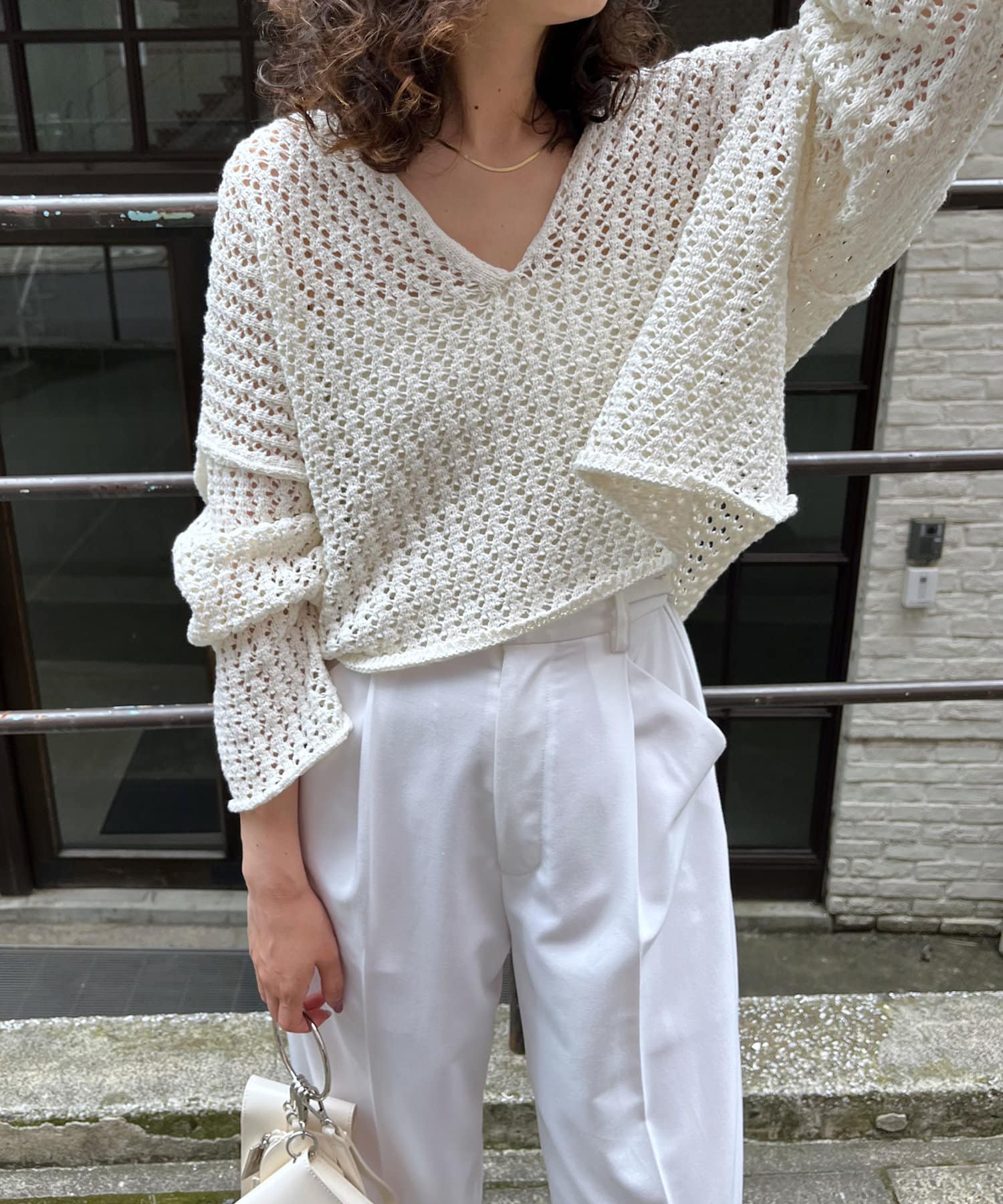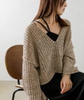 ・ざっくりと開いたVネックが女性らしい華奢なシルエットに。
