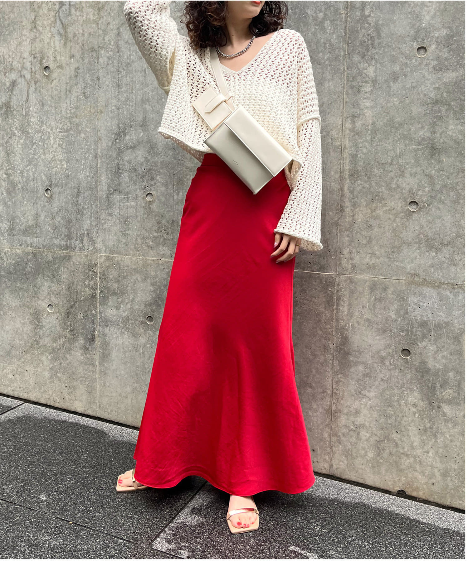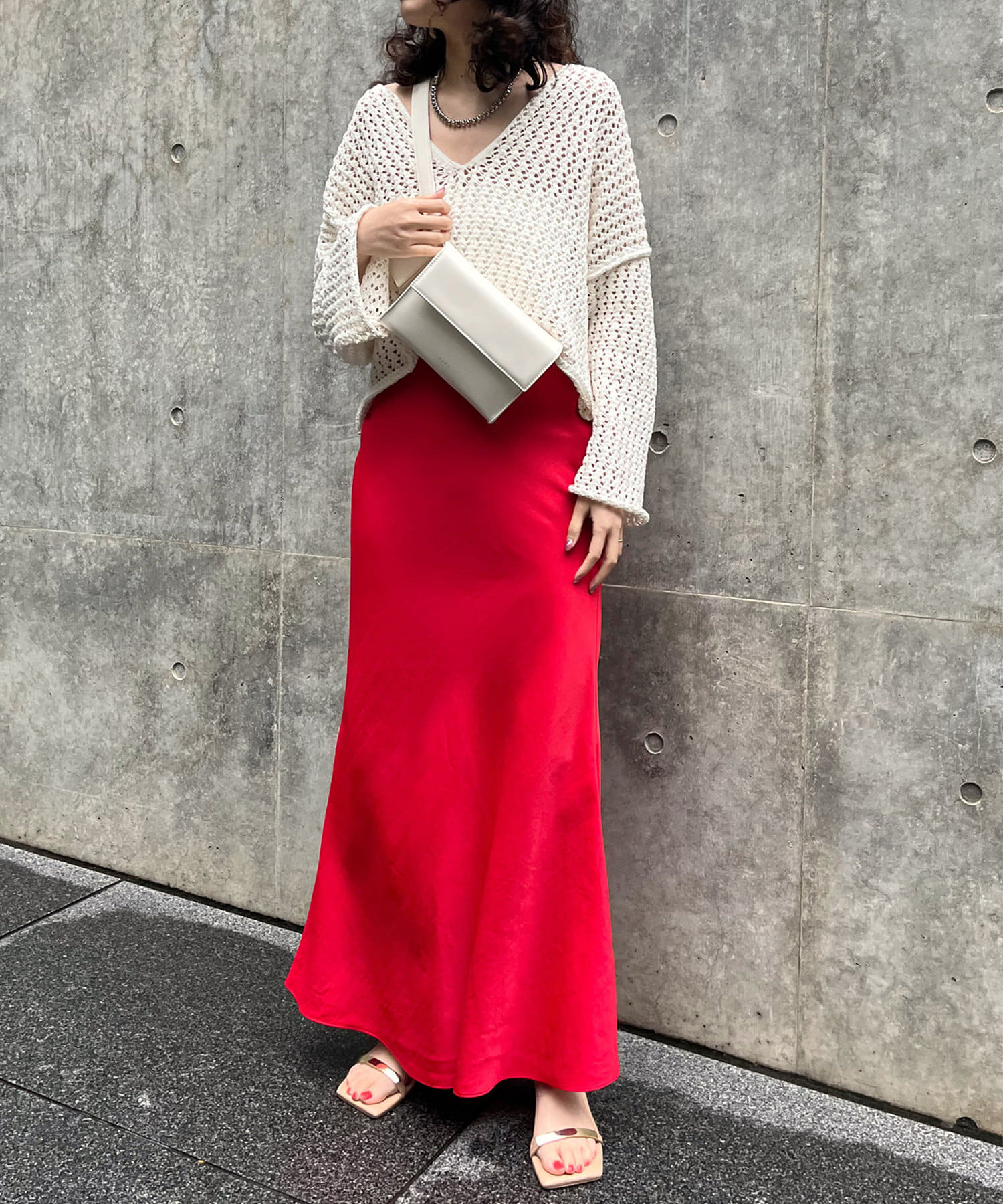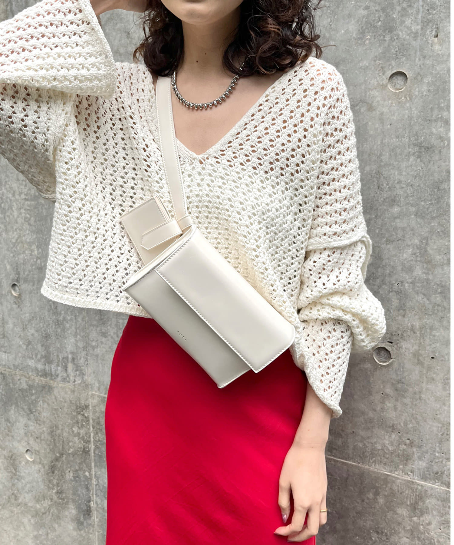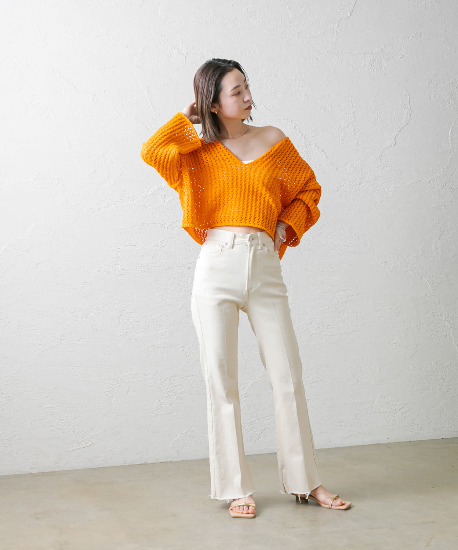 ・ざっくりと開いたVネックが女性らしい華奢なシルエットに。