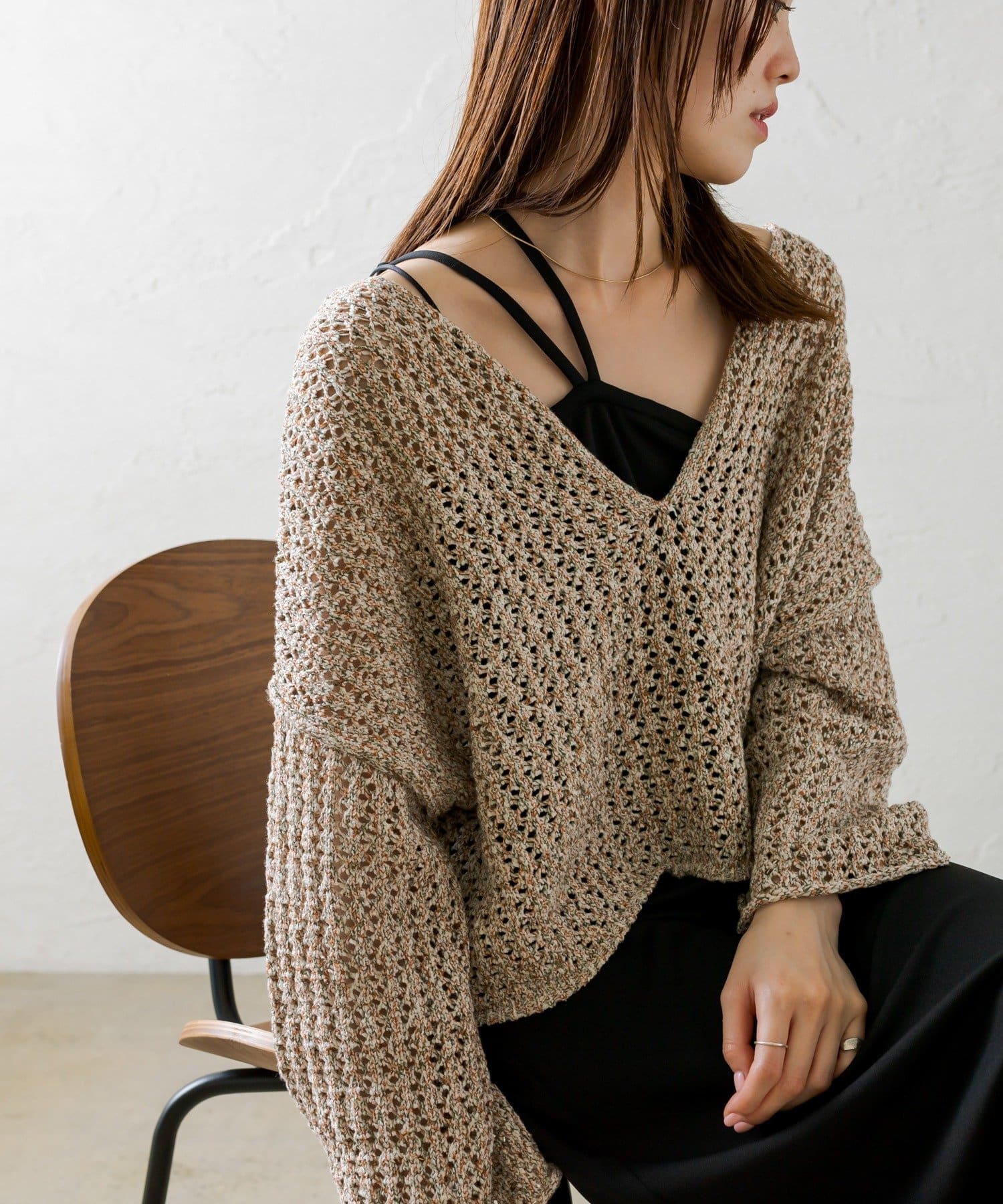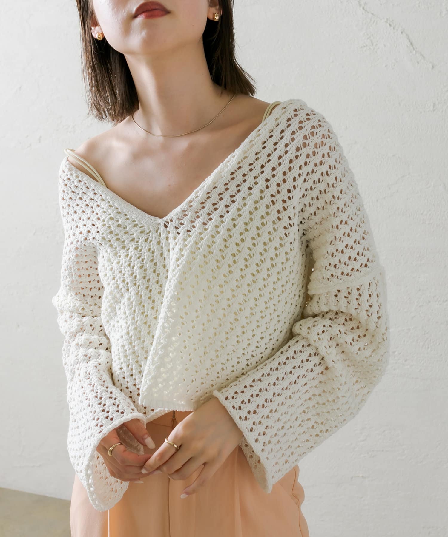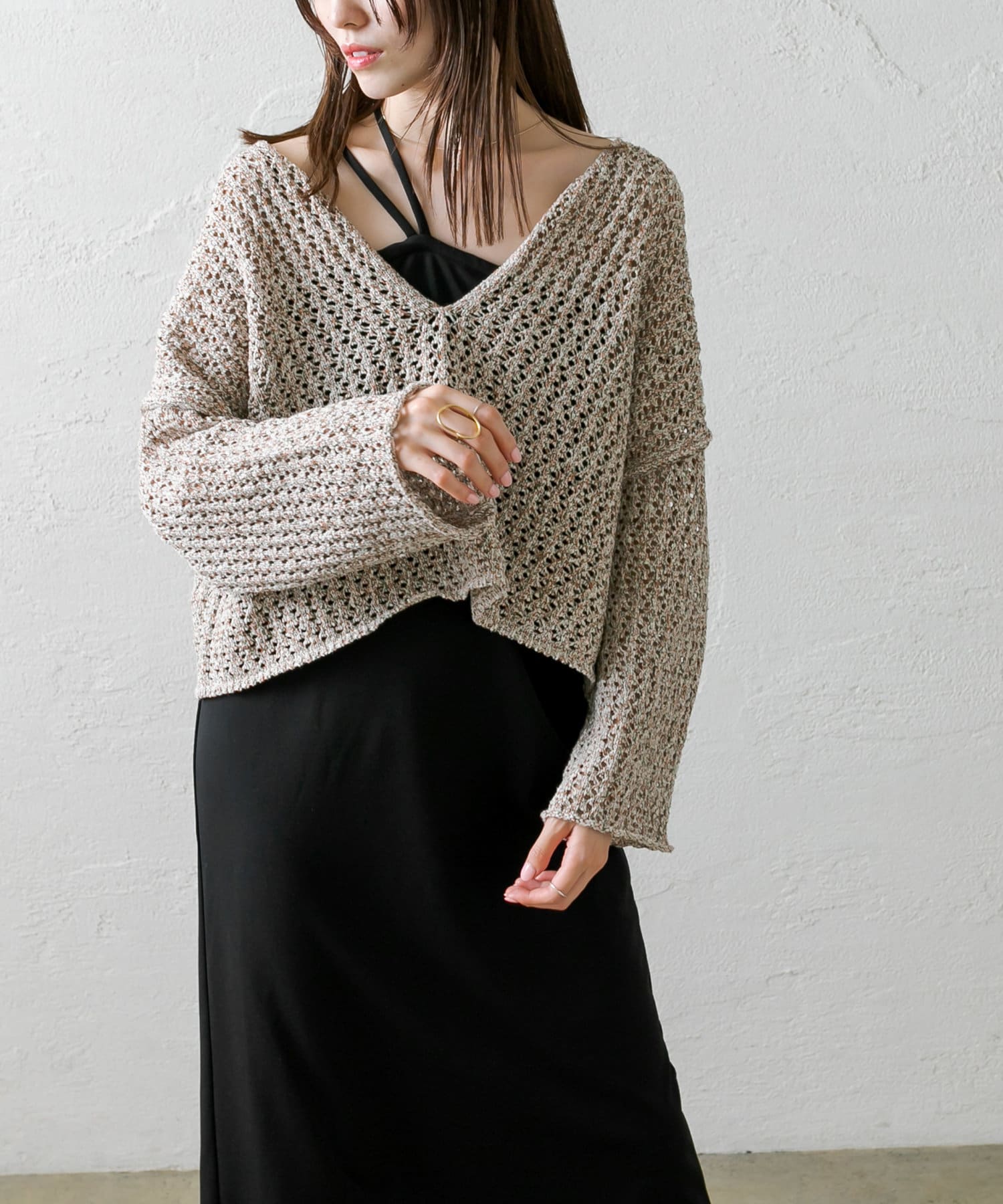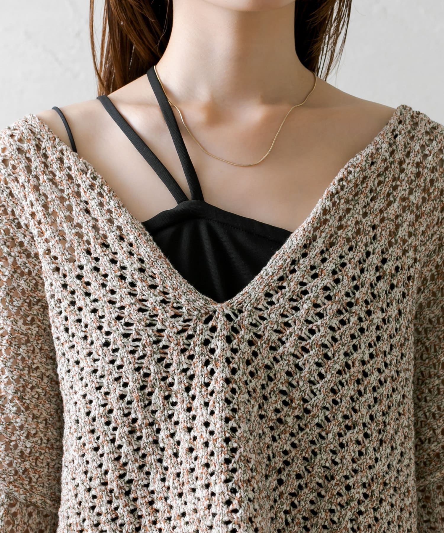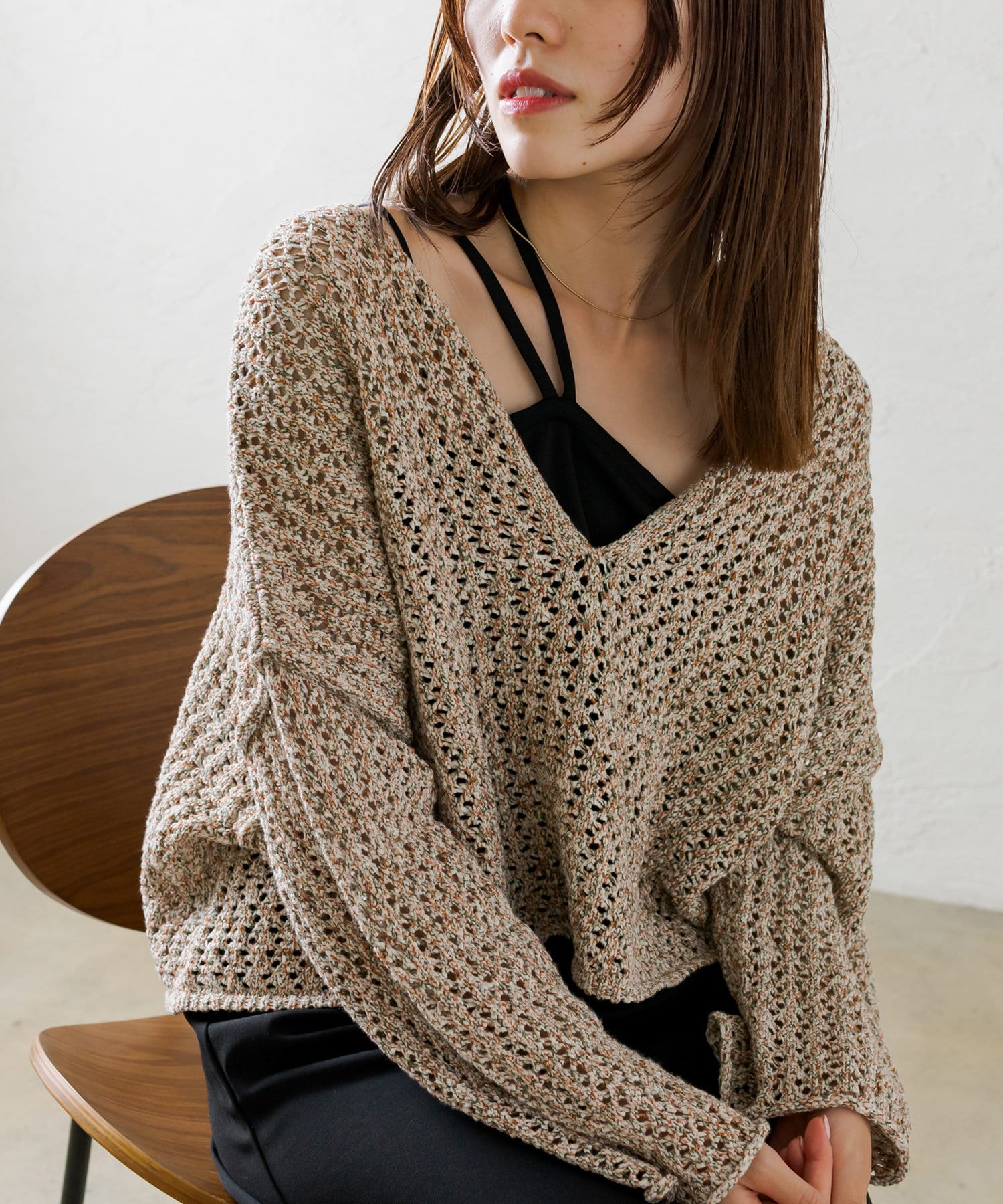 TOP > mystic > レディース > トップス > ニット/セーター > 【2WAY】メランジメッシュニット