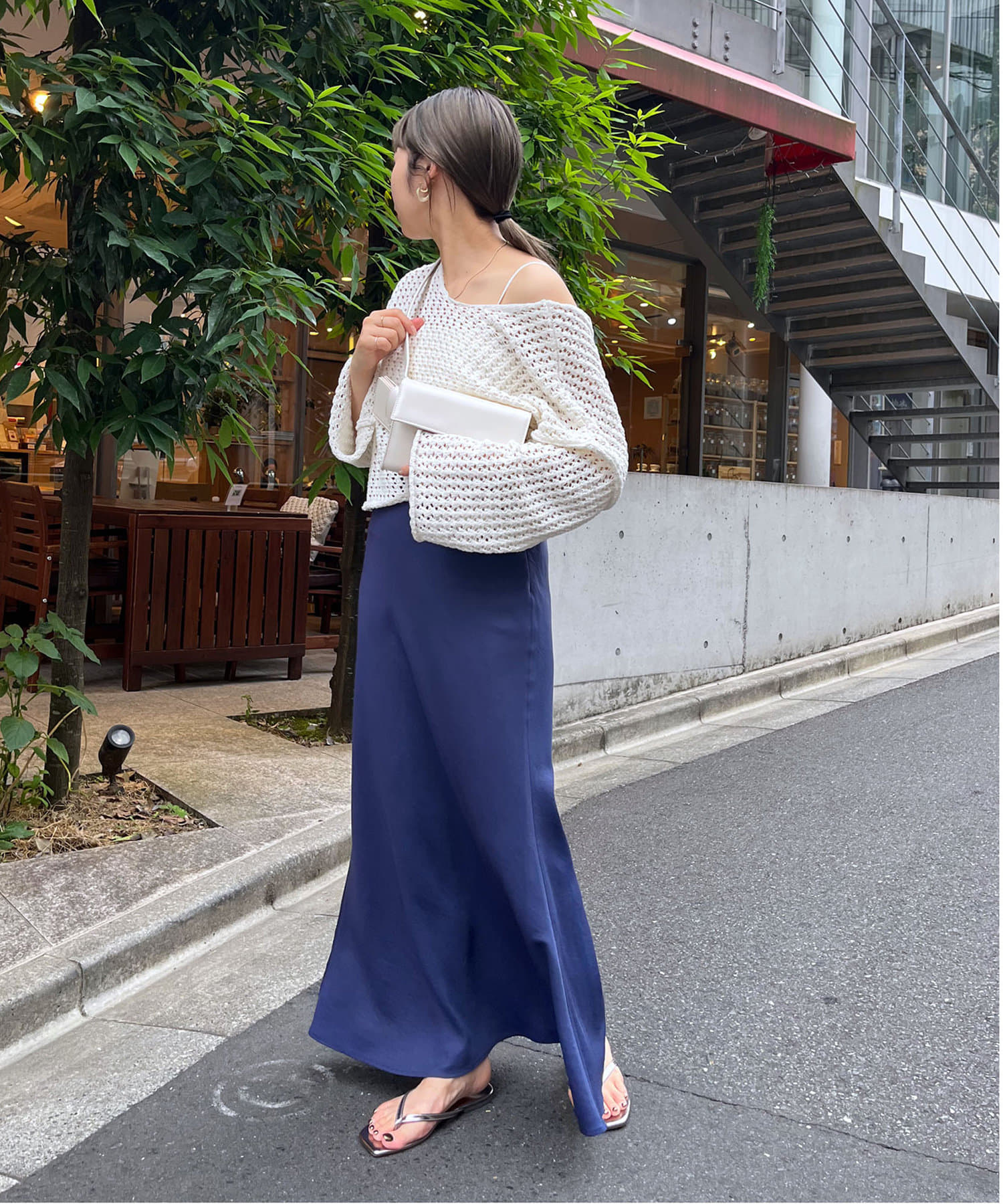 とっても万能!程よい肌見せで大人でもちょうどいいアイテムで、ワンピースの上からでもパンツやスカートなんでも合わせやすいです。