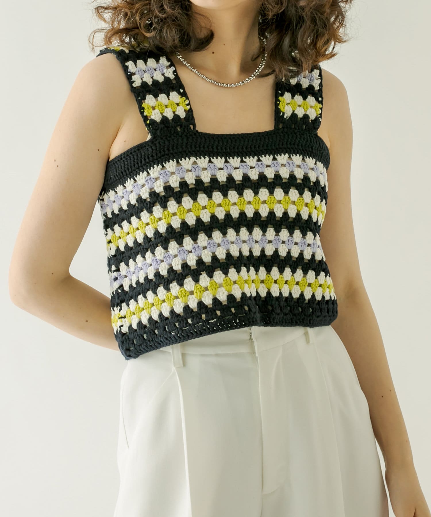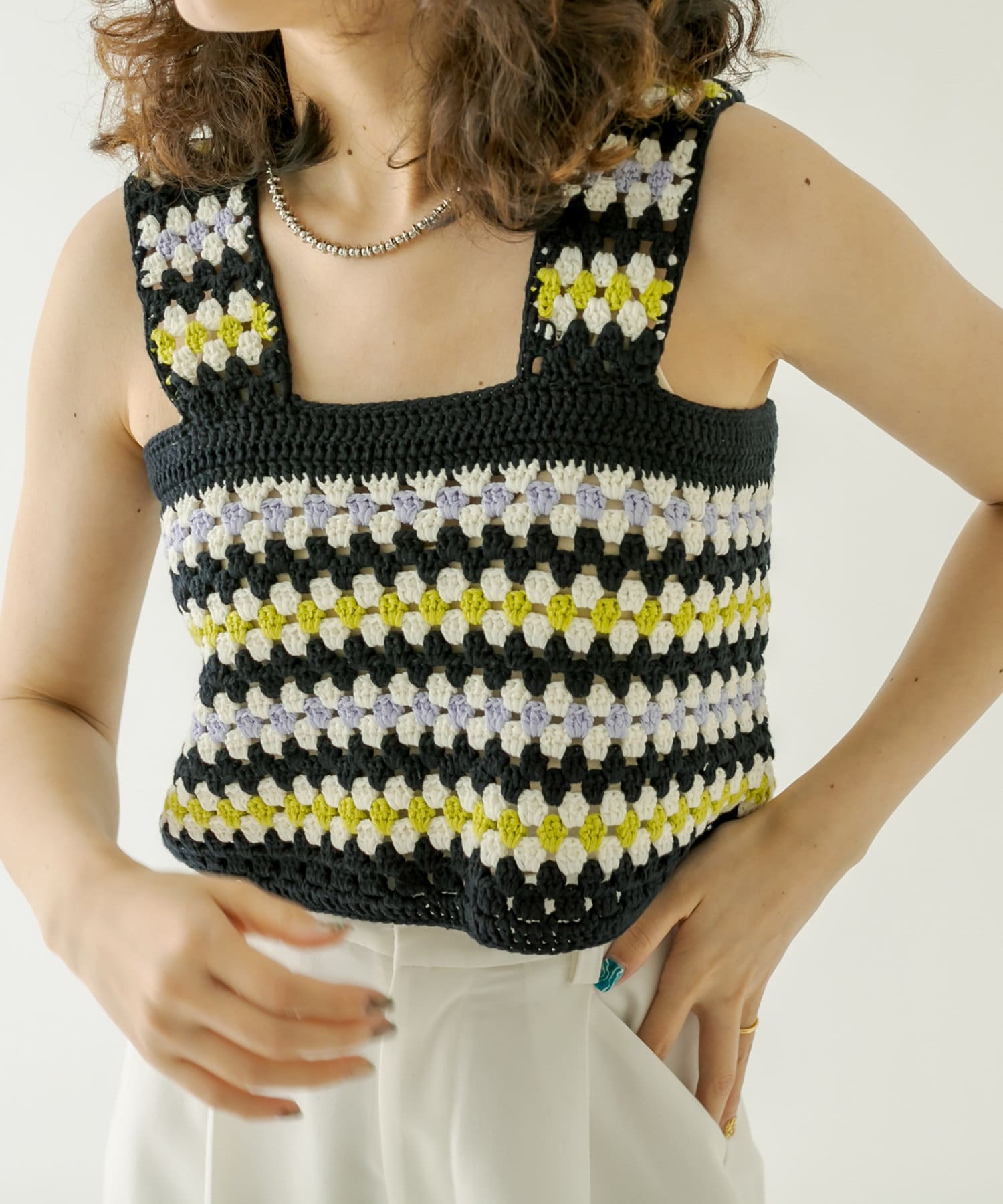 ・かぎ針デザインが目を惹く夏らしいビスチェ。
