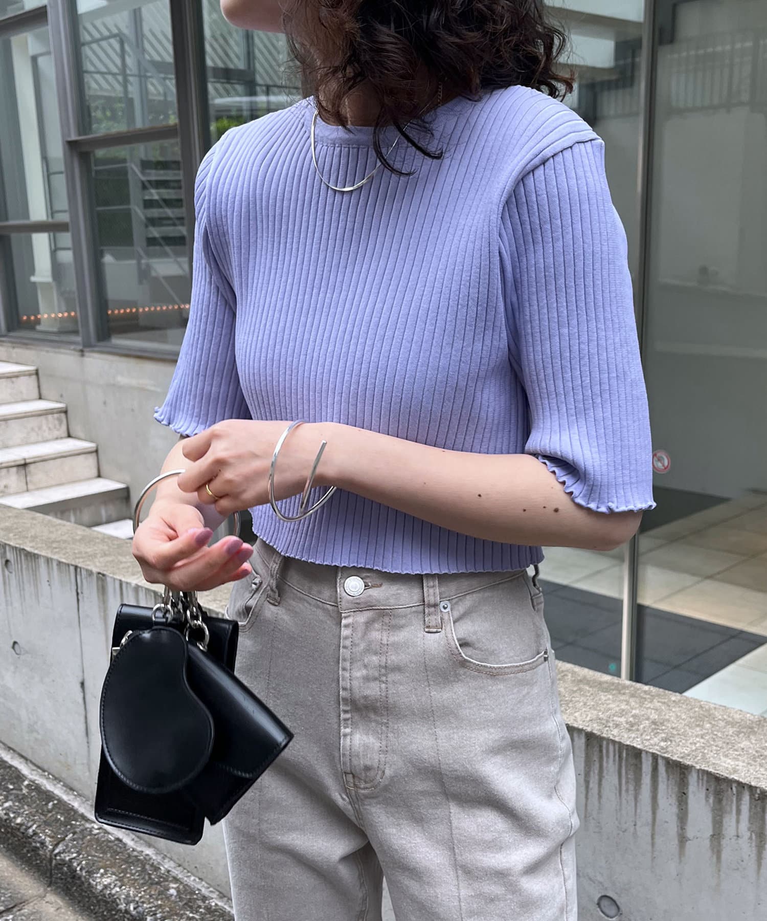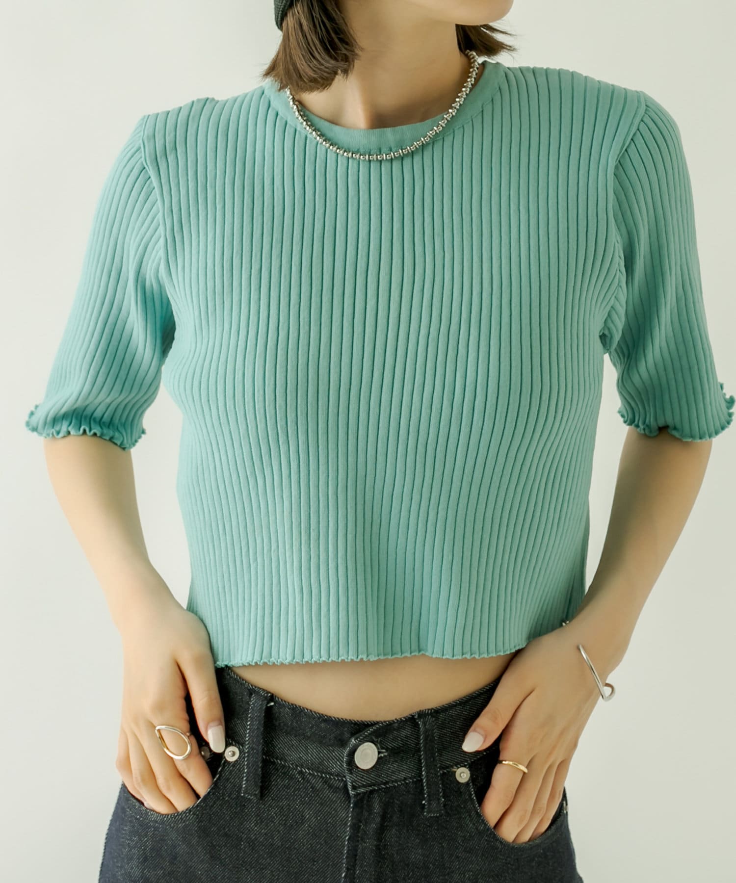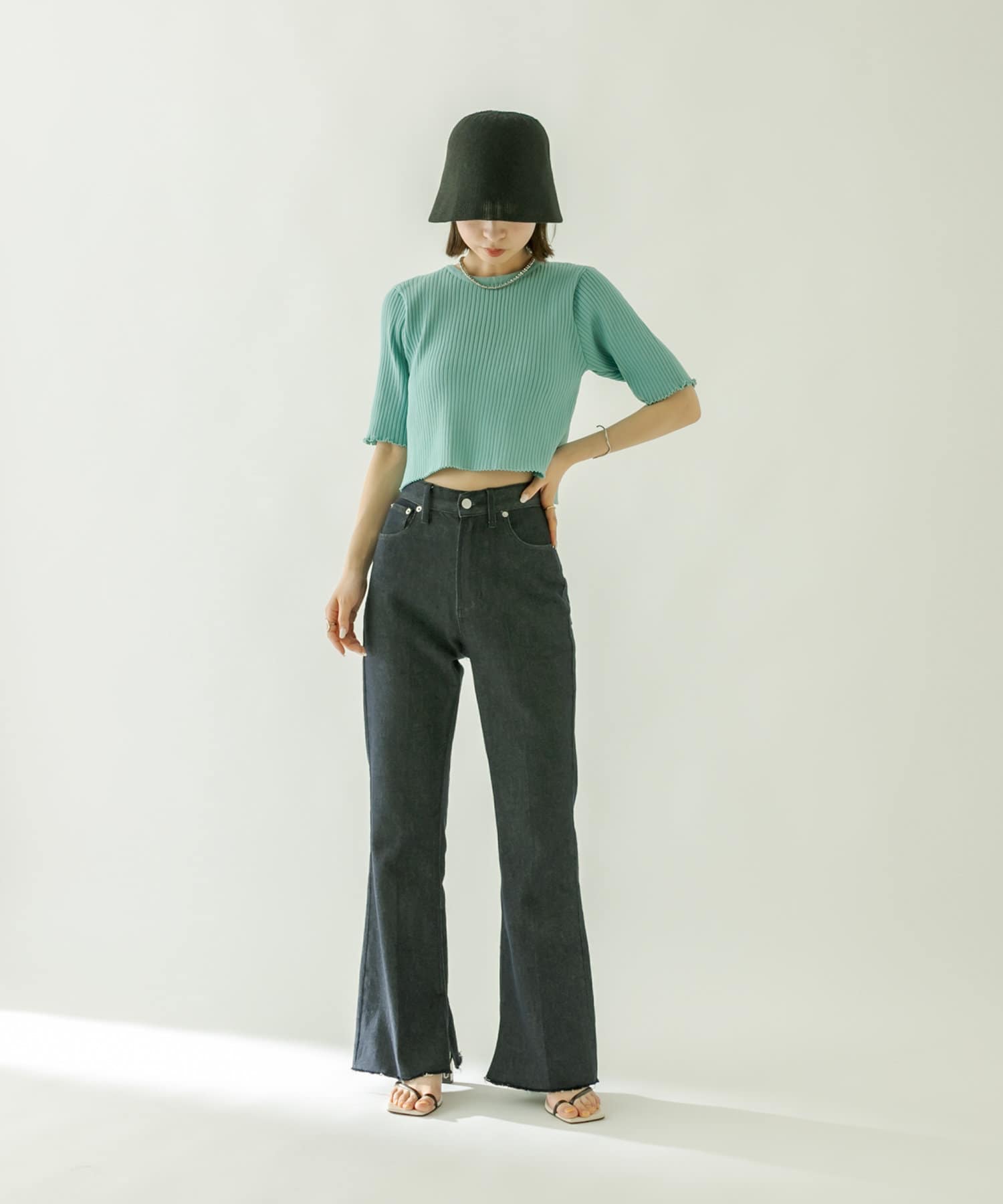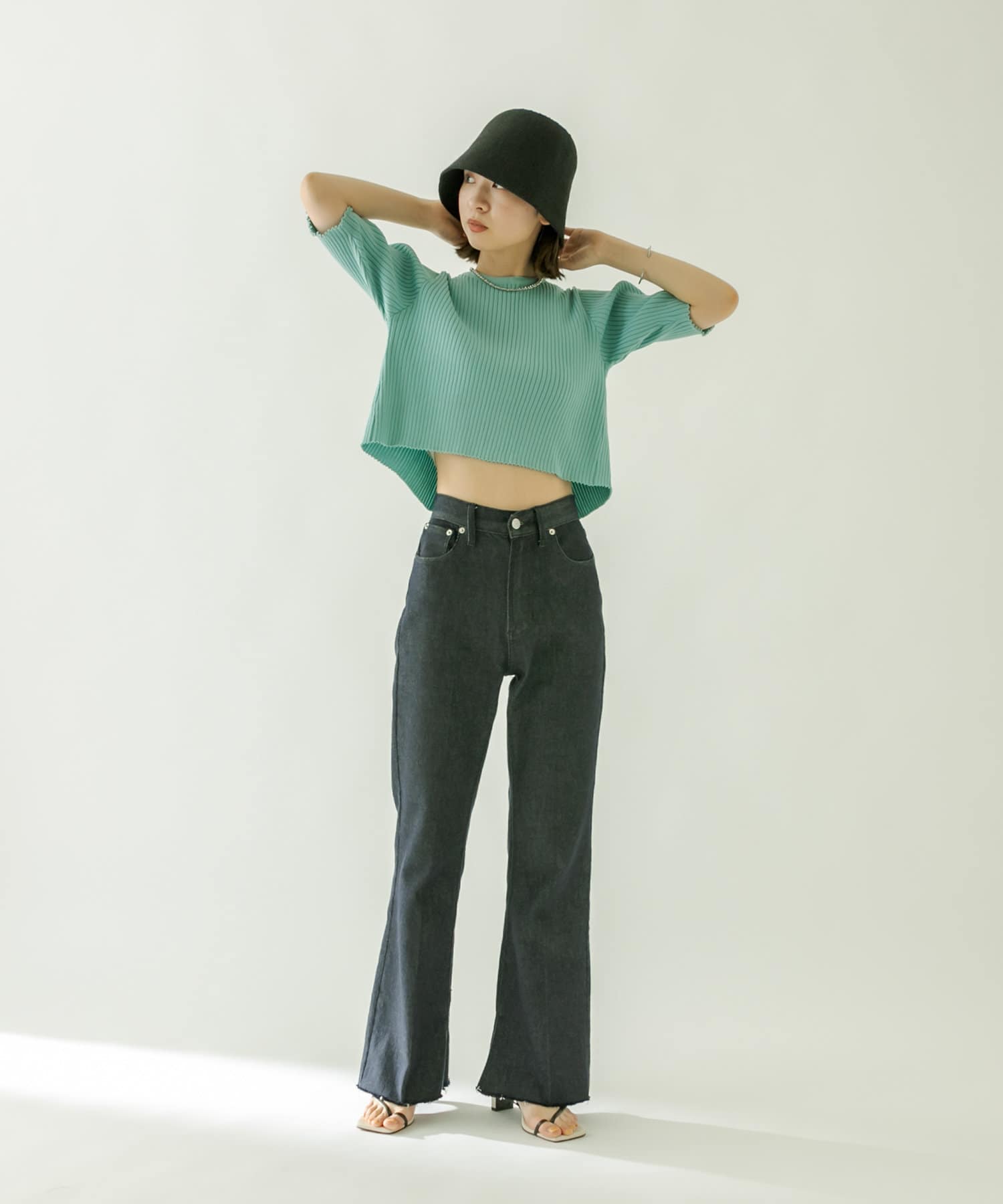 ・コンパクトなショート丈デザインなのでハイウエストのボトムと相性抜群◎