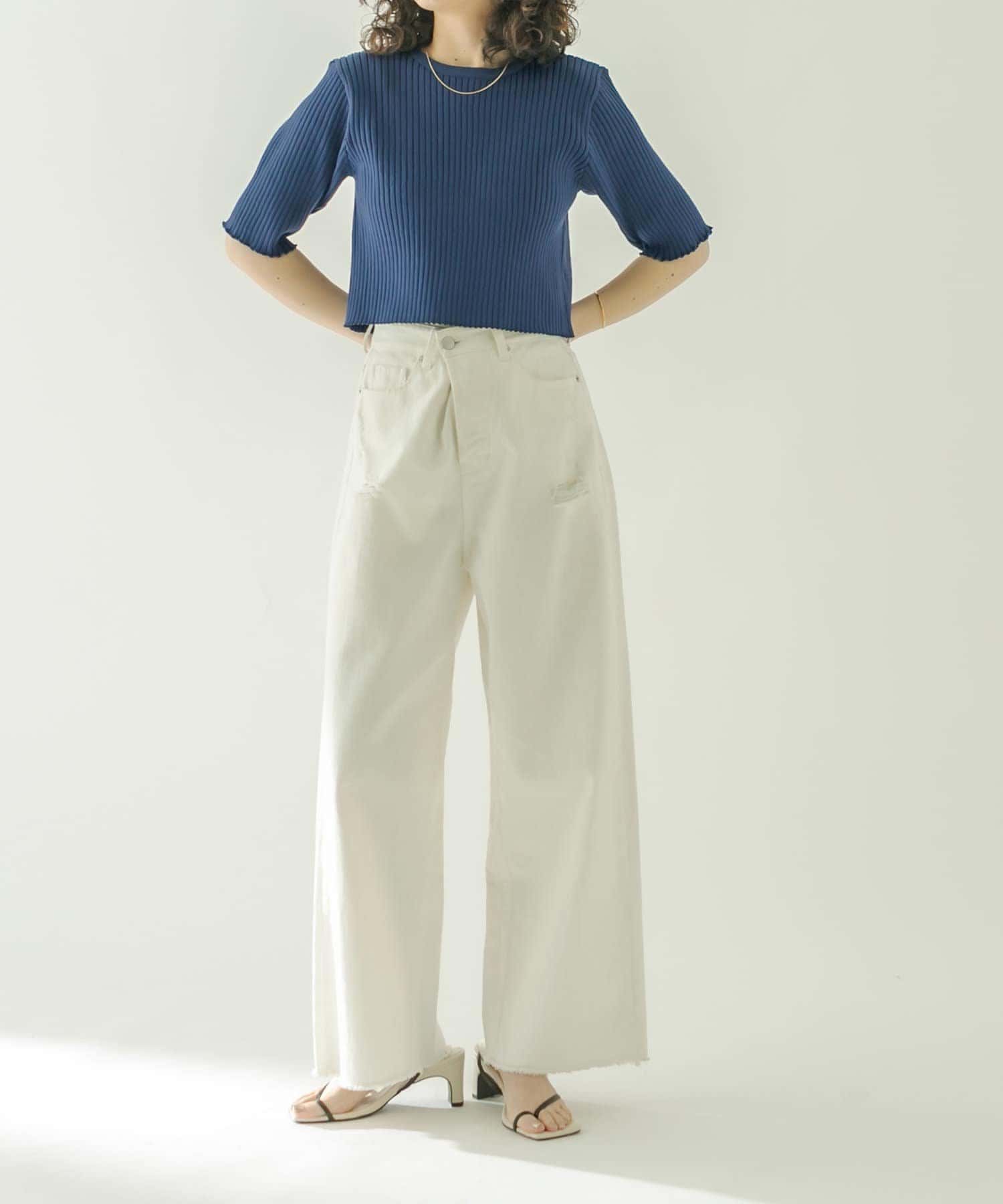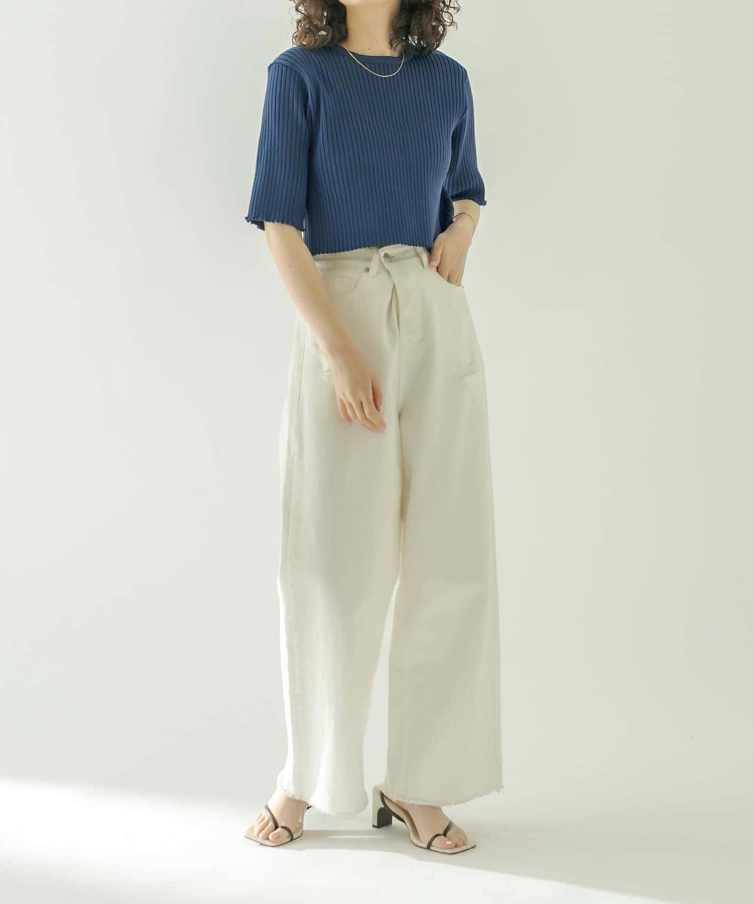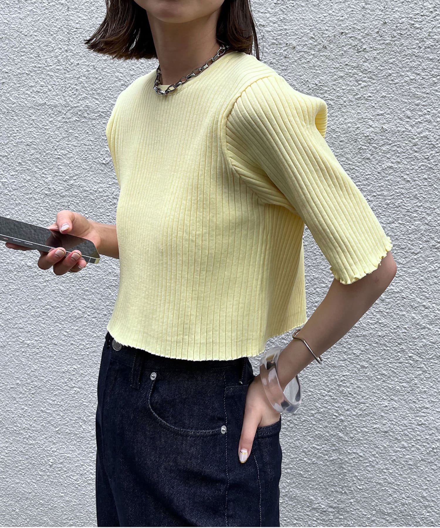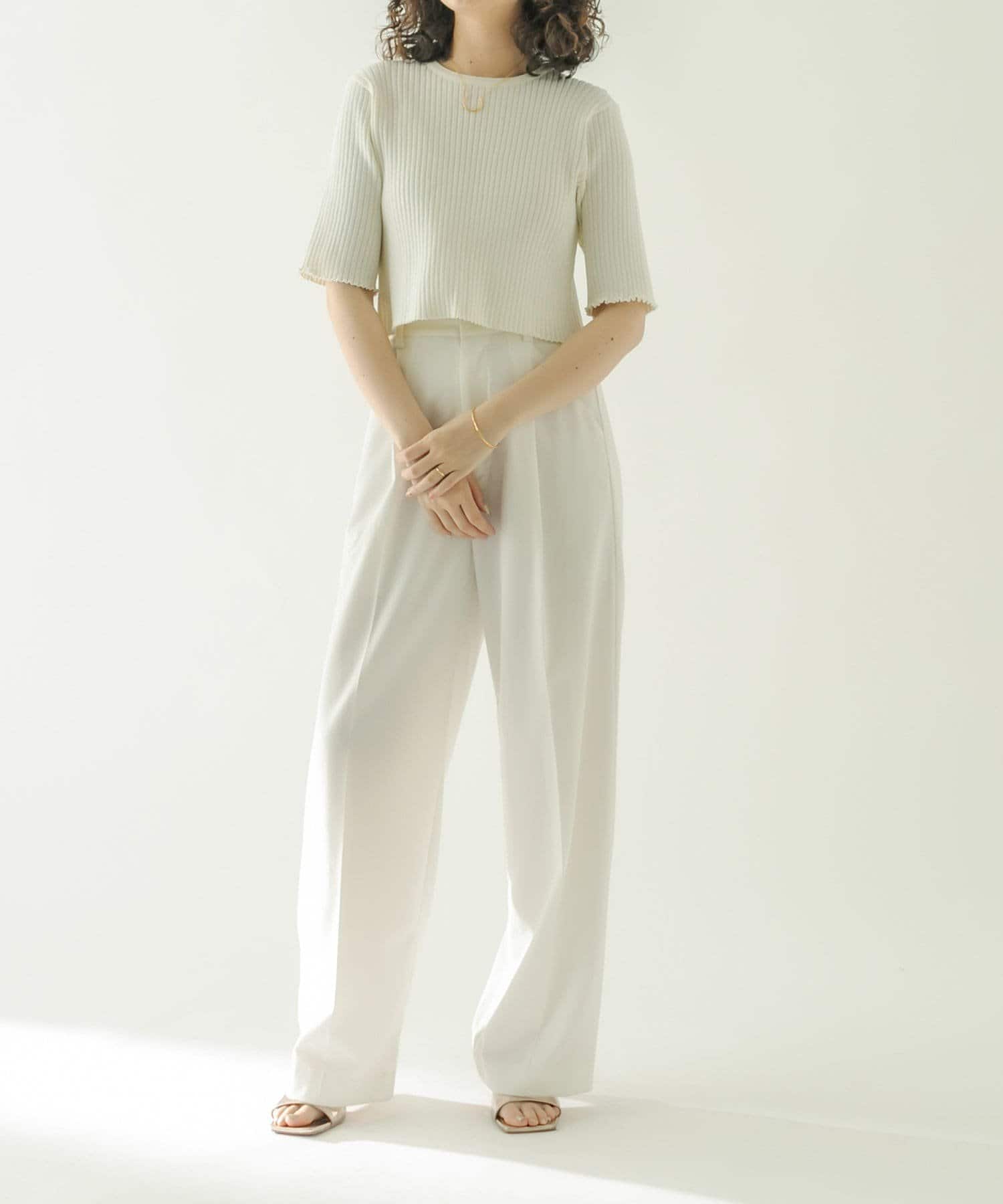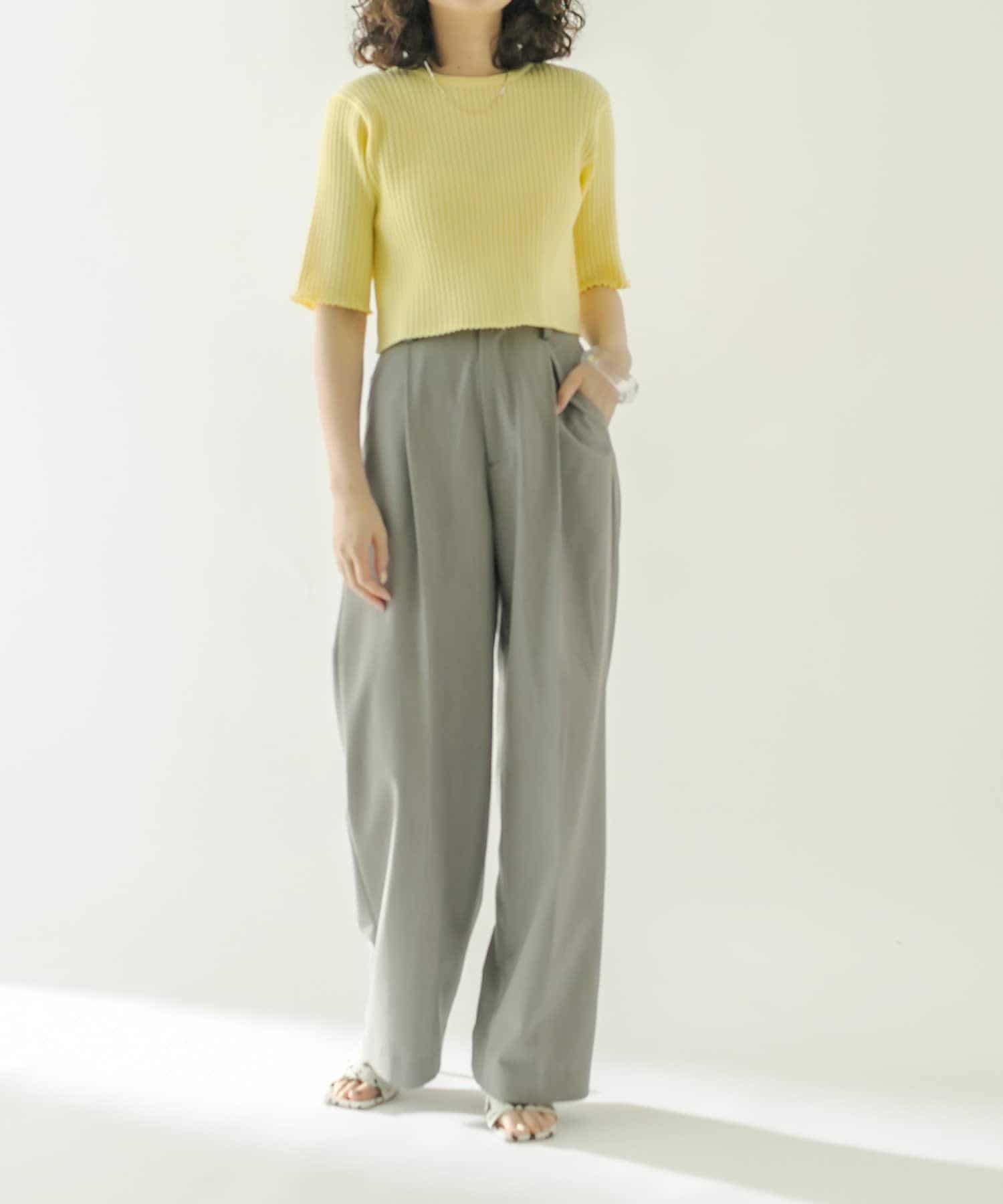 ・コンパクトなショート丈デザインなのでハイウエストのボトムと相性抜群◎