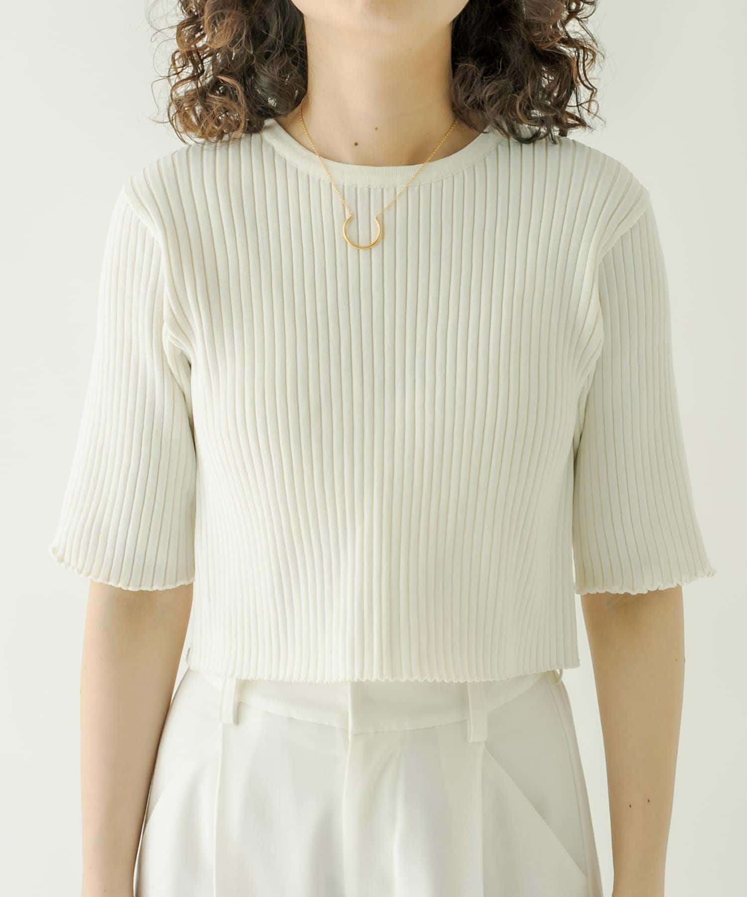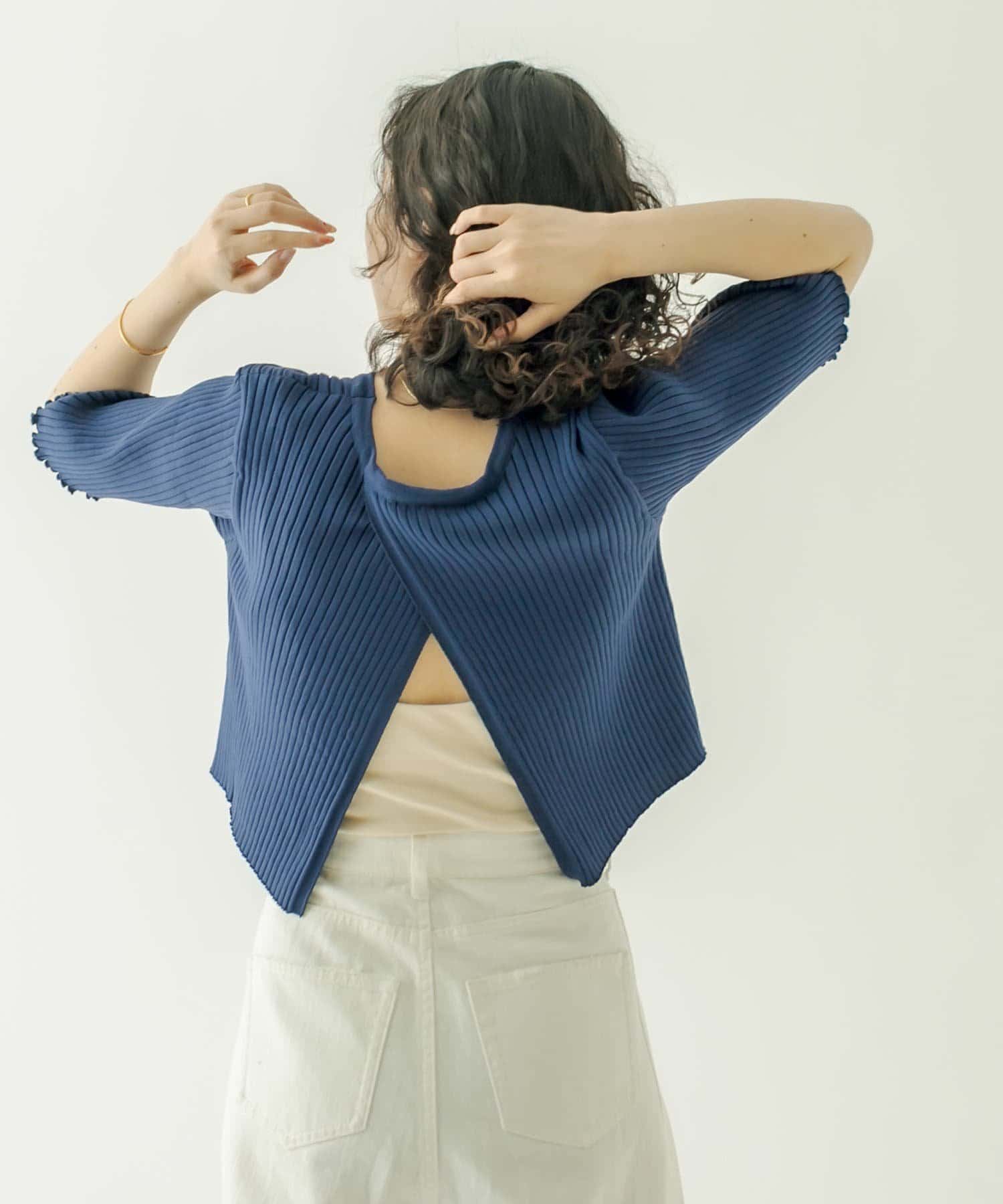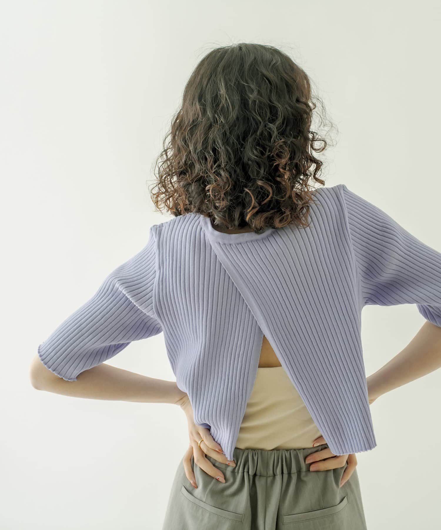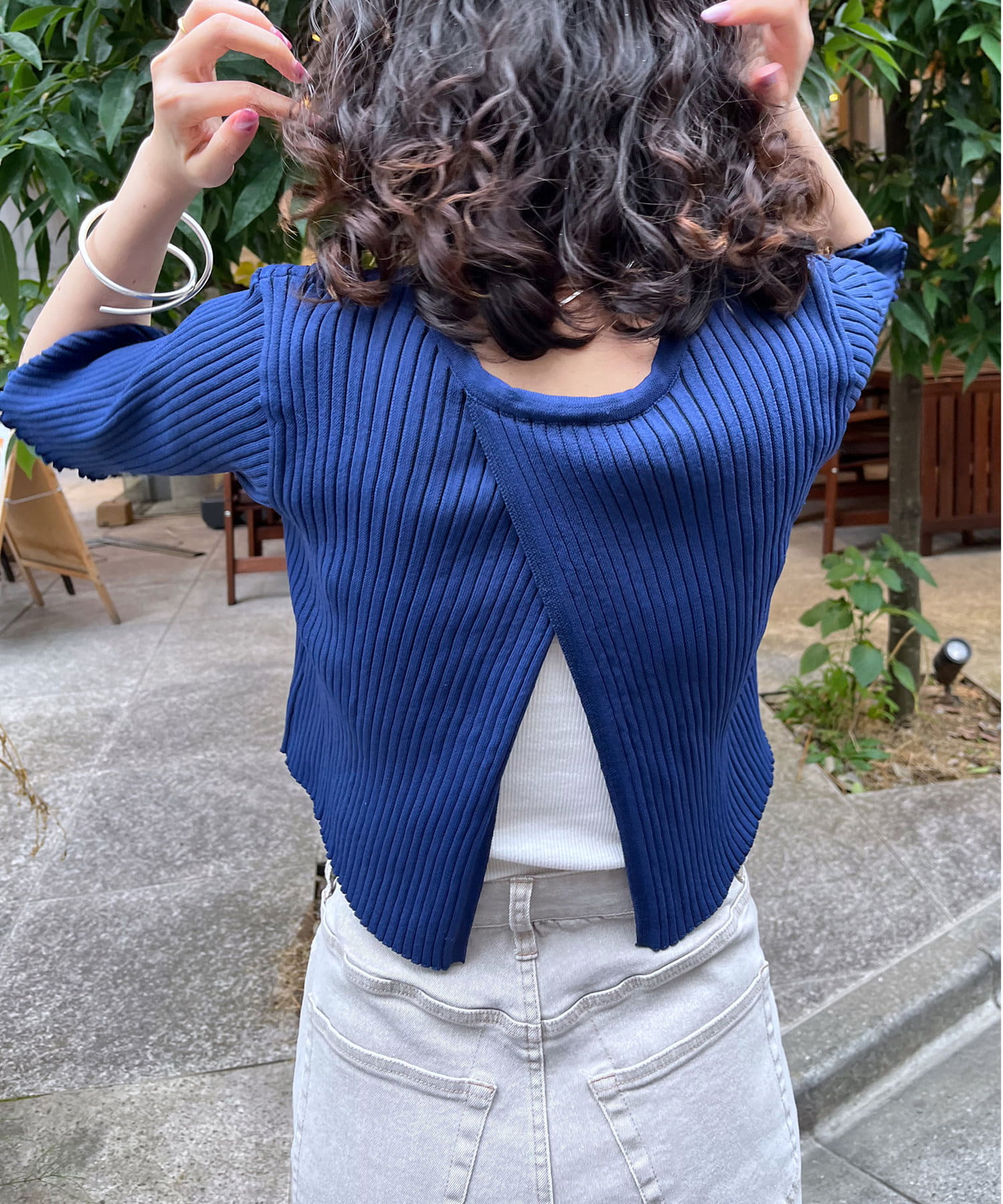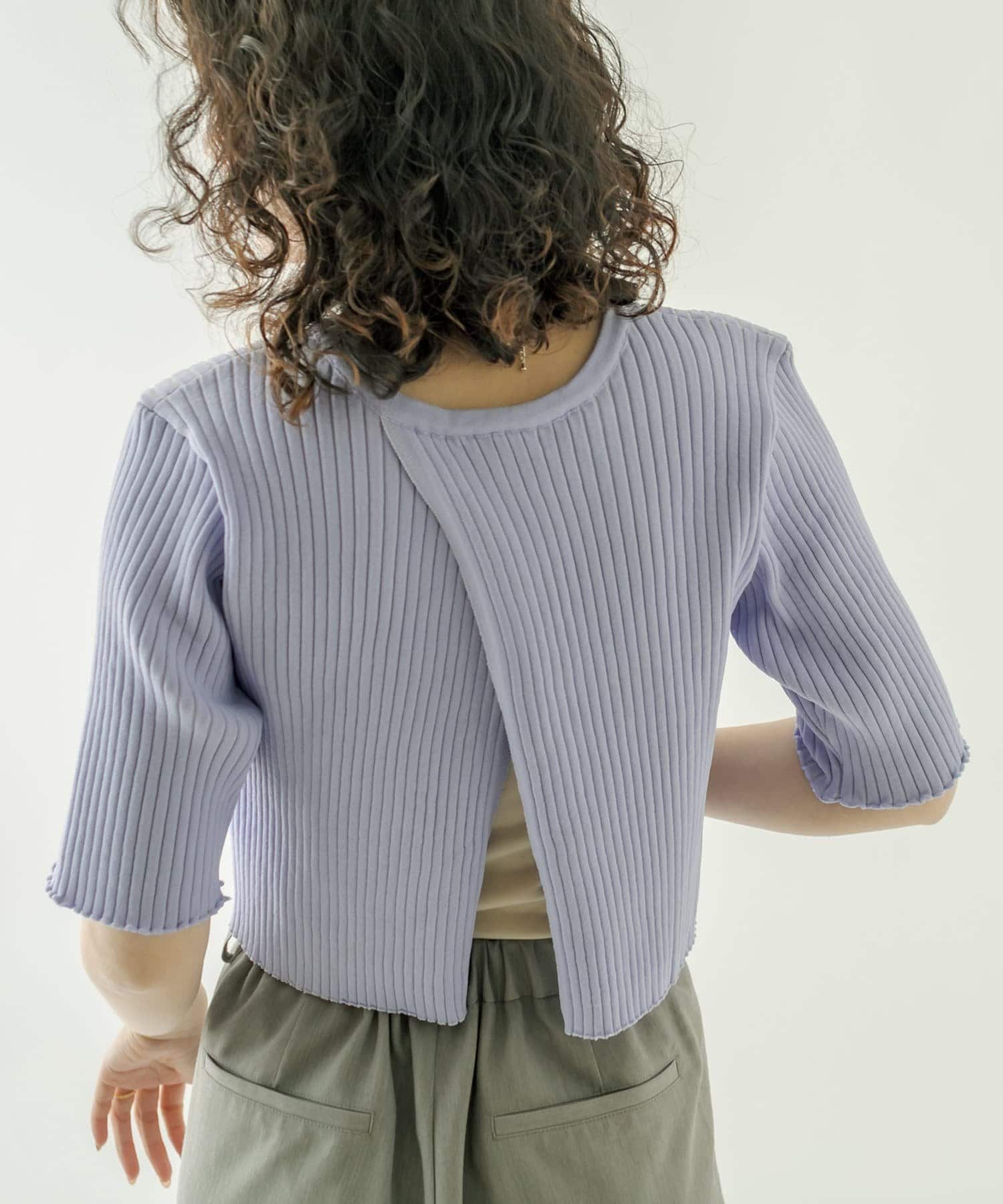 【均一セール対象アイテム】NEWバックスリット半袖ニット