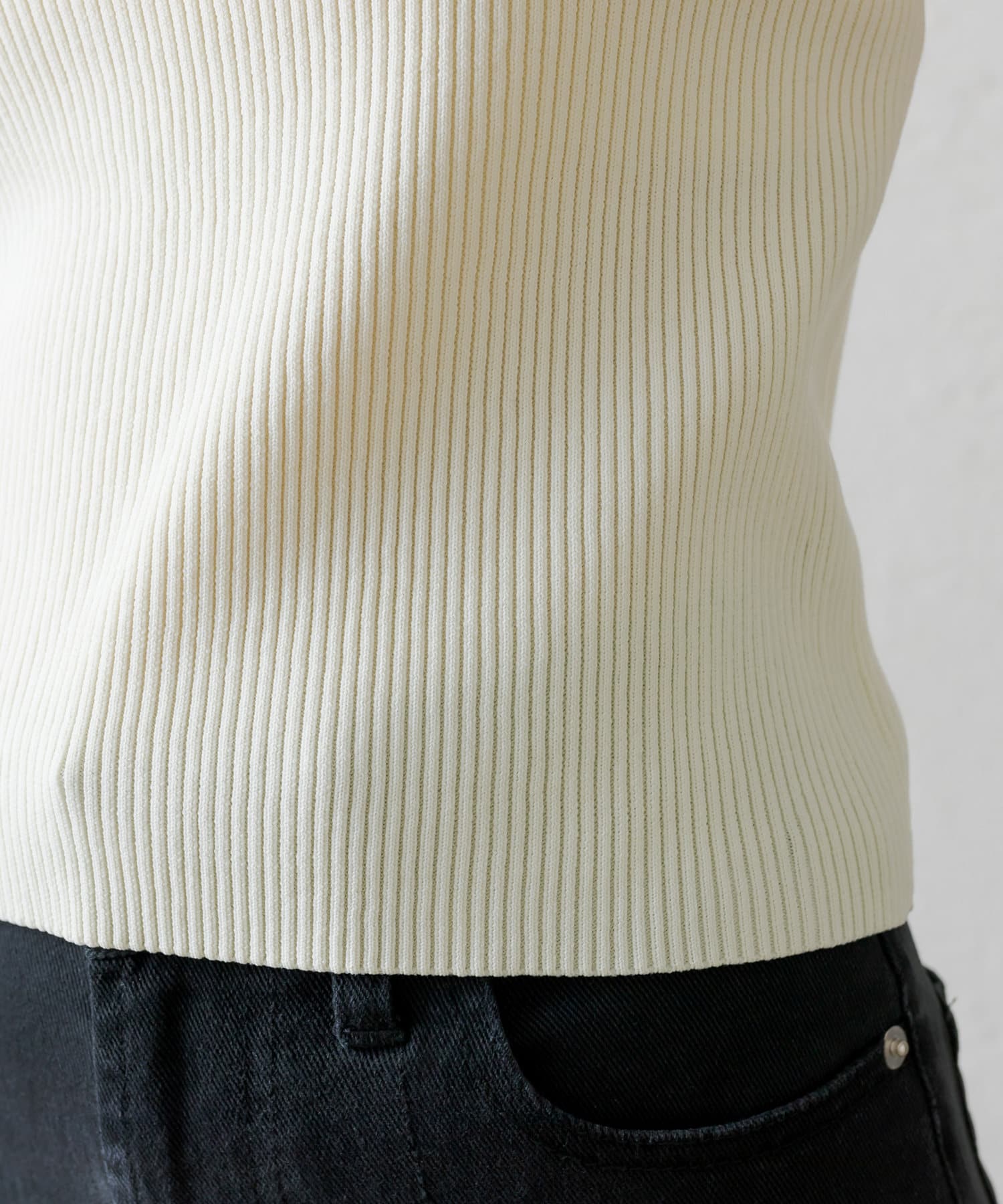 ・細身のリブニット素材は伸縮性もあり着心地抜群!
