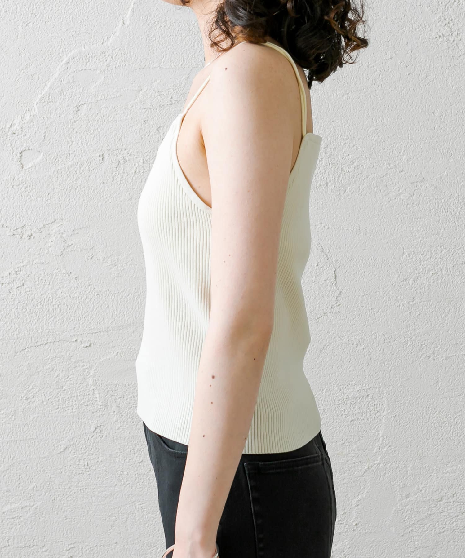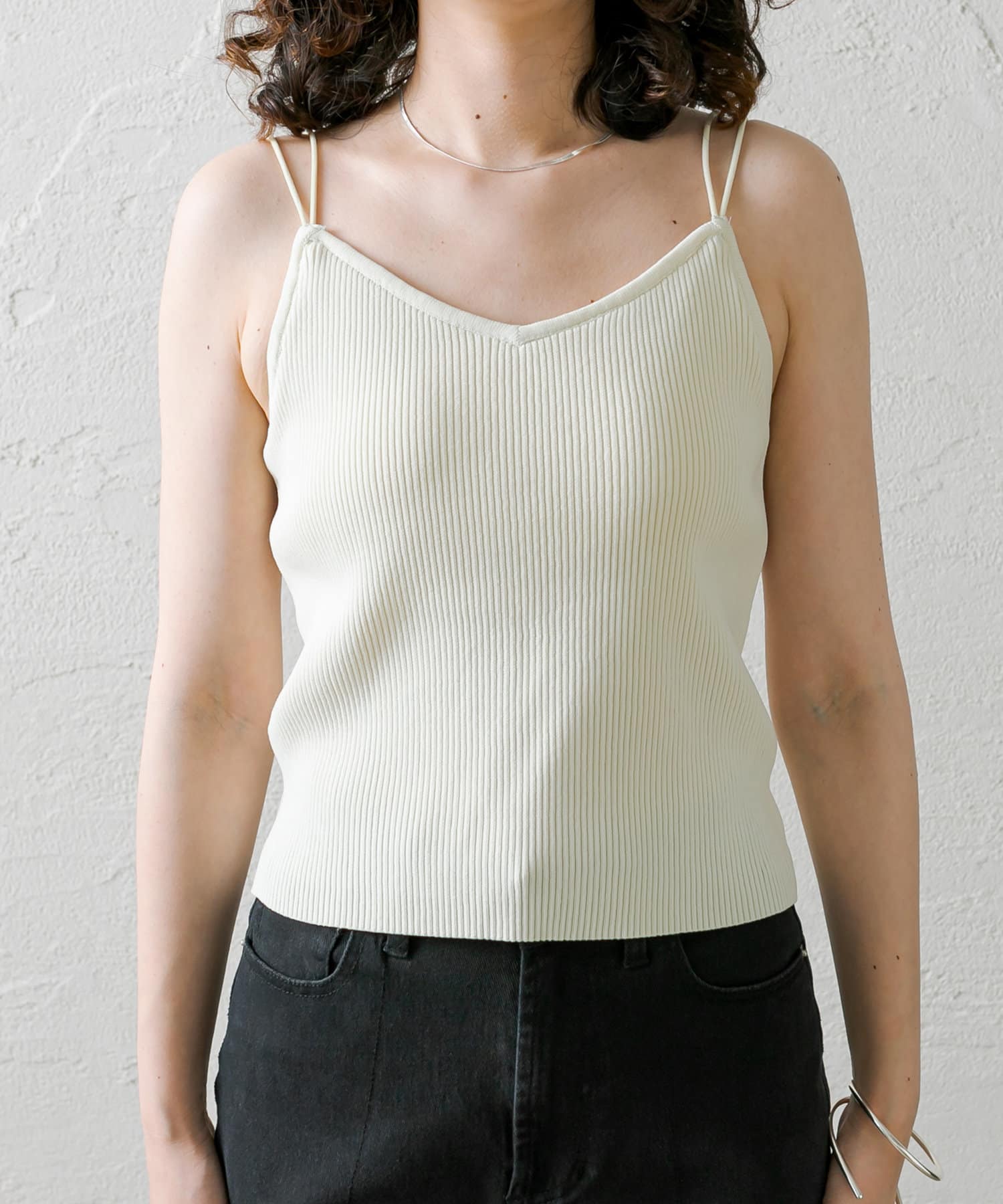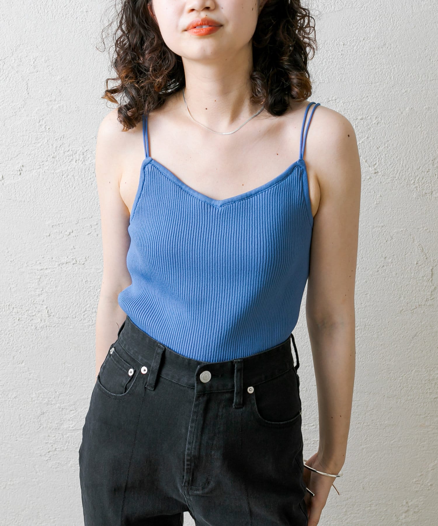 ・華奢な2本のストラップデザインがポイントのキャミソール。