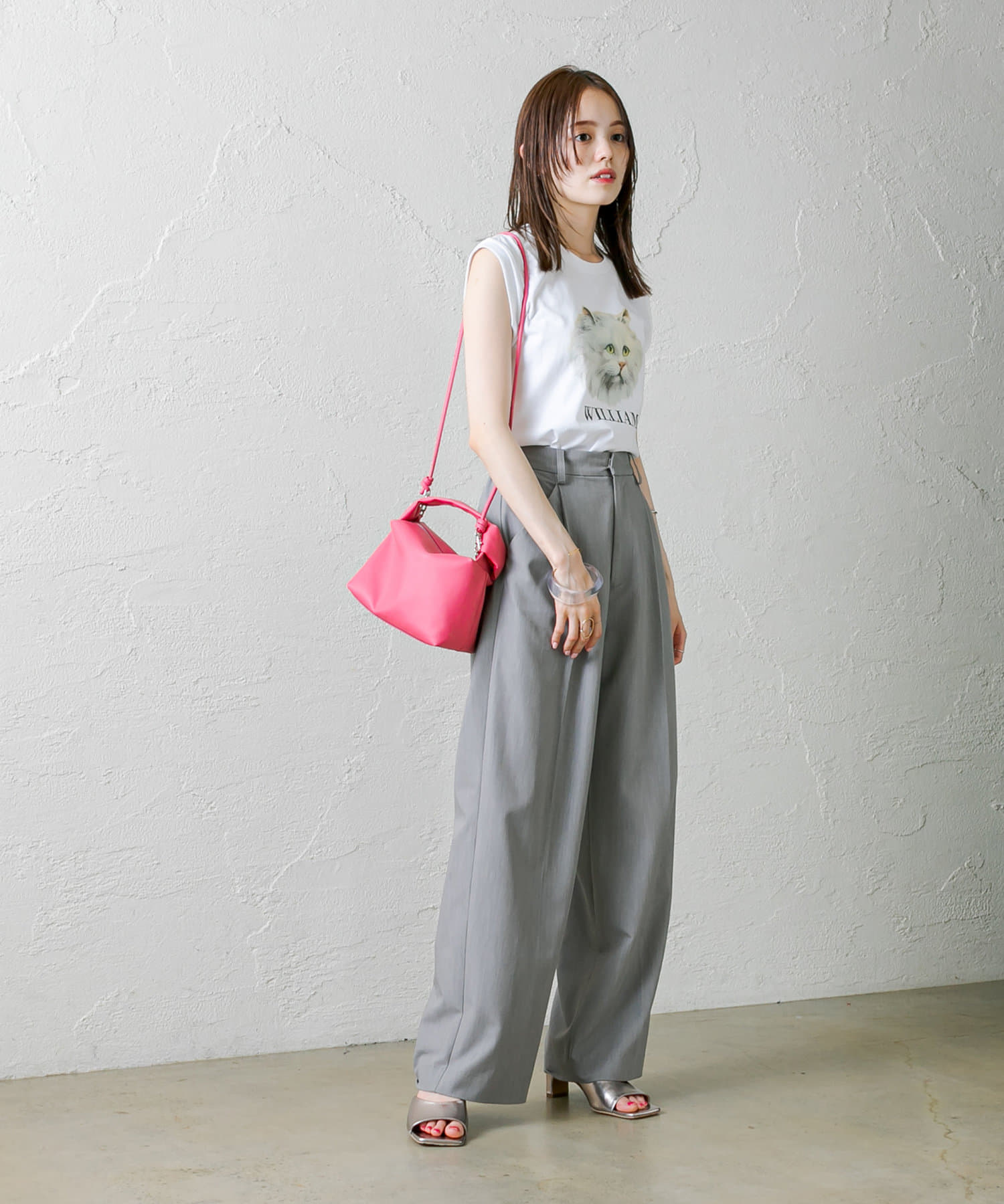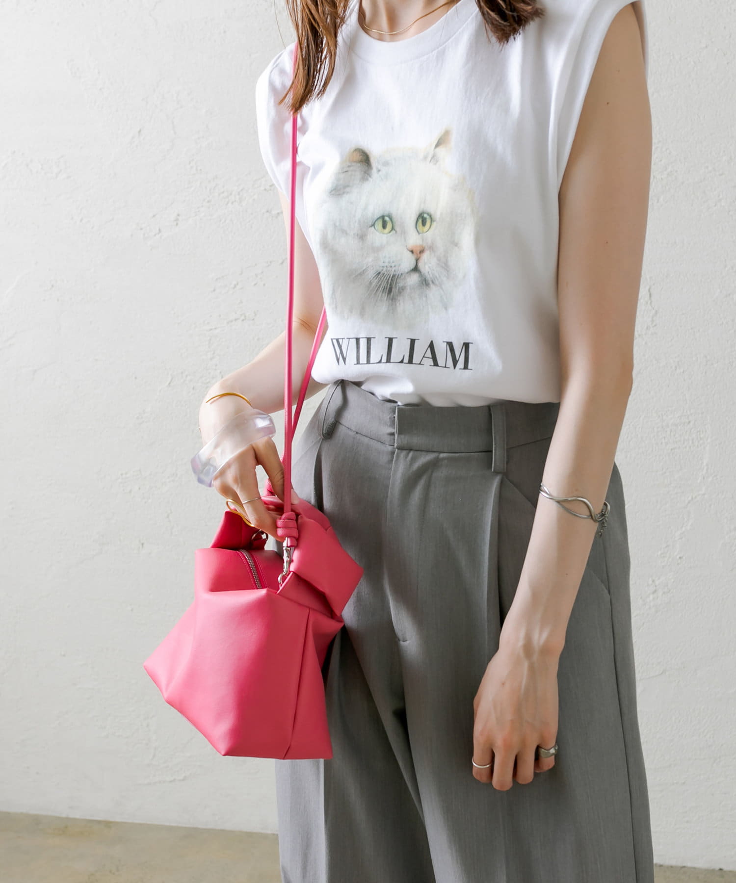 ピンクが差し色になるためモノトーンコーデに映える。とっても可愛いです!