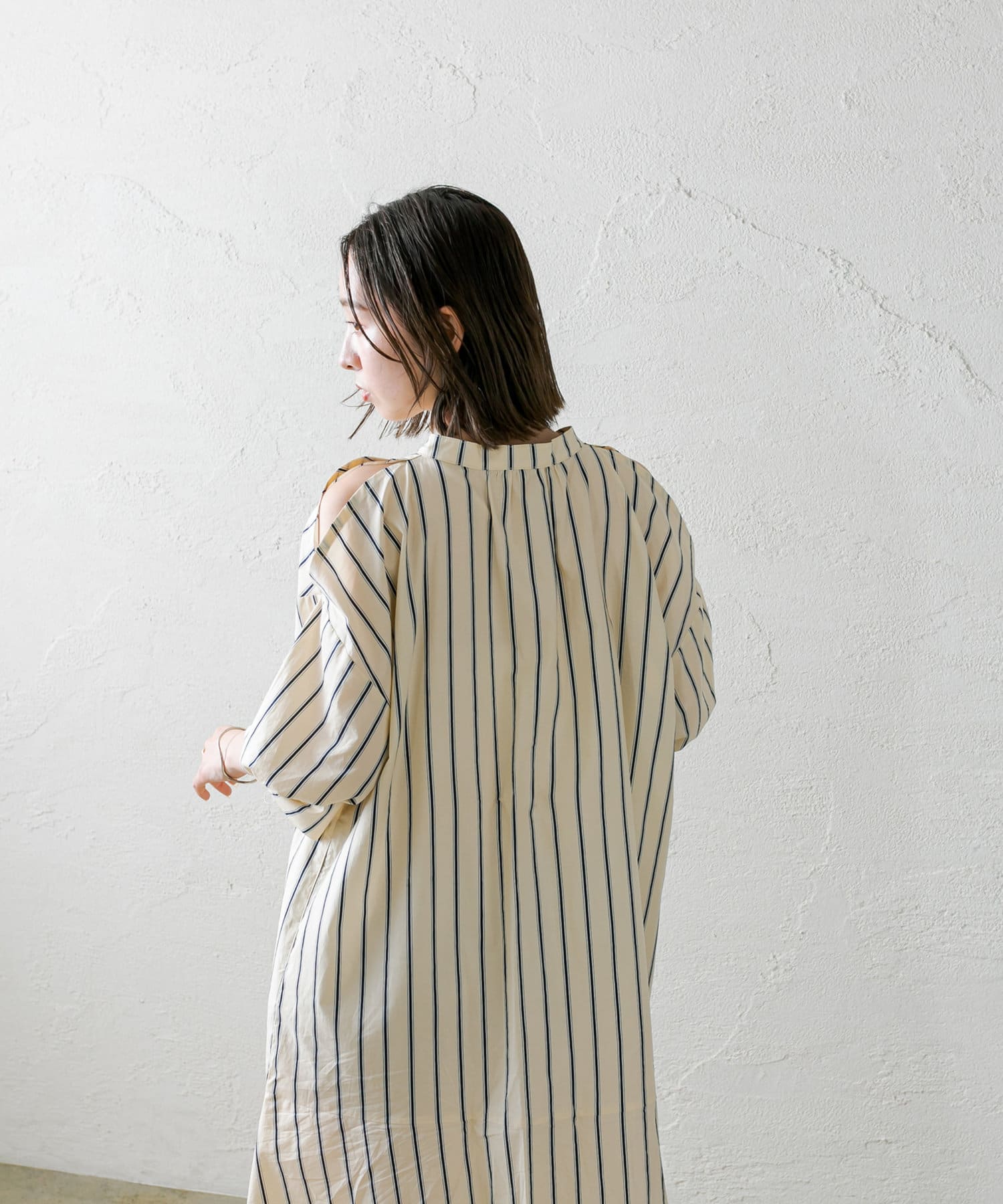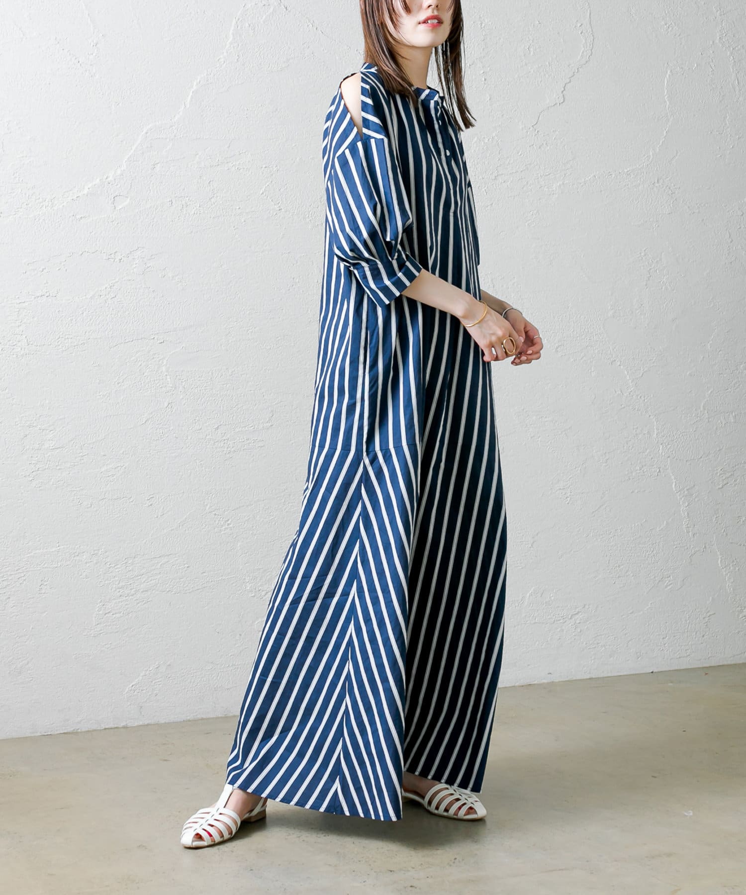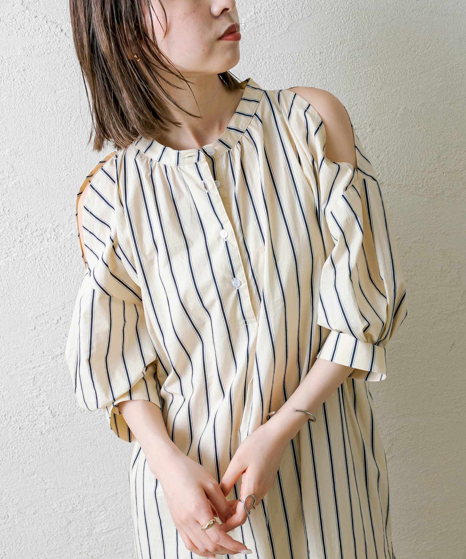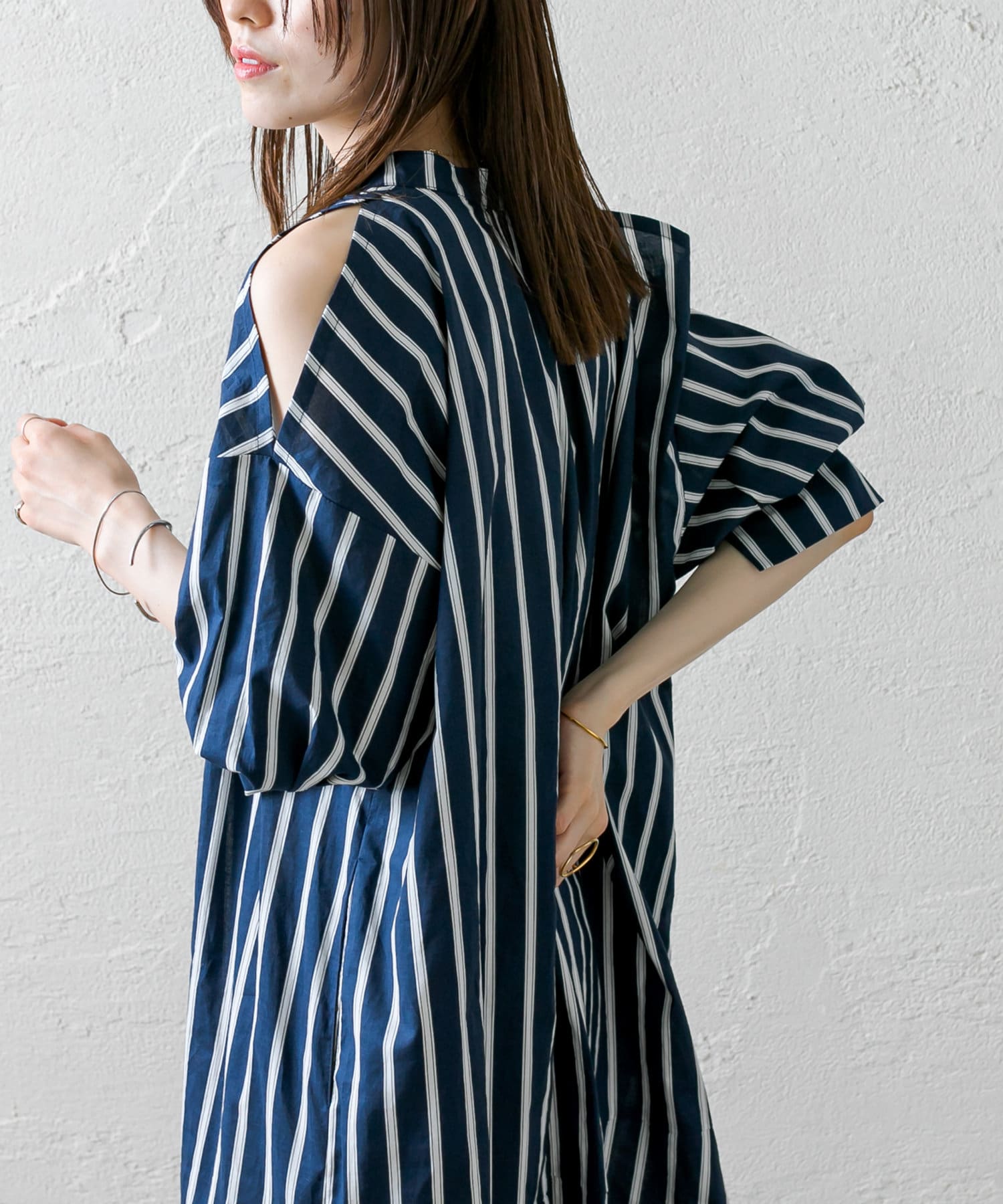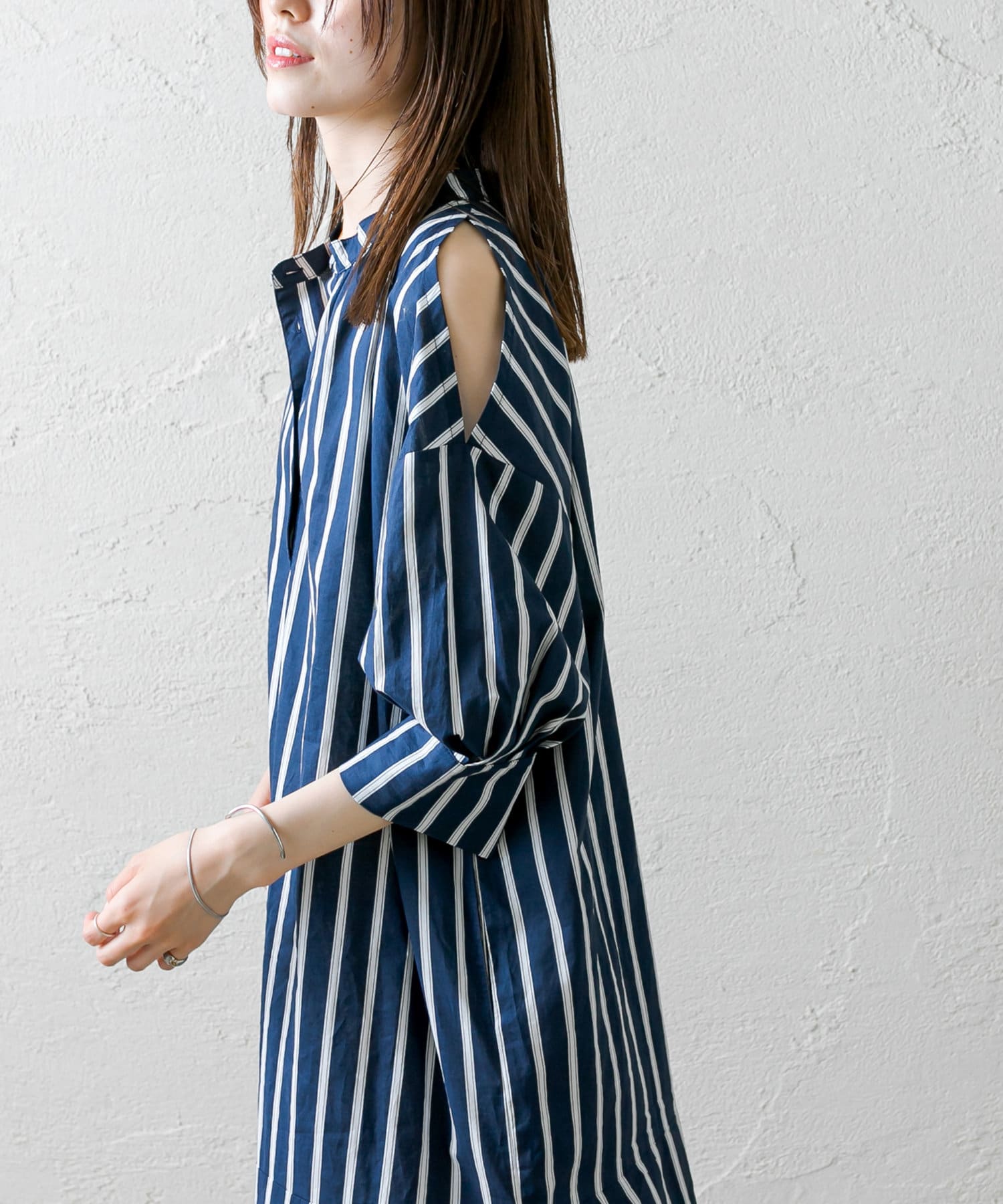 ・今季トレンドのショルダースリットデザインが目を惹くワンピース。