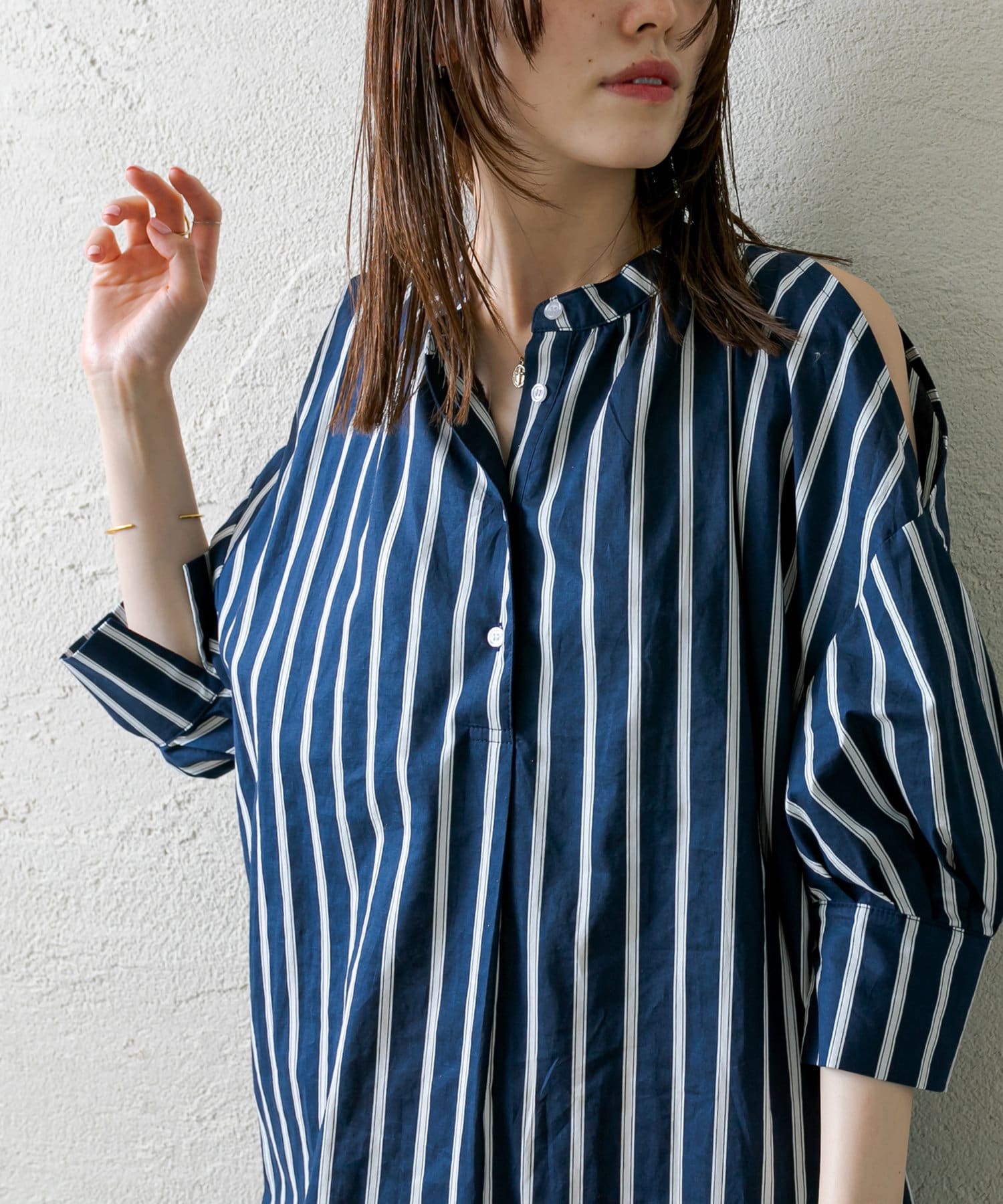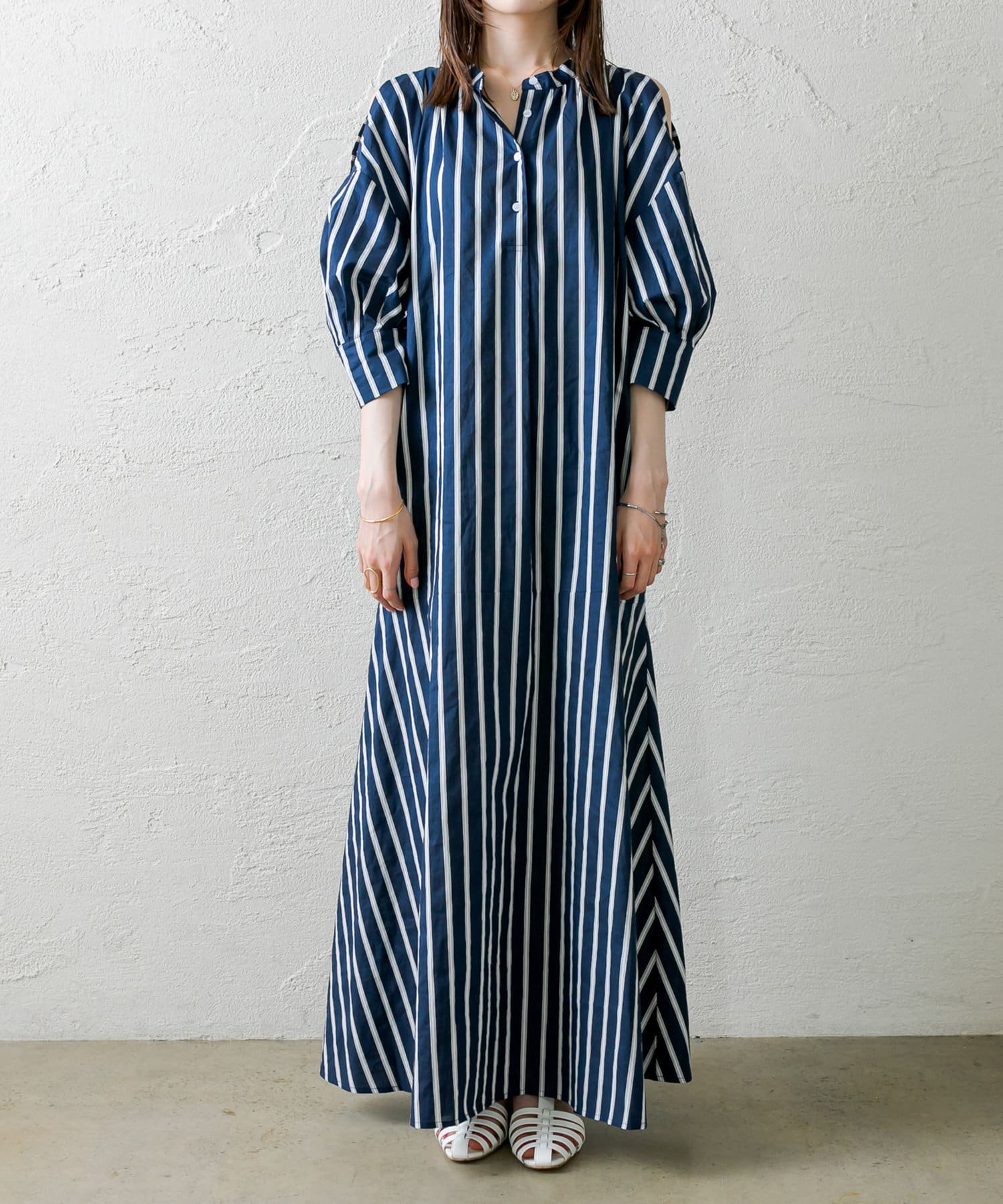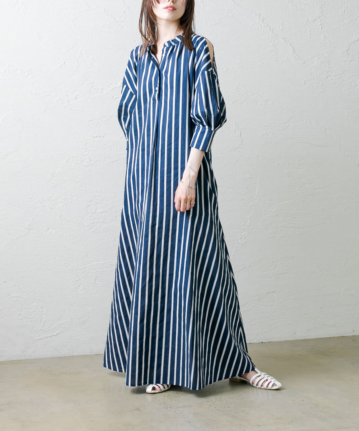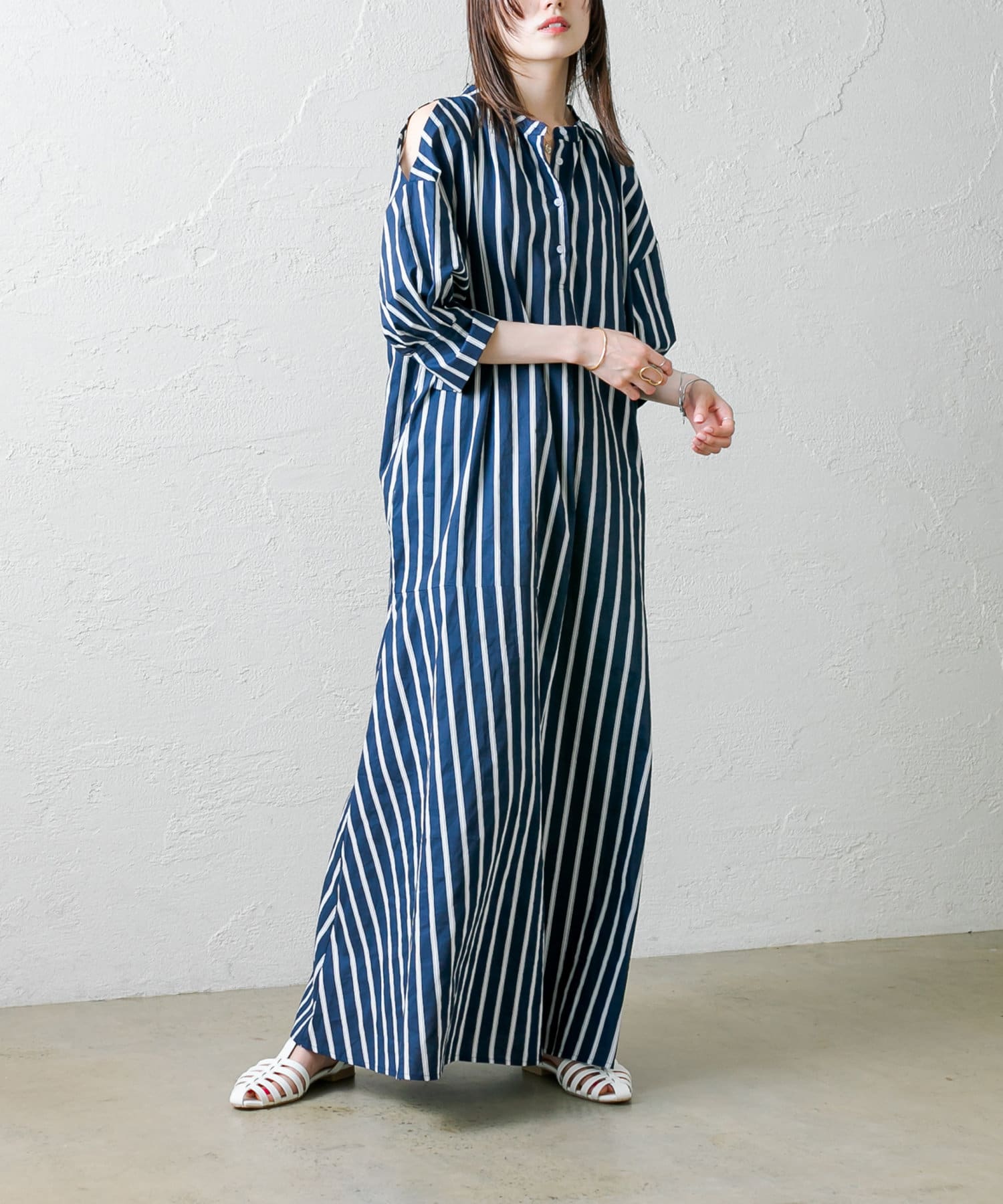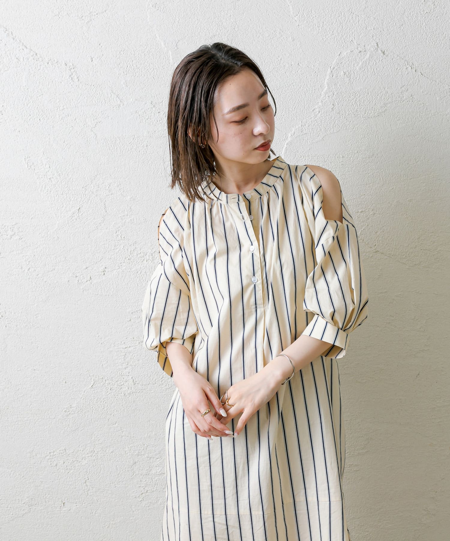・今季トレンドのショルダースリットデザインが目を惹くワンピース。