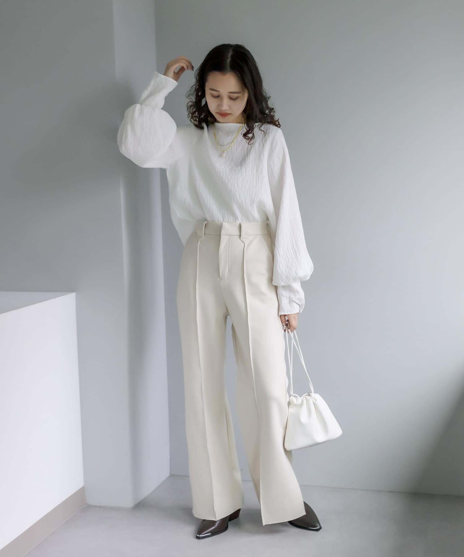 ・ベーシックカラーなので、ワントーンやカラー合わせなど幅広いスタイリングが叶うパンツです。