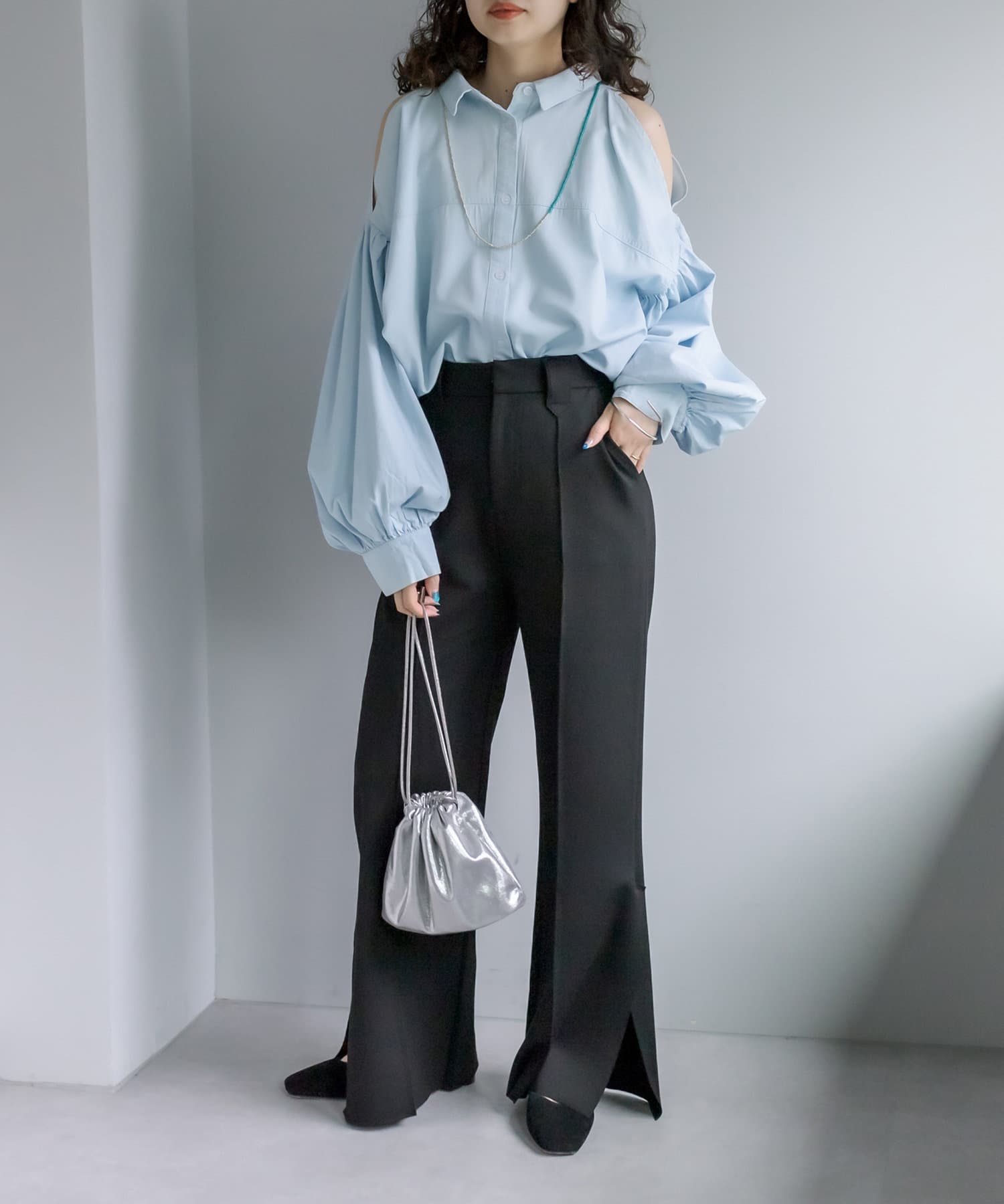 ・ストレートに落ちるシルエットで脚長効果も抜群◎