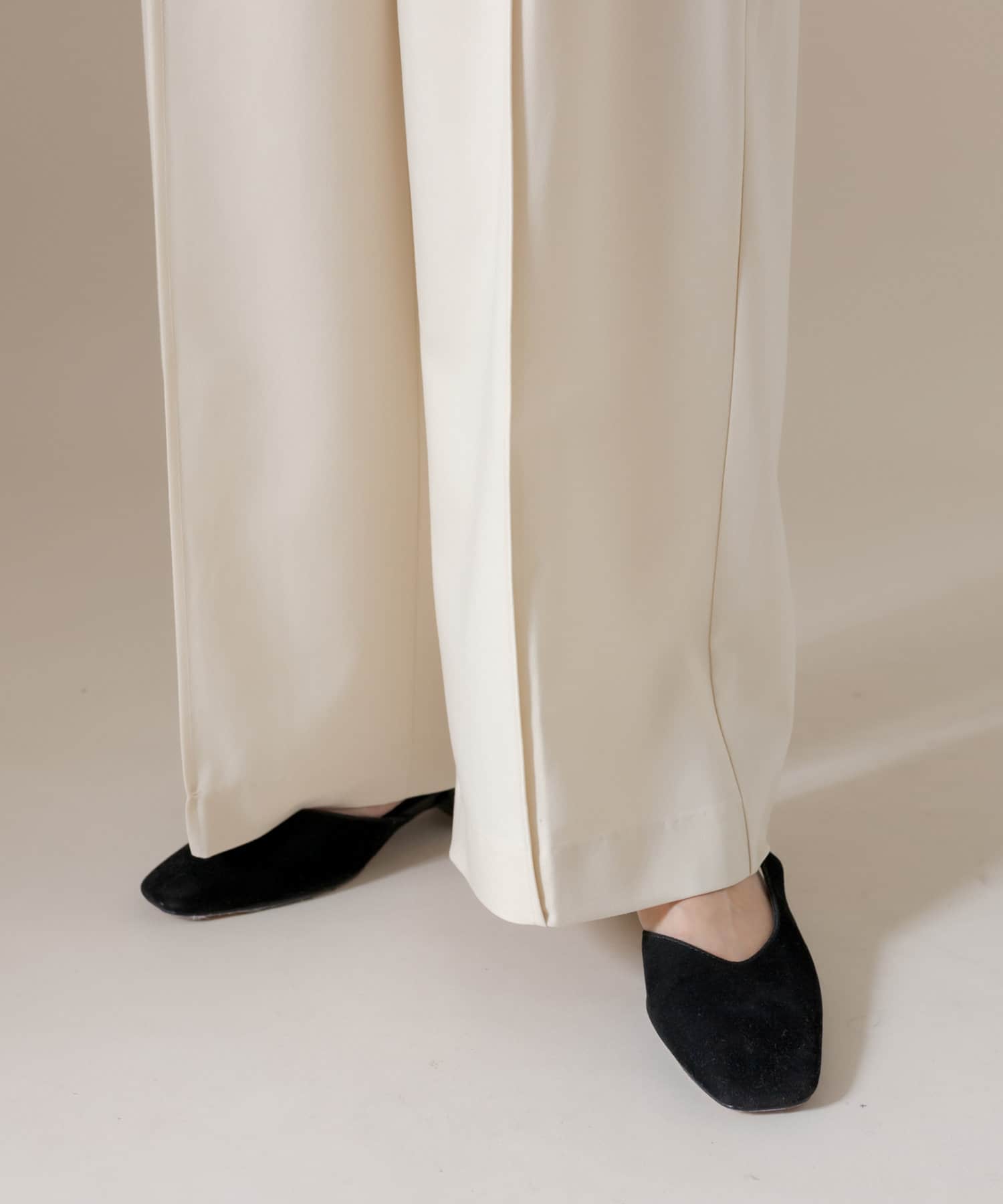 ・センタープレス加工がスッキリとした印象かつ足長効果も◎