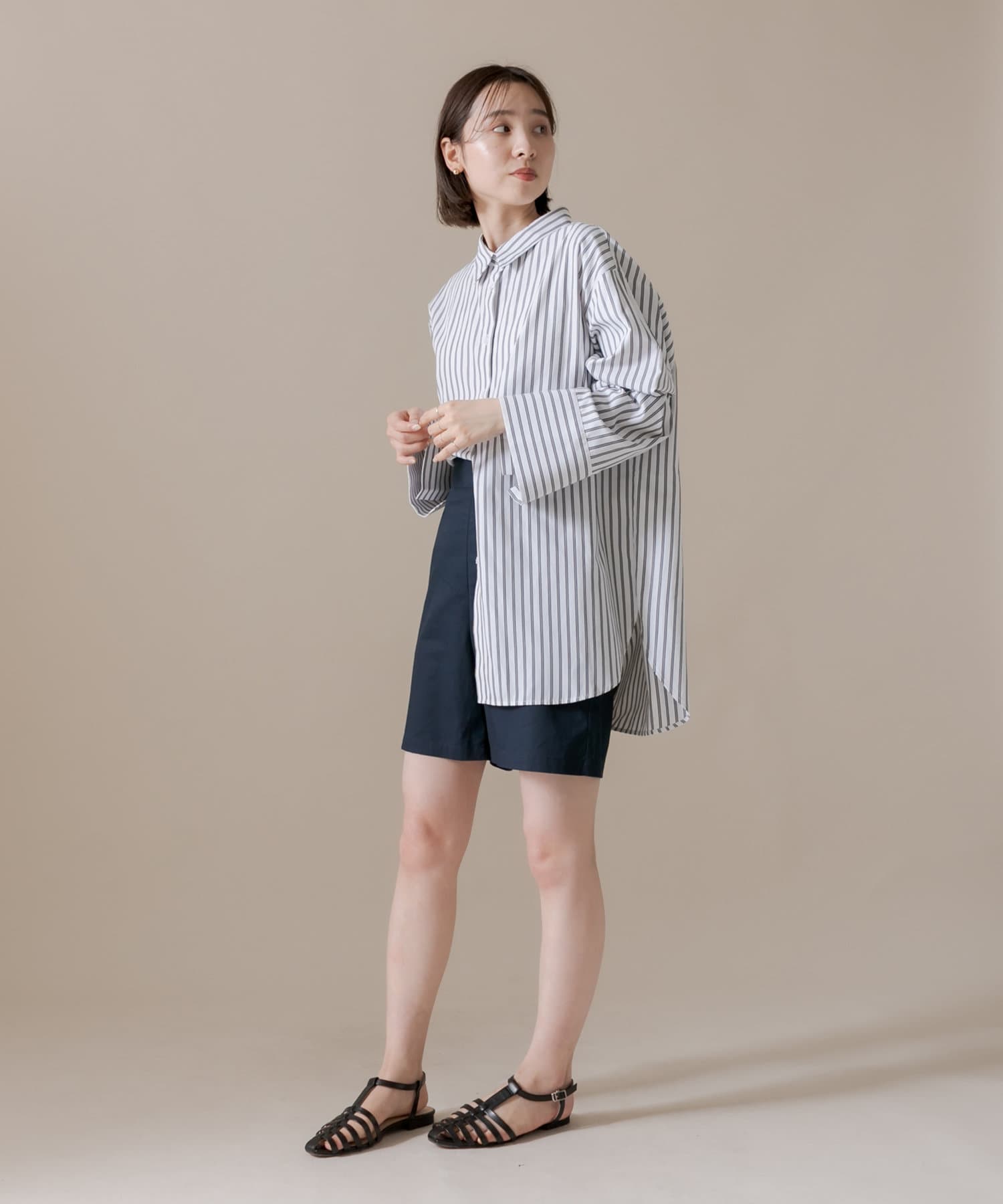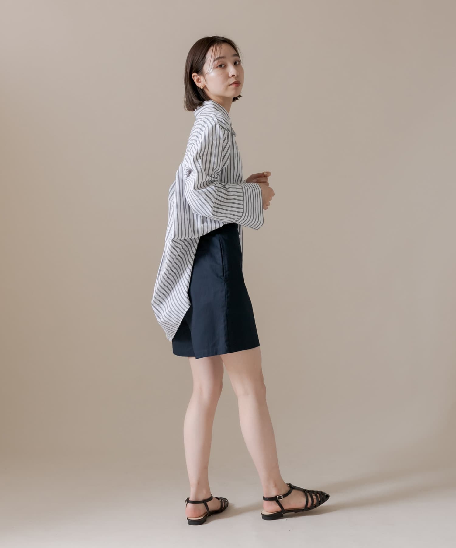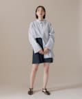 ショートボトムと合わせてミニワンピ風に着るのも可愛いです!足元はヒールで合わせて