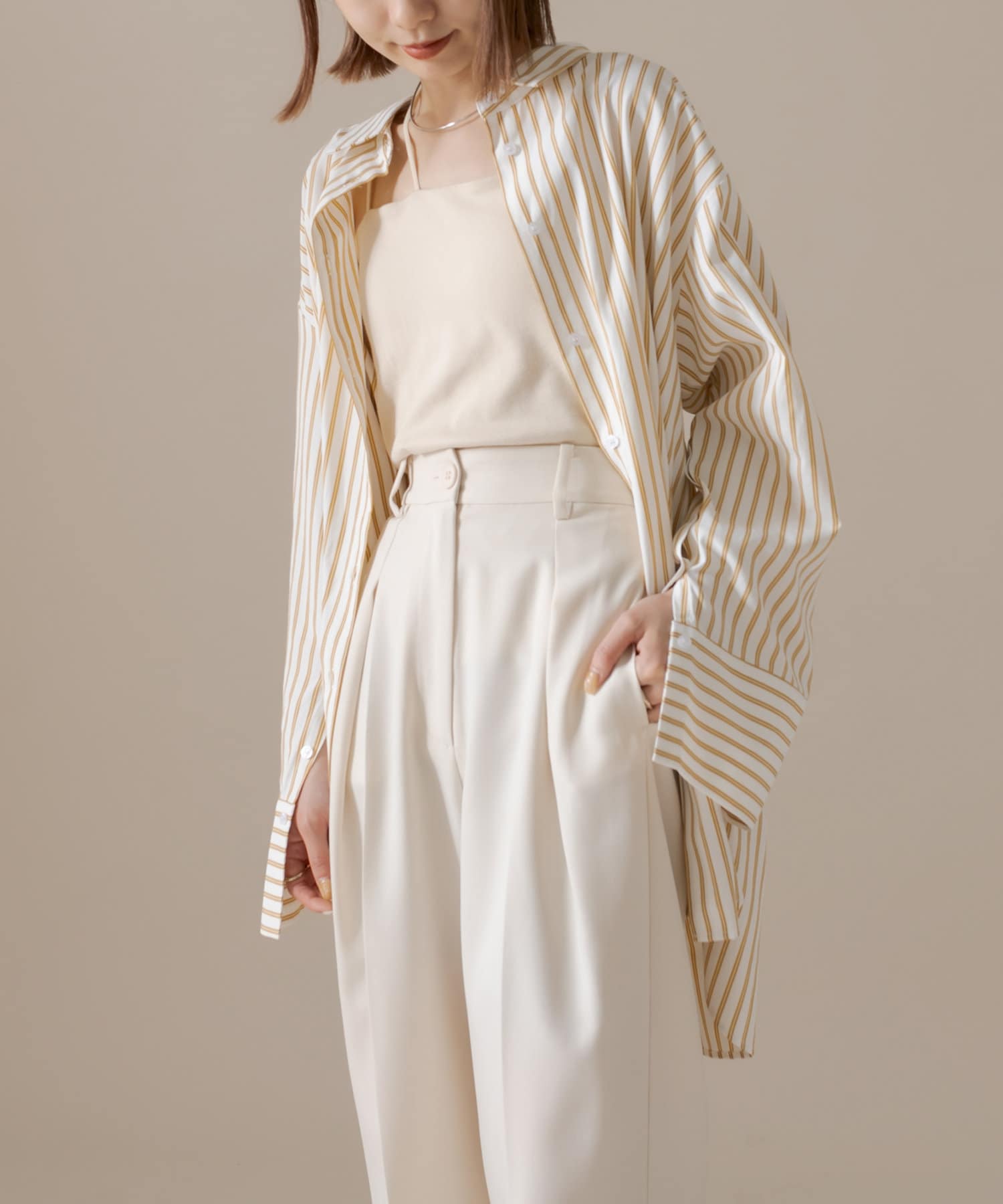 メンズ感が出るシャツもタイトスカートやマーメイドスカートなどと合わせればカジュアル過ぎない