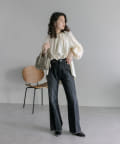 センタースリットパンツに合わせて大人っぽくすっきりとしたスタイリングに。