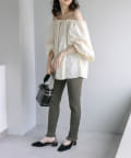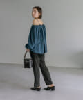 ・細身のパンツに合わせて大人っぽいスタイリングに。