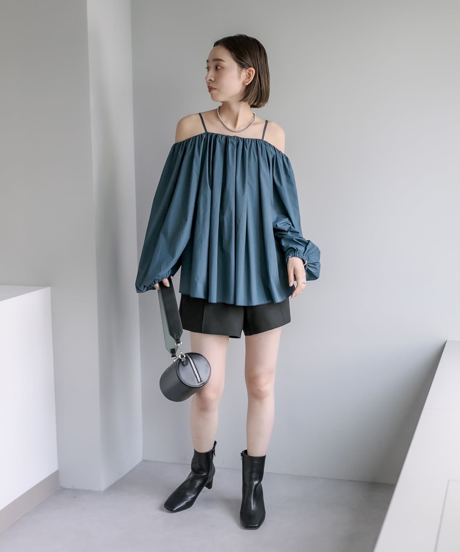 トレンドのショートパンツ合わせもすっきりと華やかな印象に◎