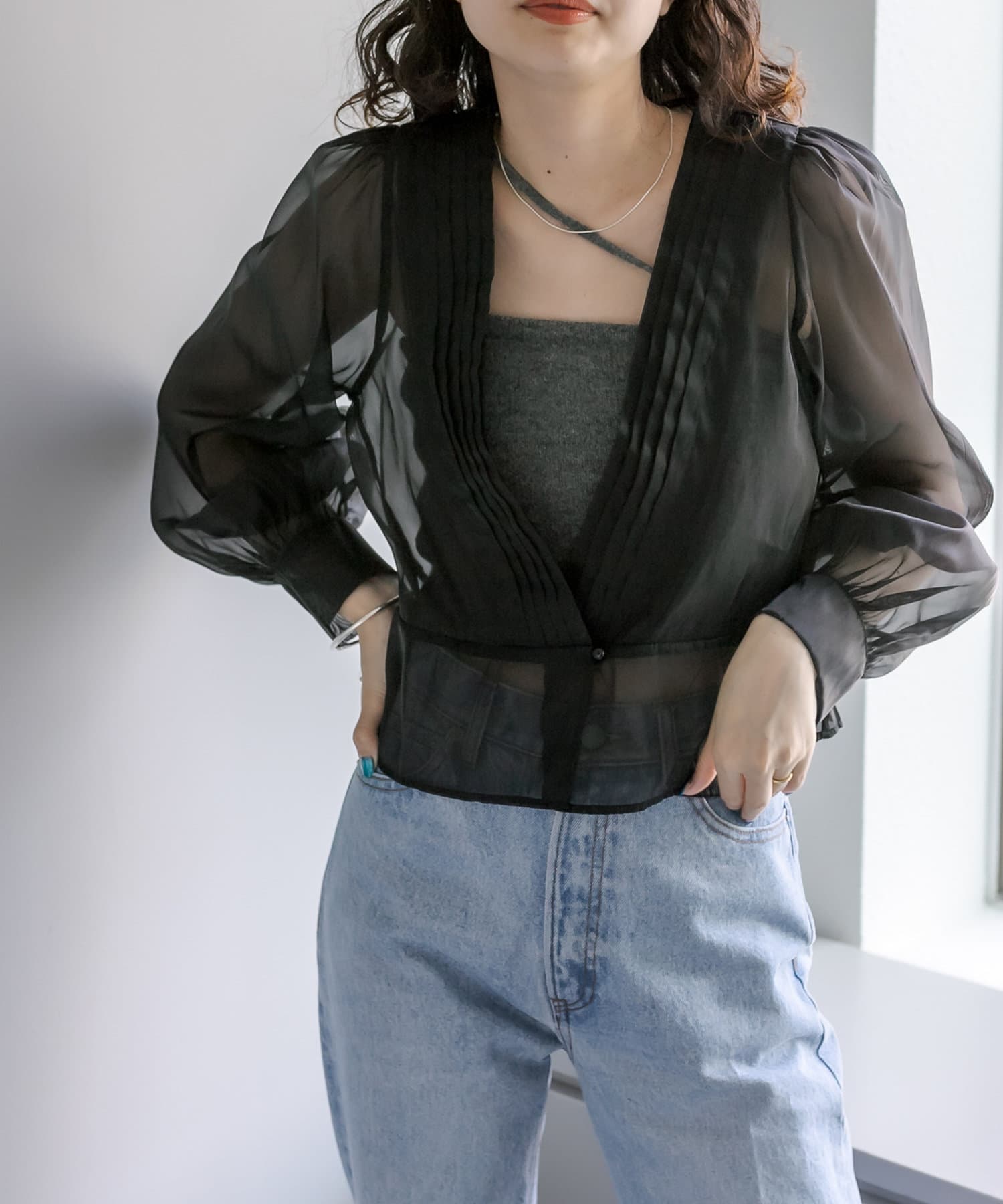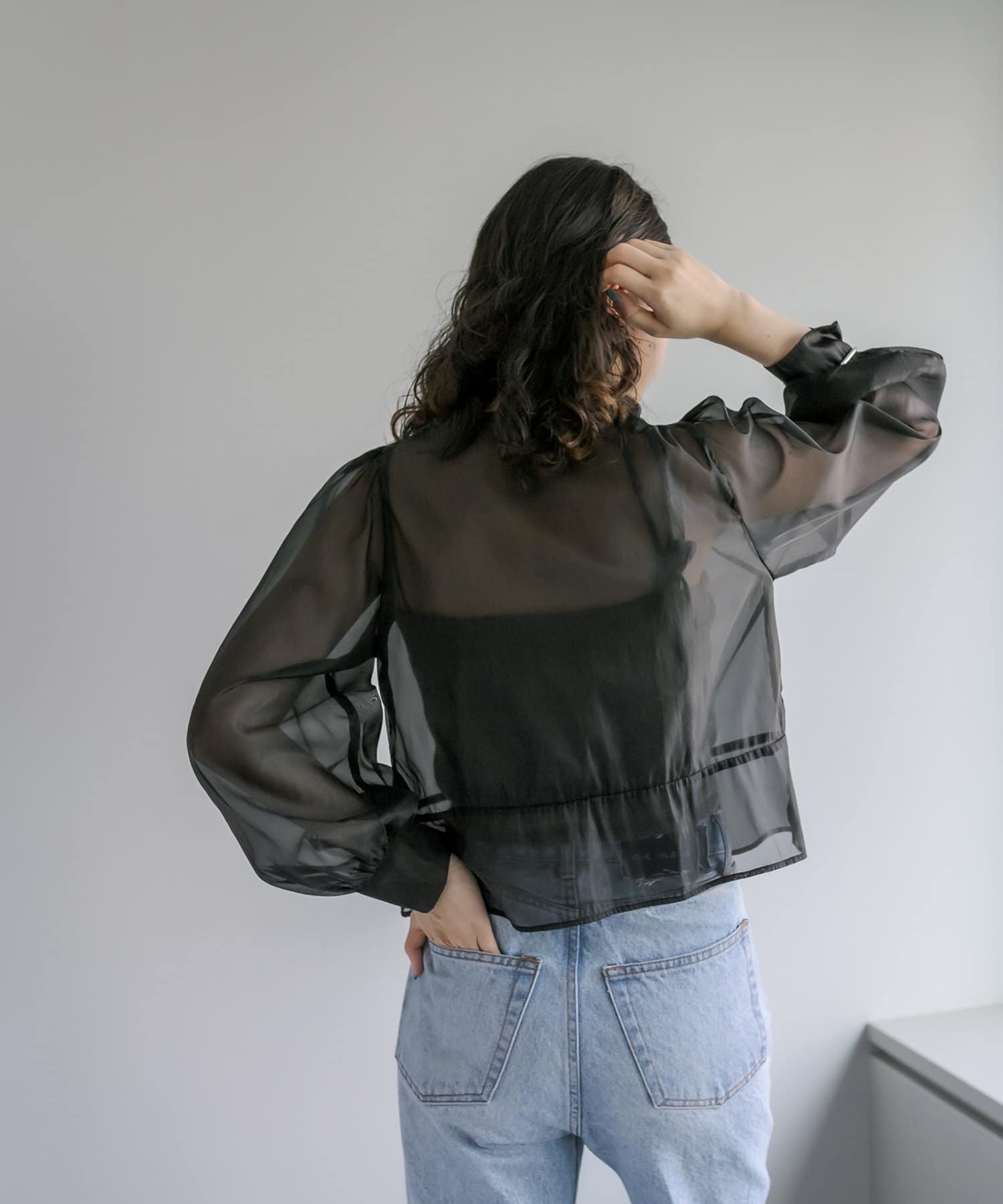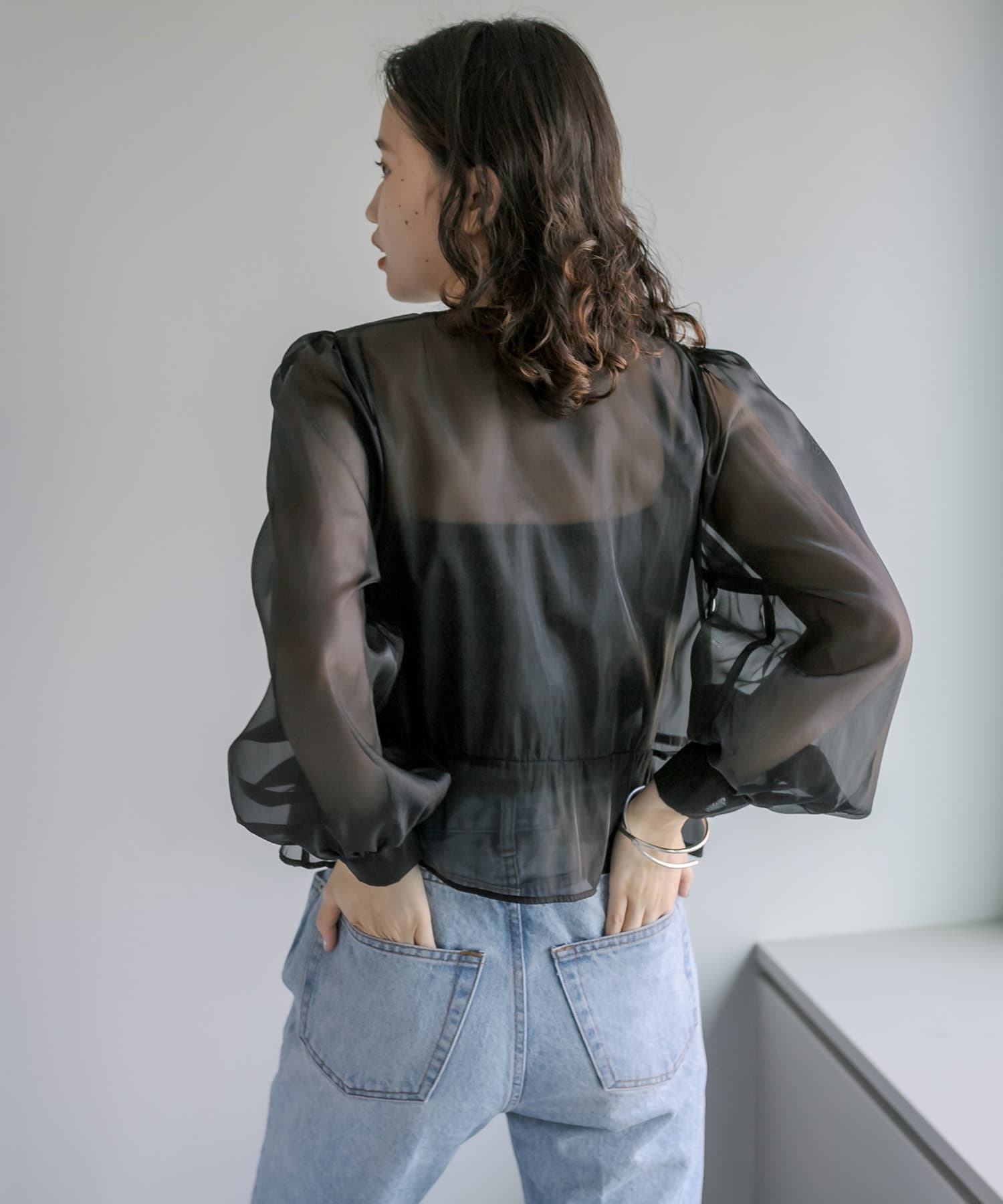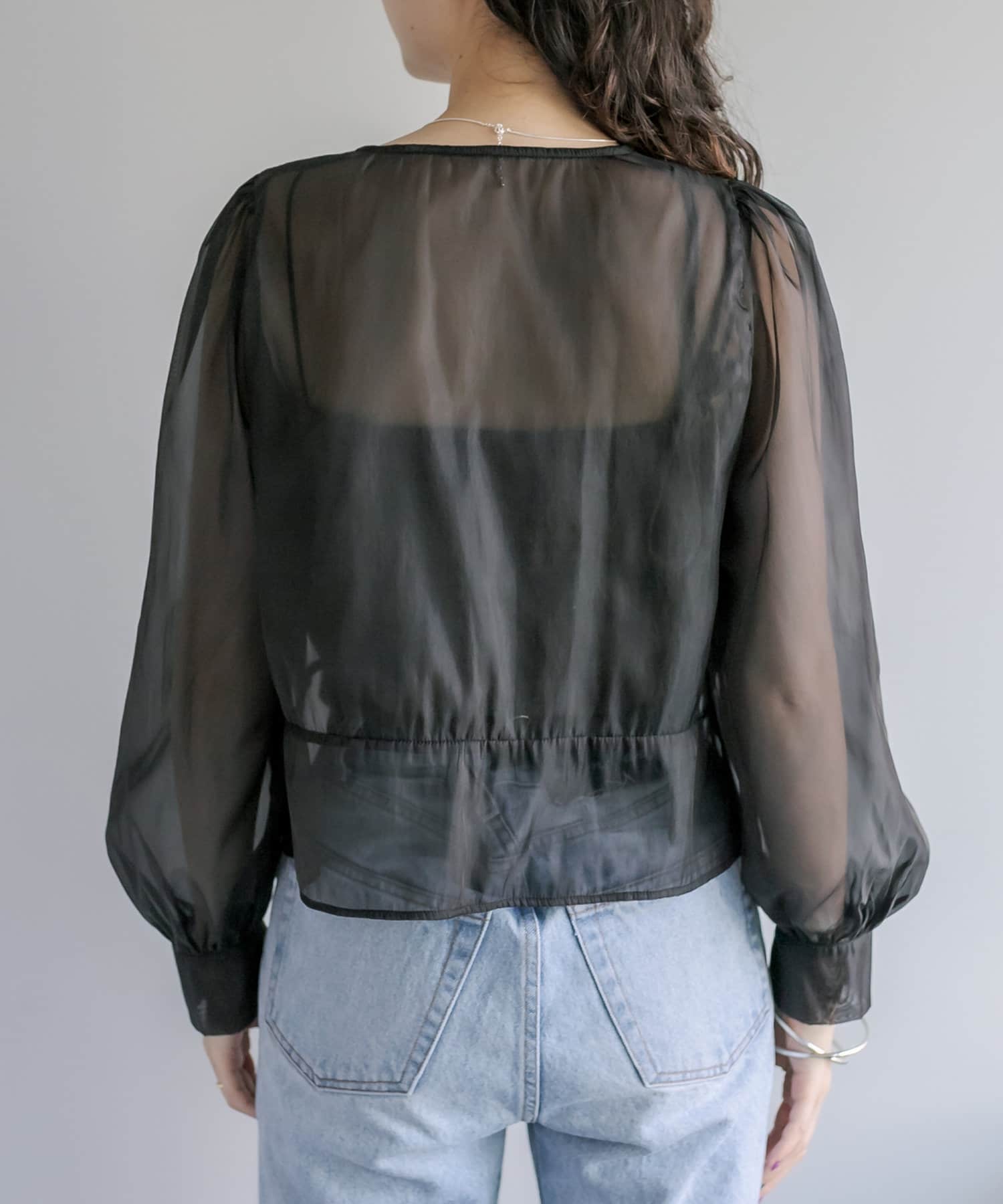 レディな透け感がポイントのオーガンジーブラウス。