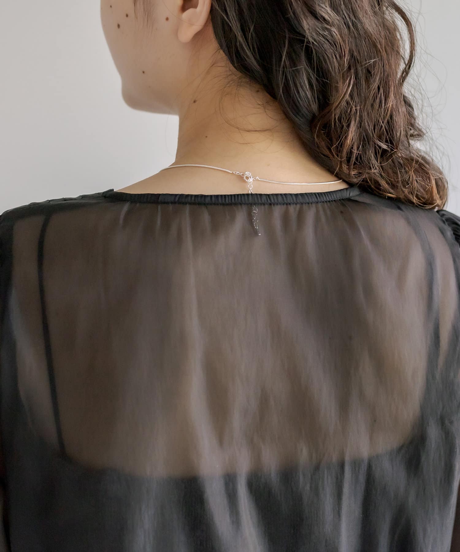・透け感のあるふわっと張り感のある生地のブラウス。