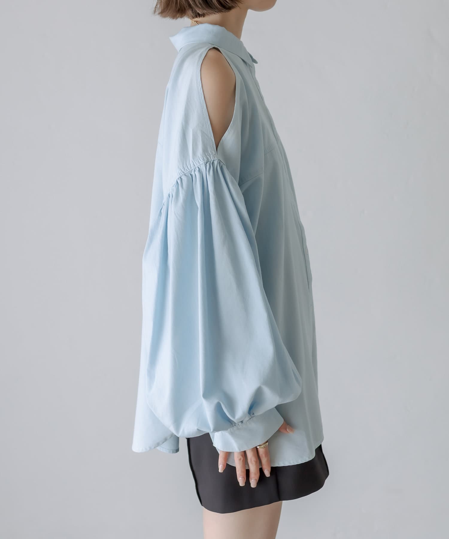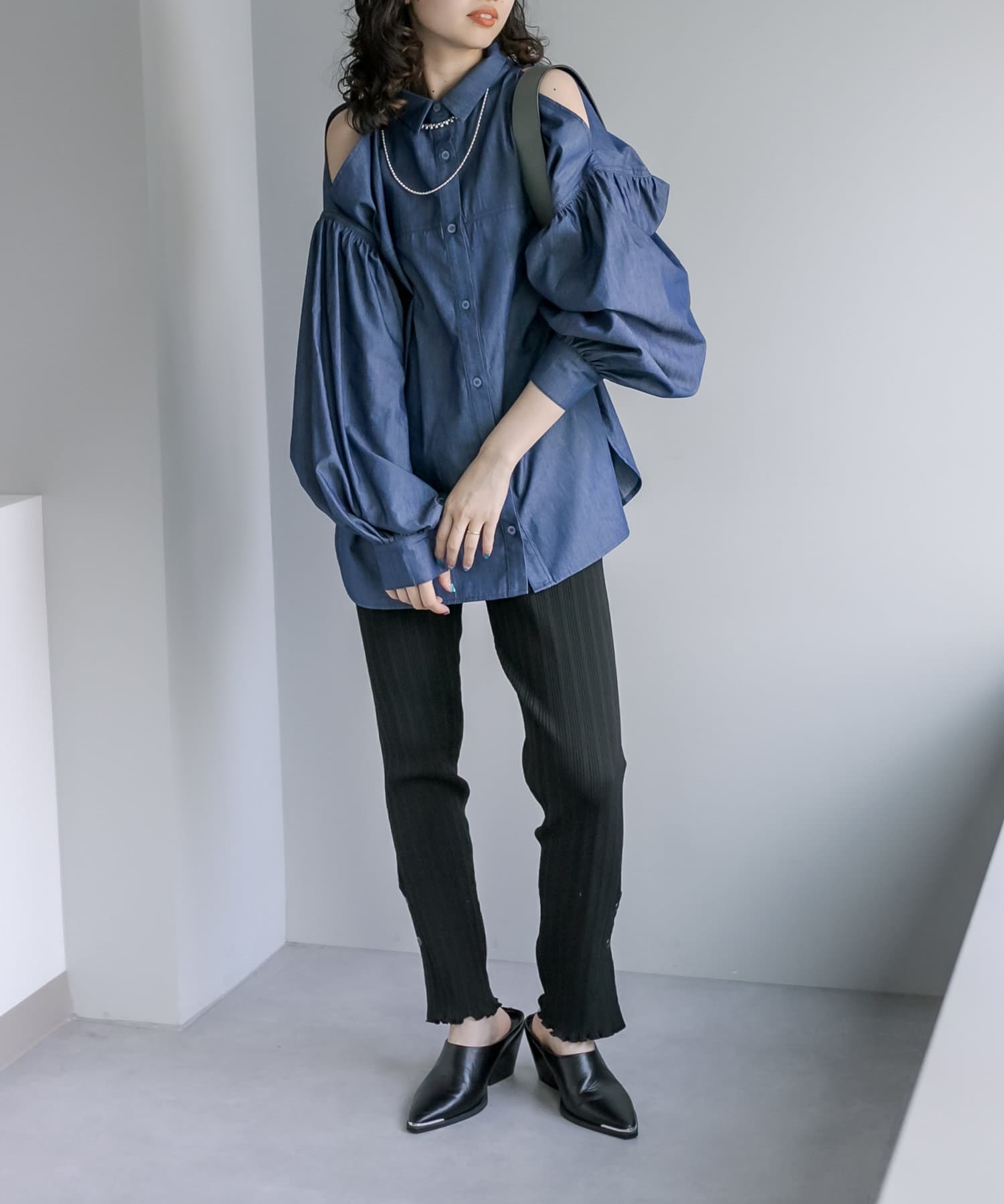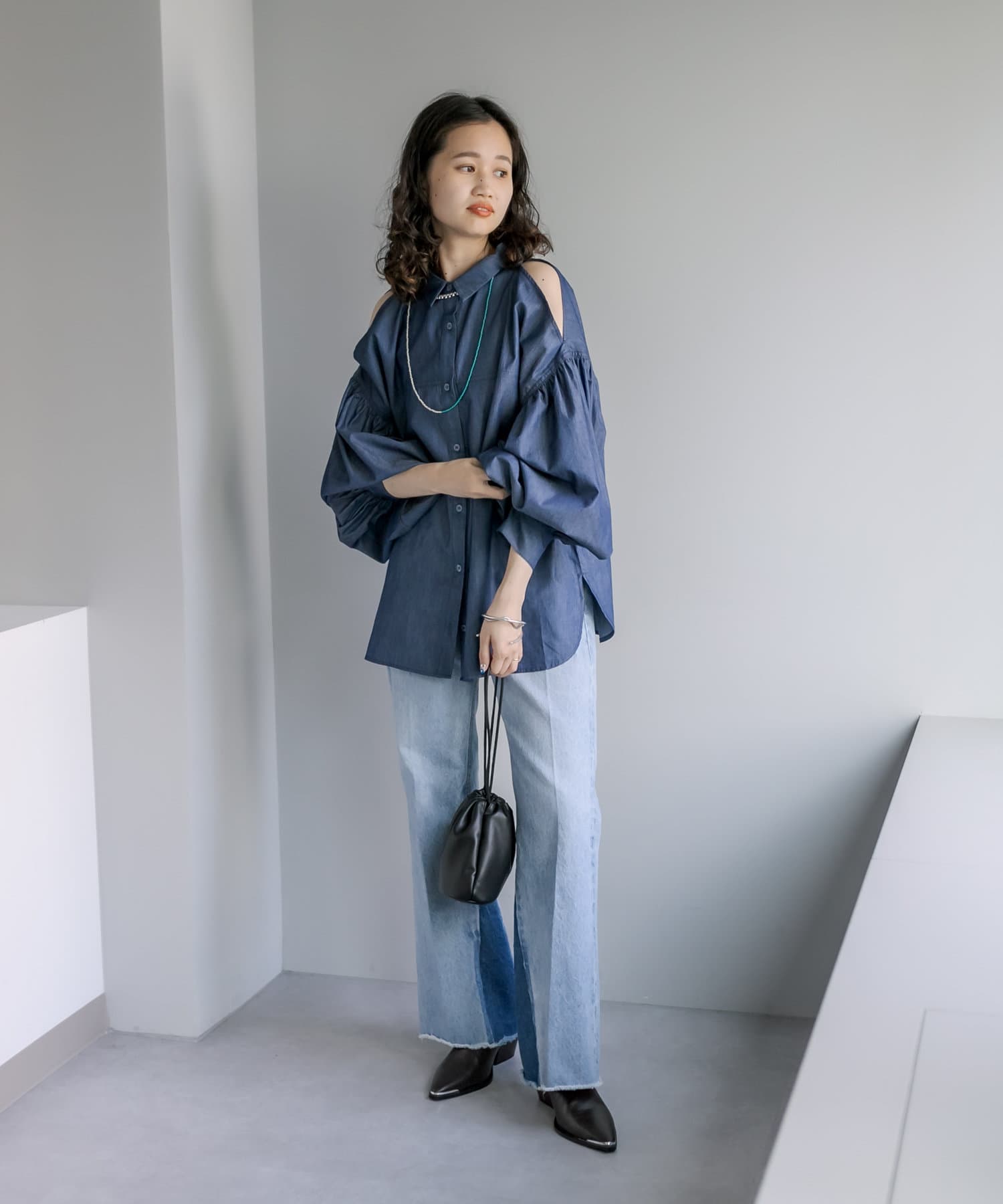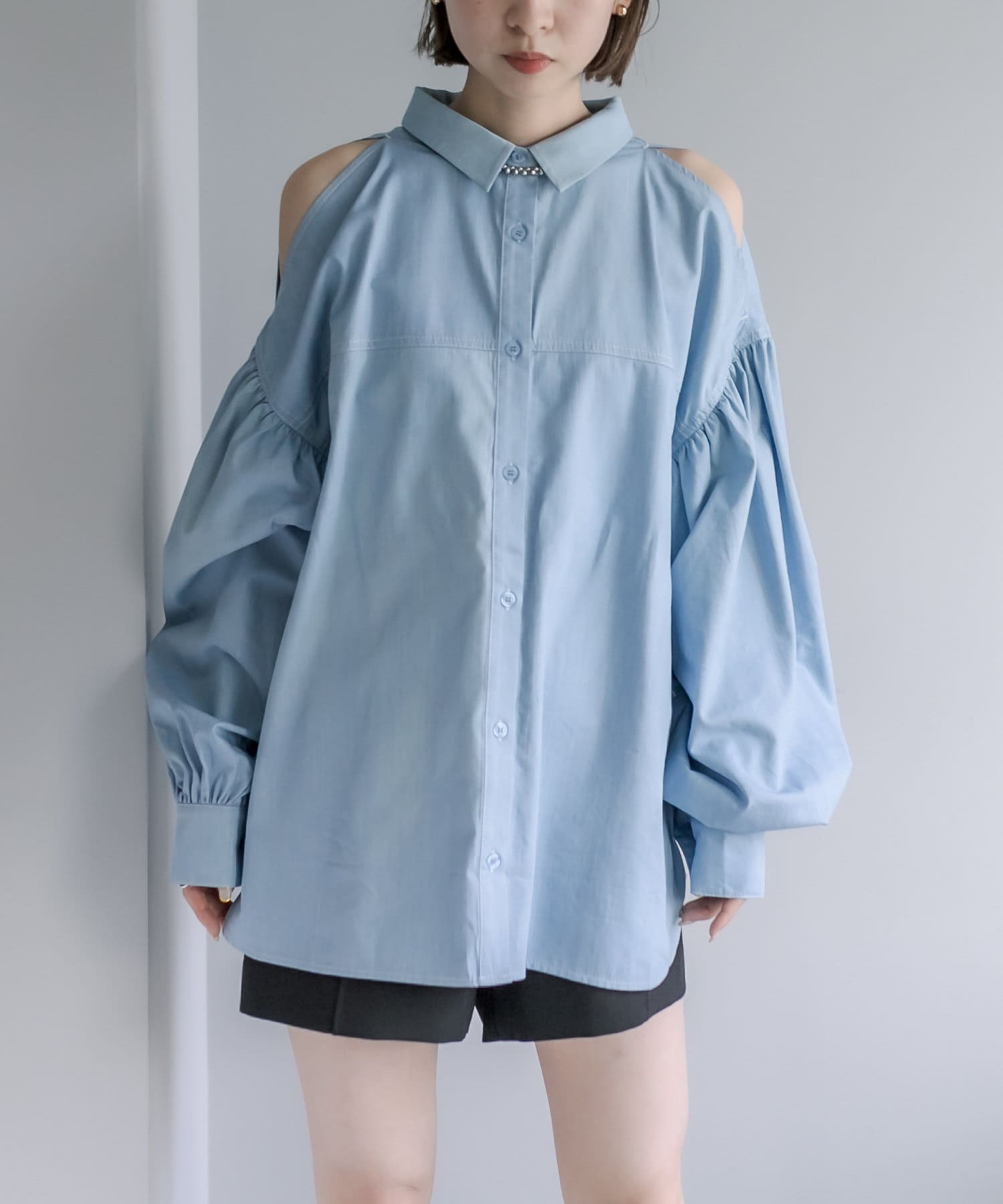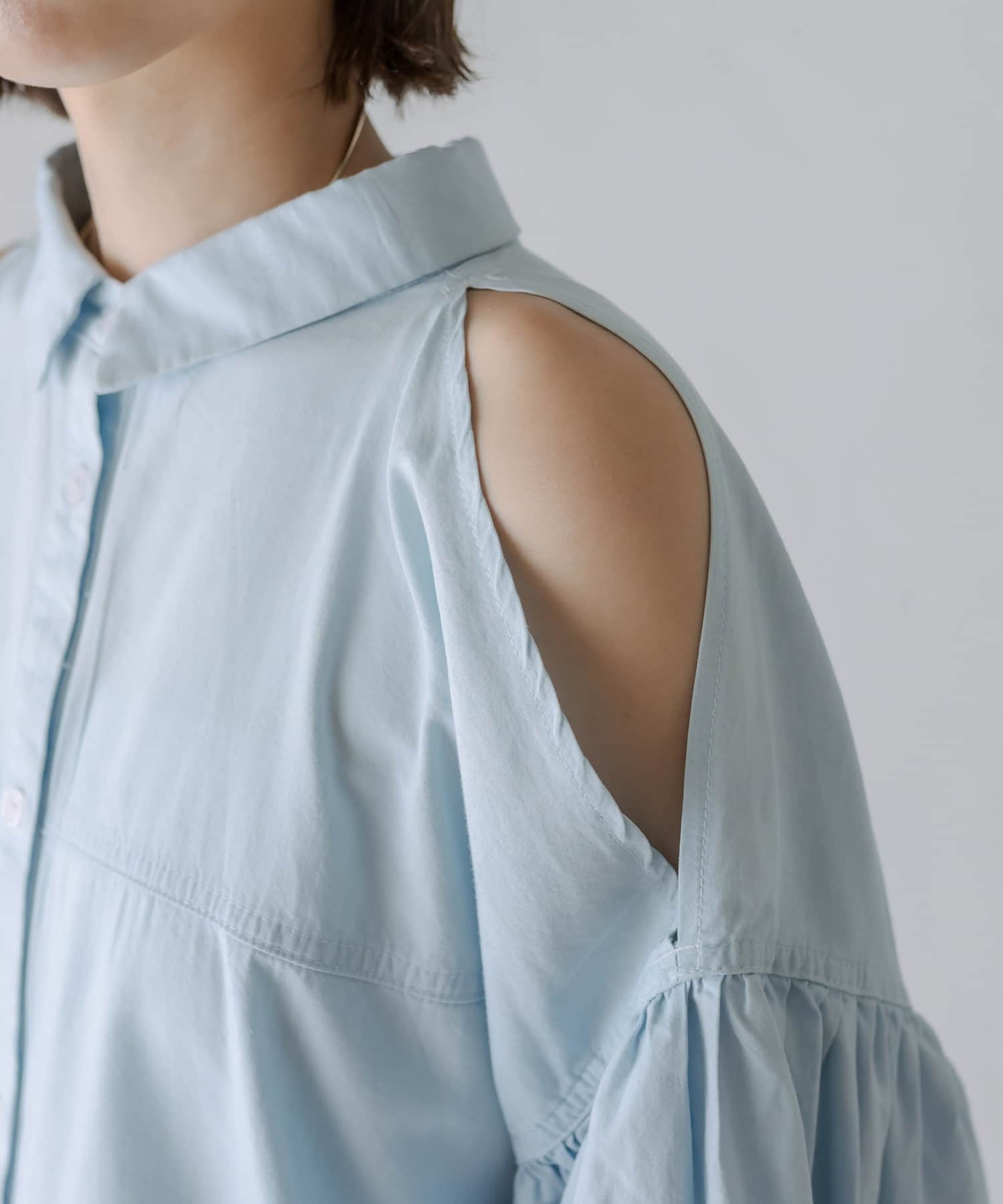 【新色追加】デニム肩あきボリュームシャツ