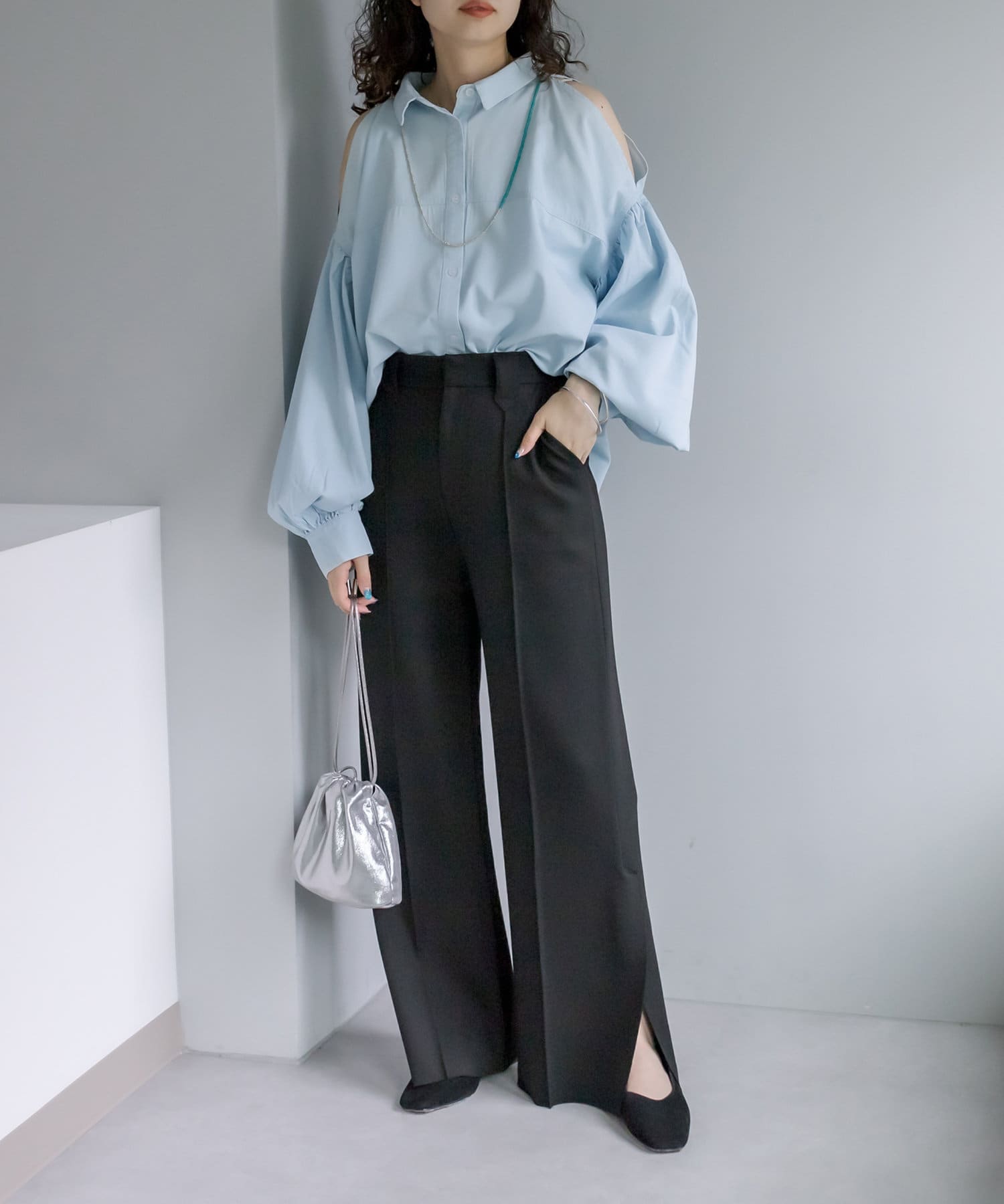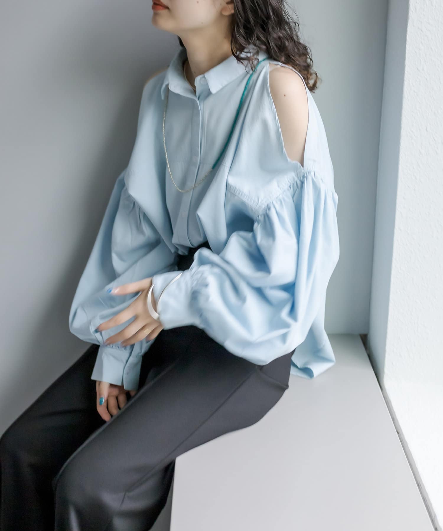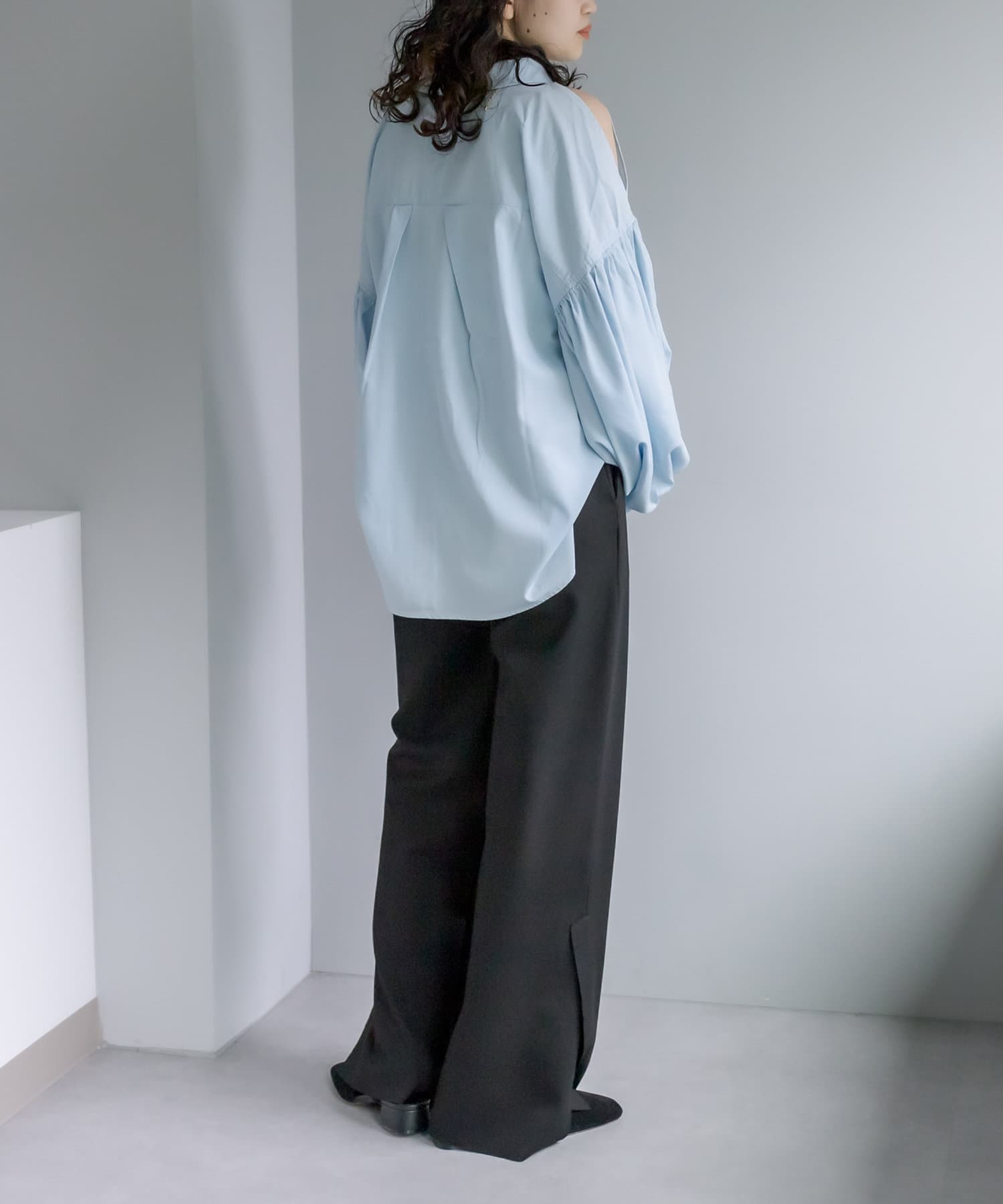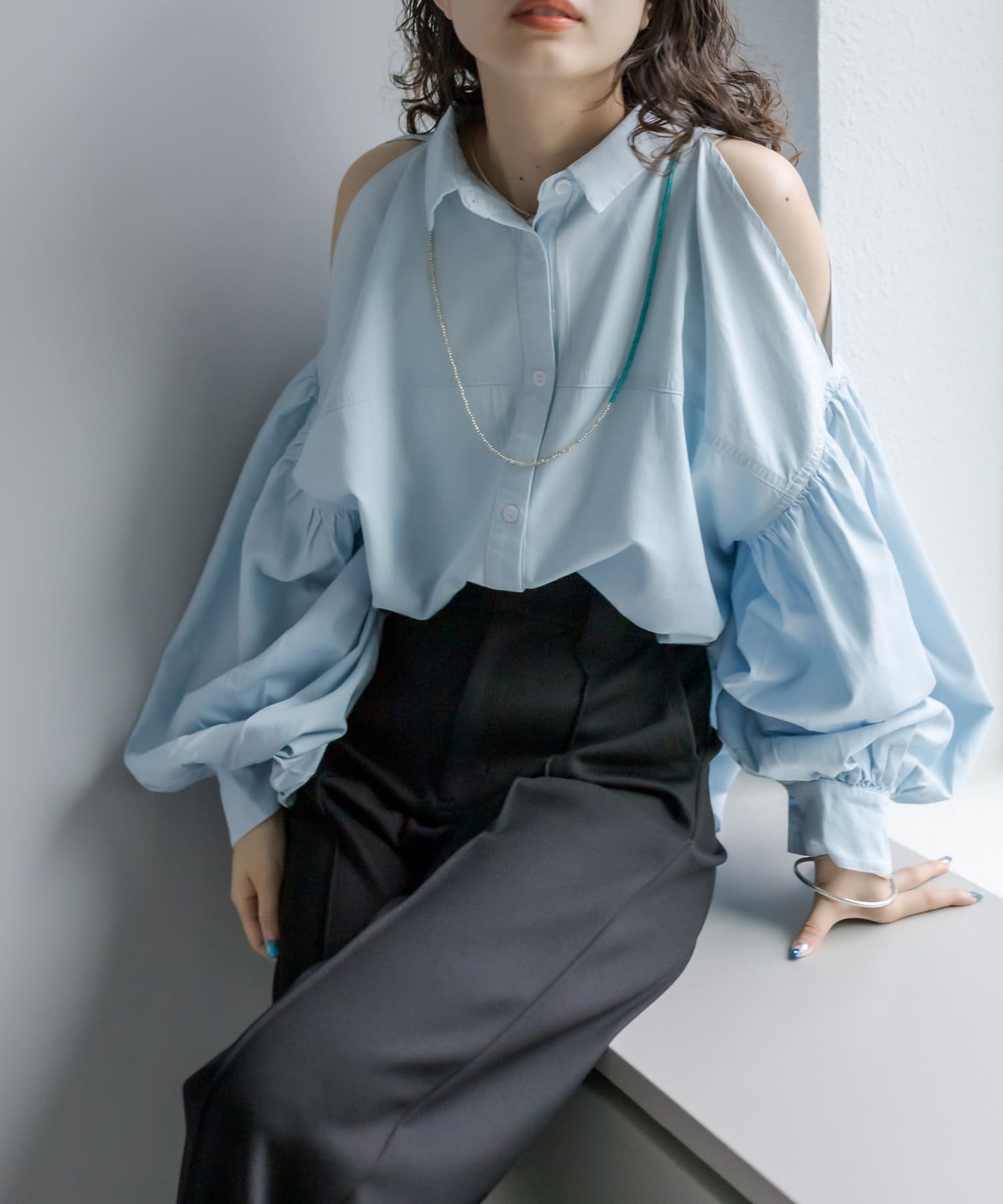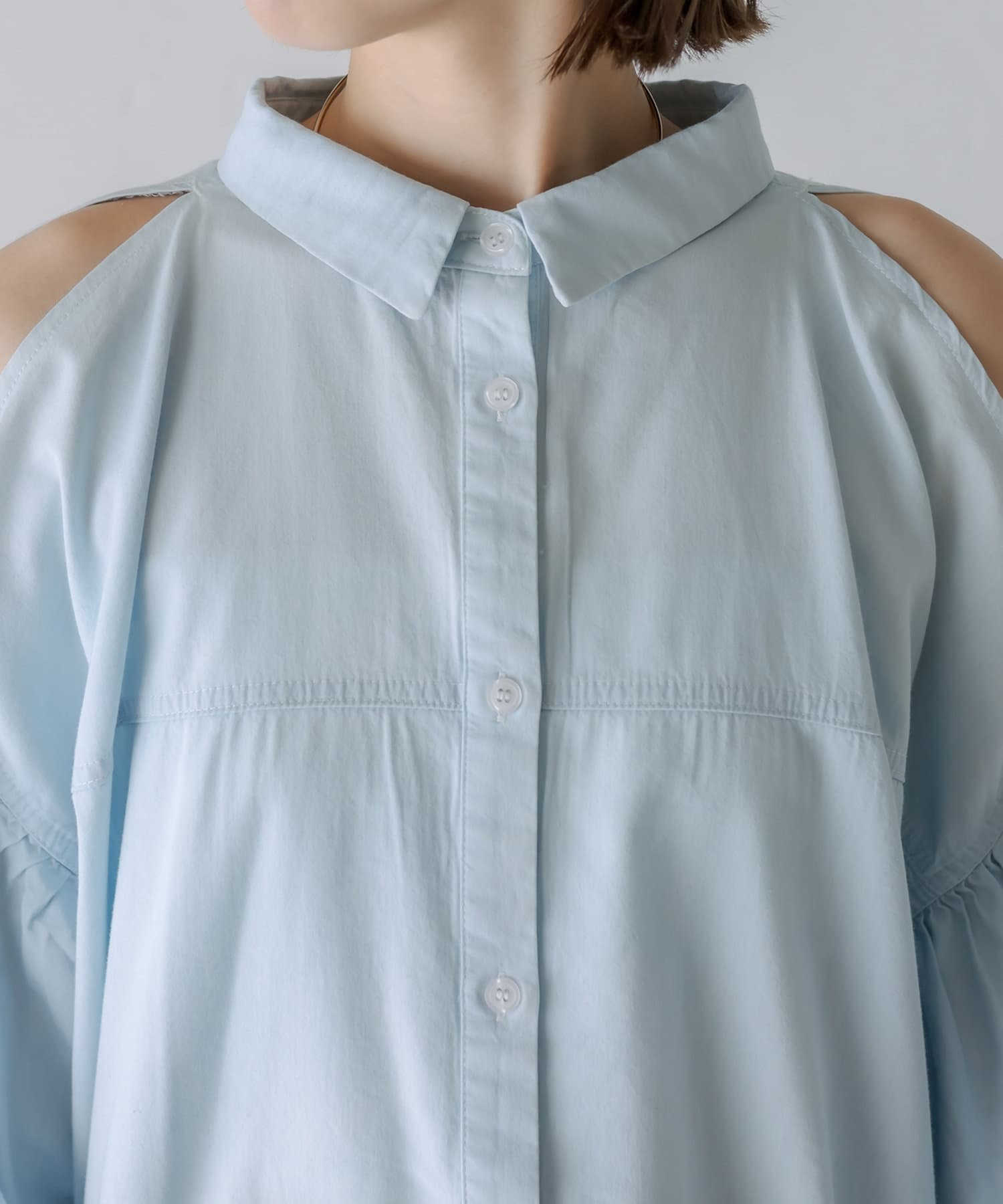 【新色追加】デニム肩あきボリュームシャツ