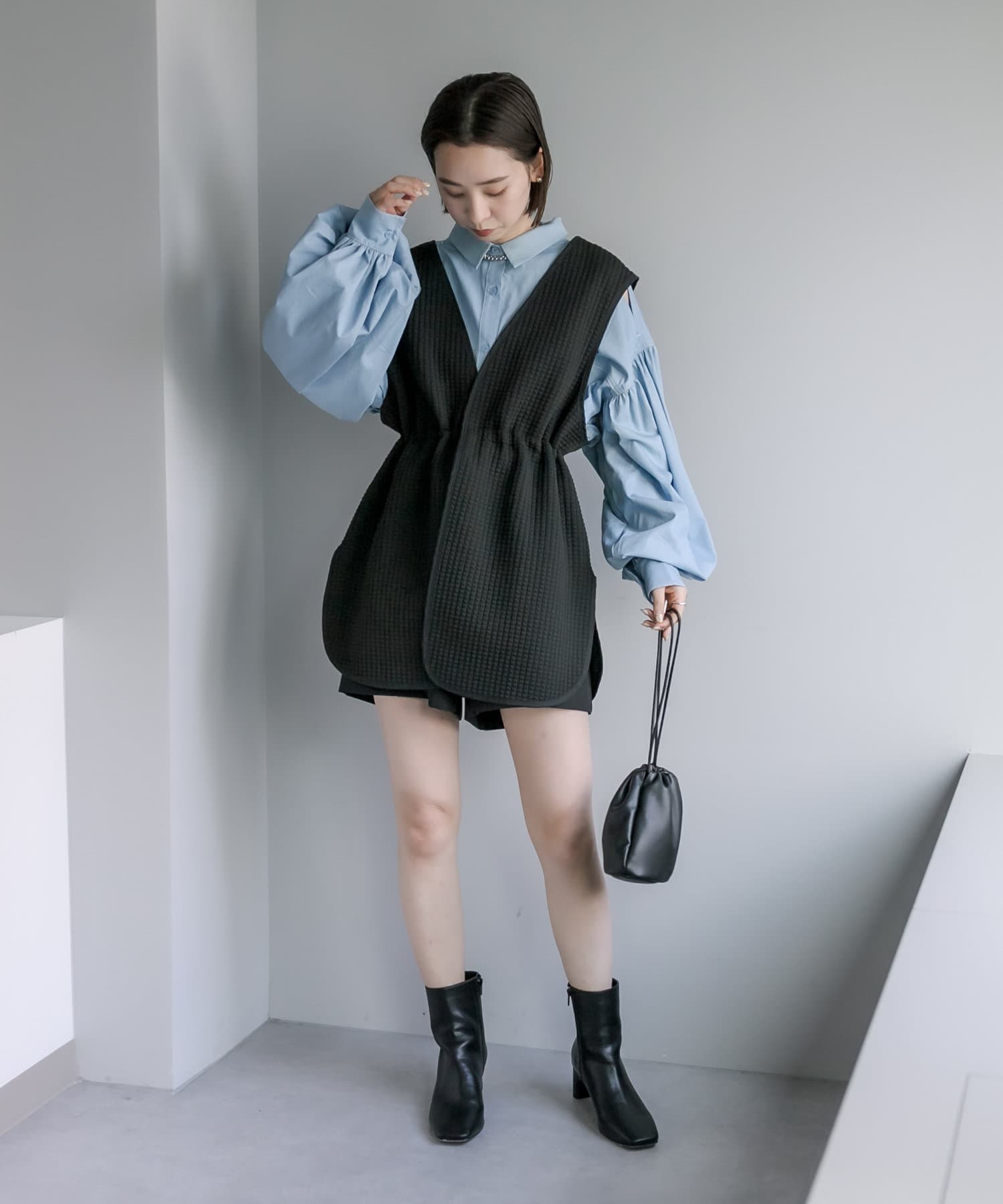 ・ミニボトムに合わせて、ワンピース風に。