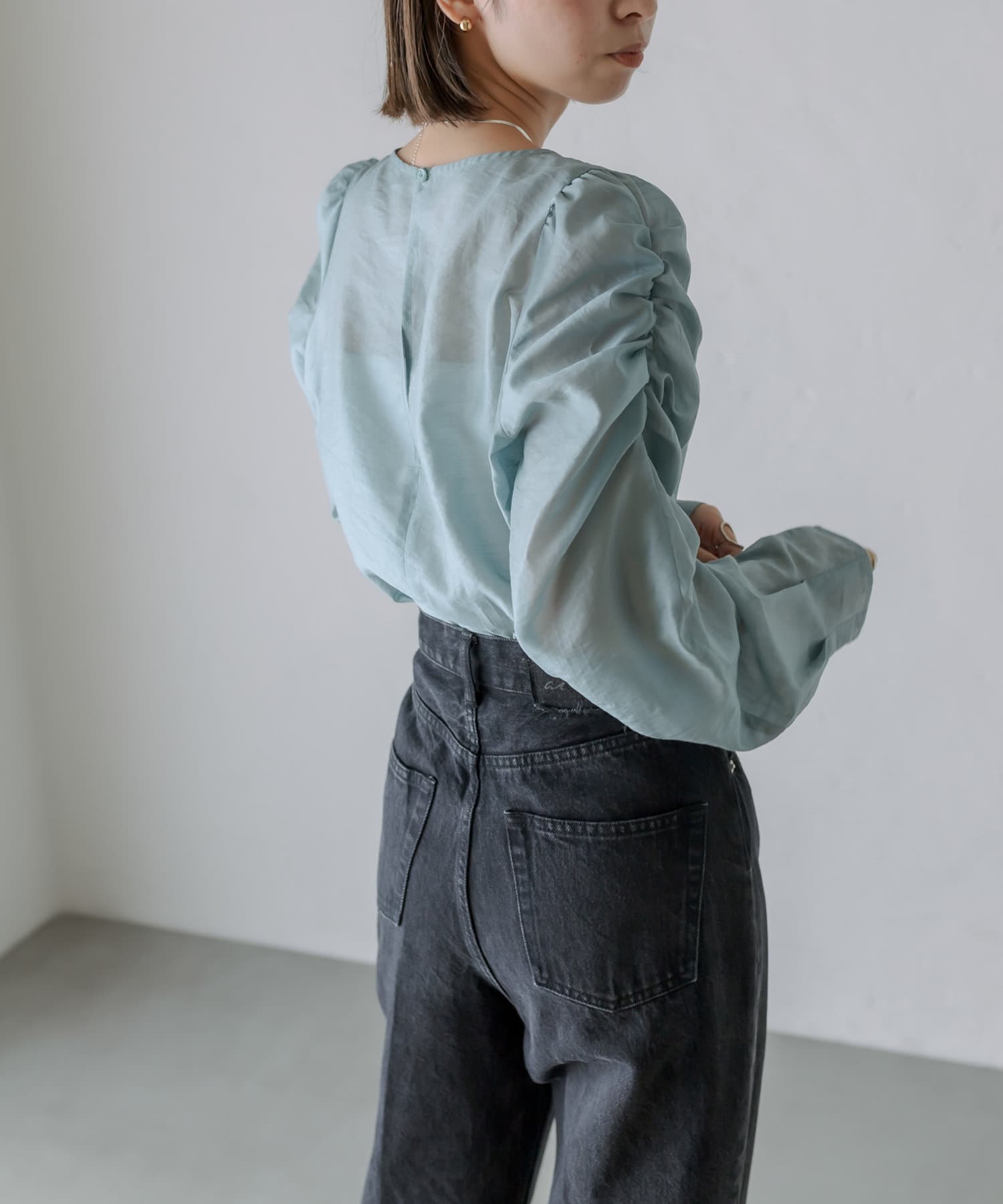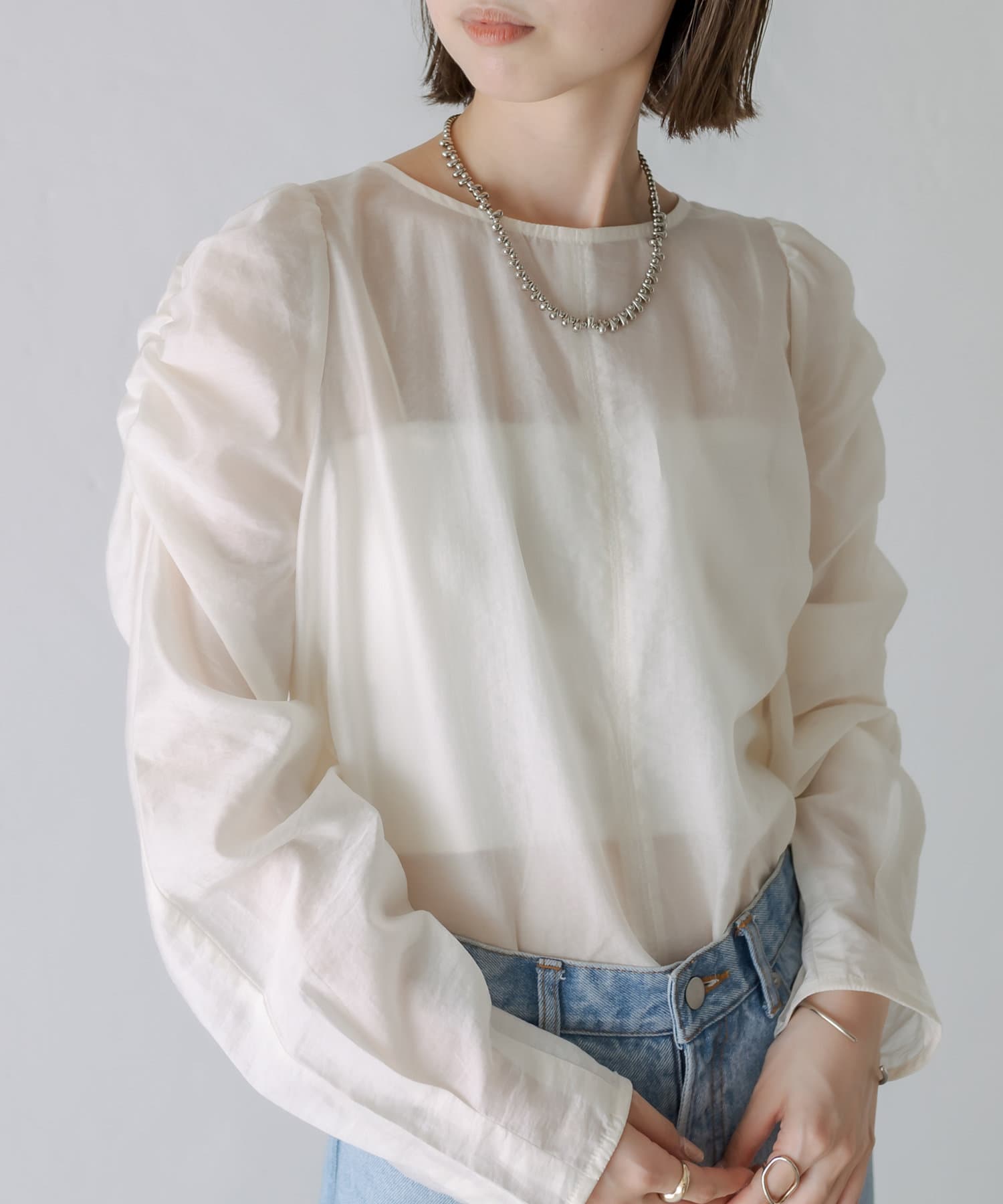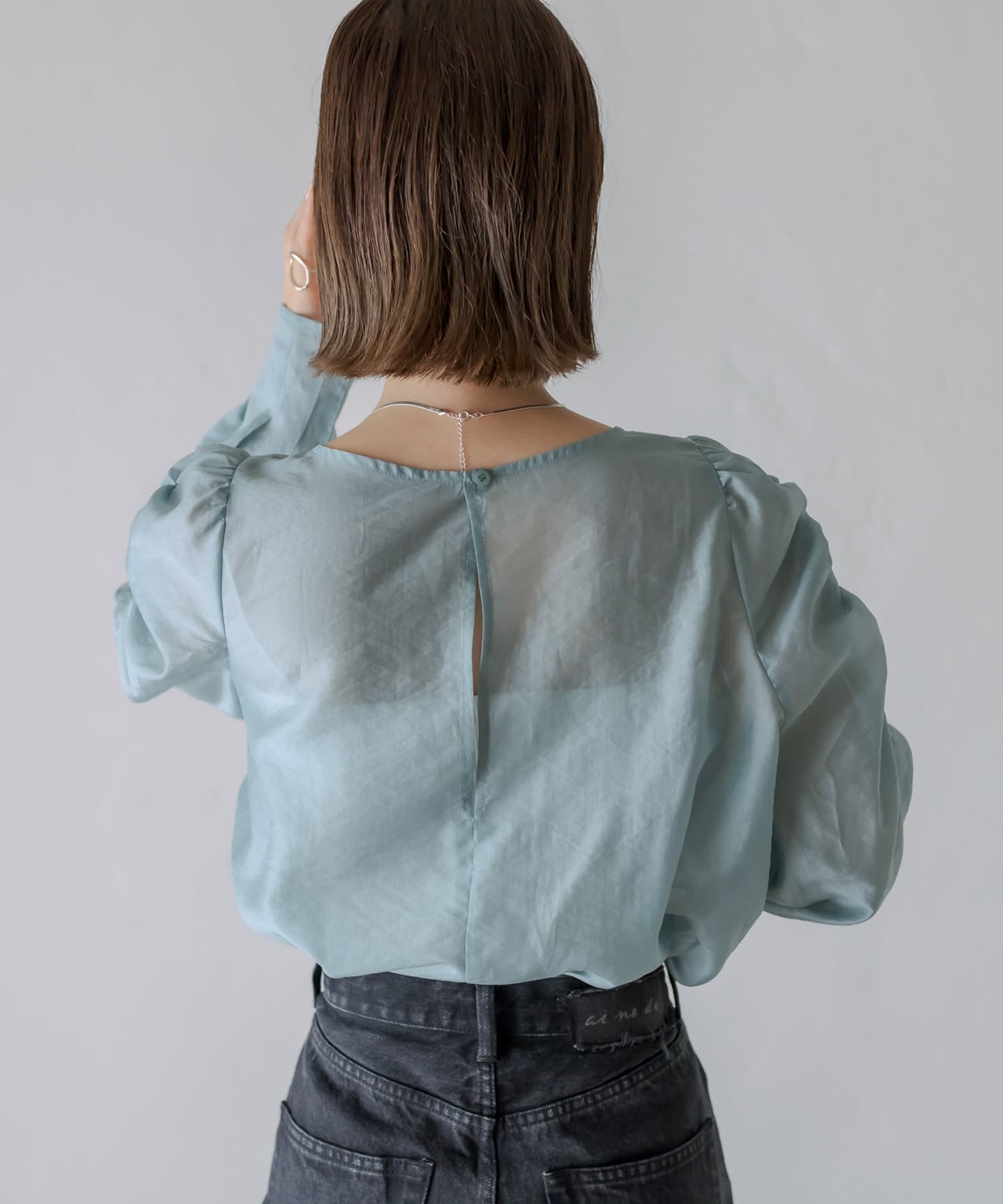 パフスリーブデザインが目を惹くシアーブラウスが登場。