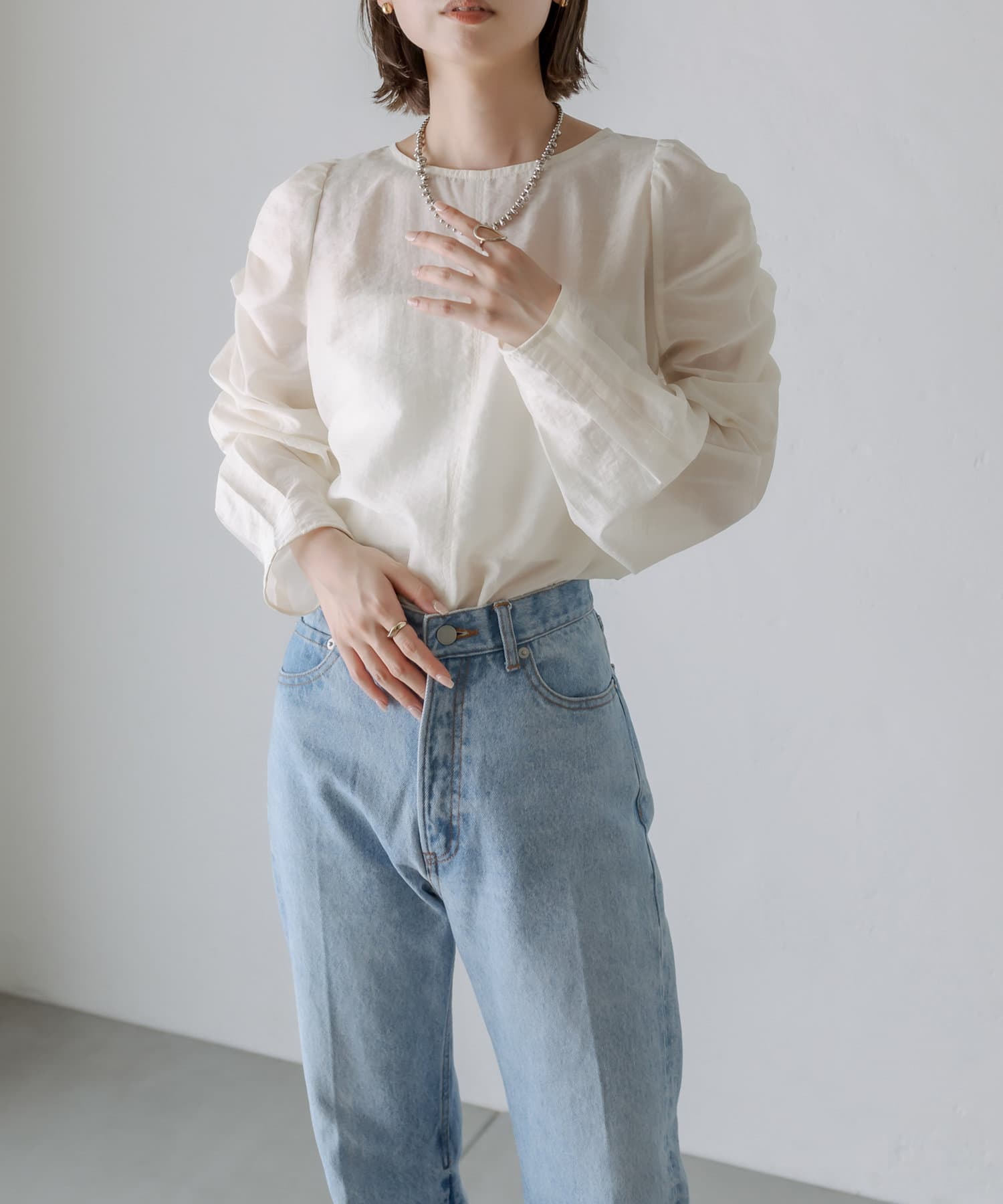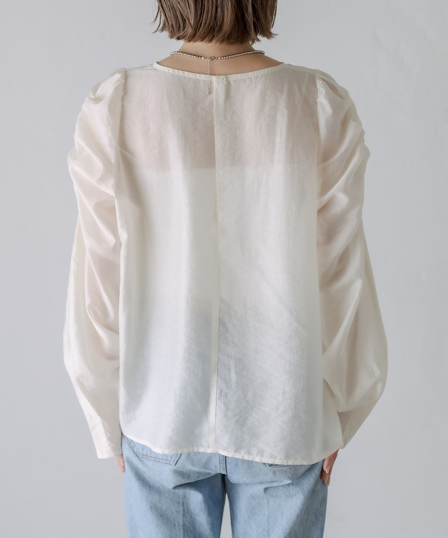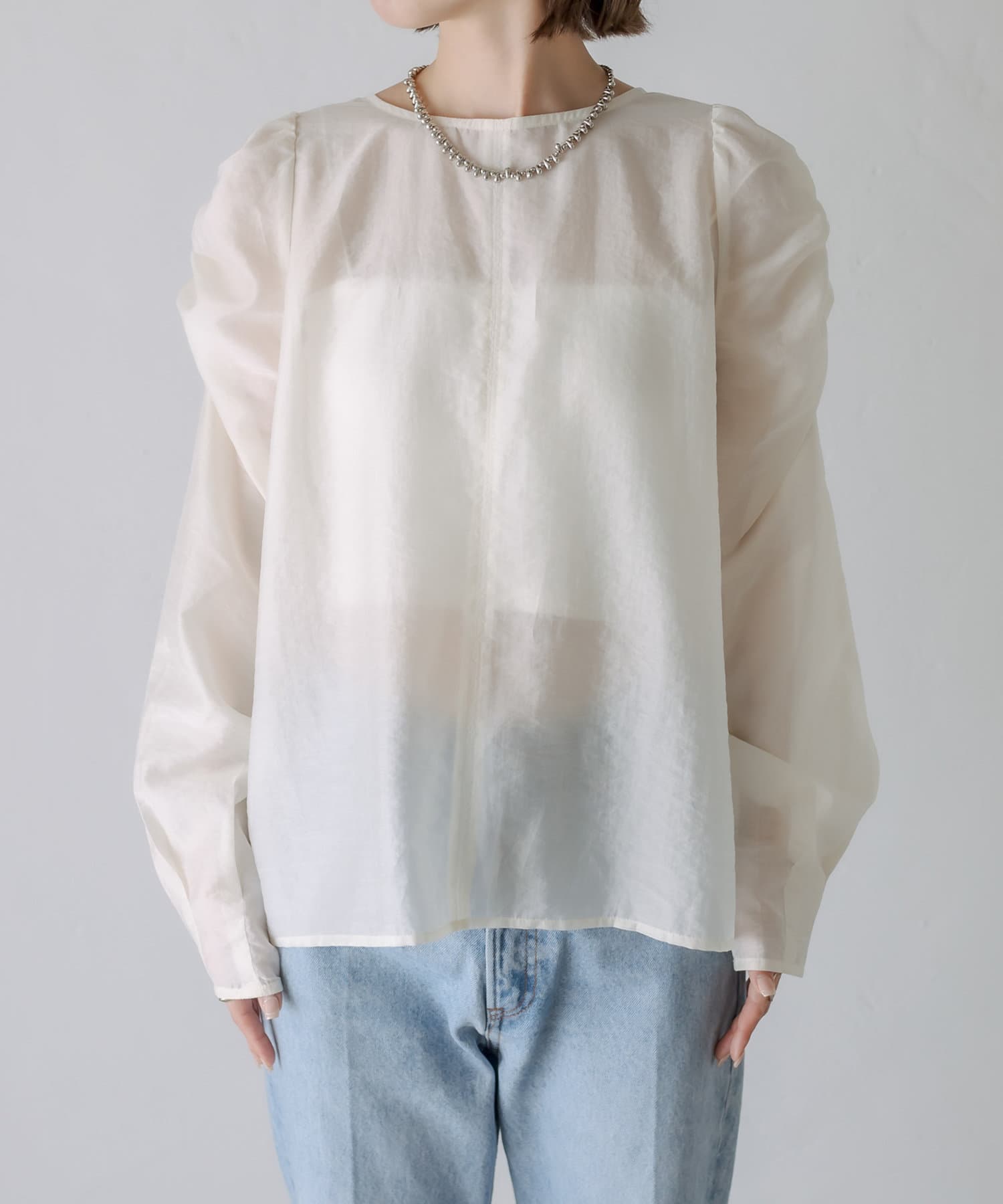 パフスリーブデザインが目を惹くシアーブラウスが登場。