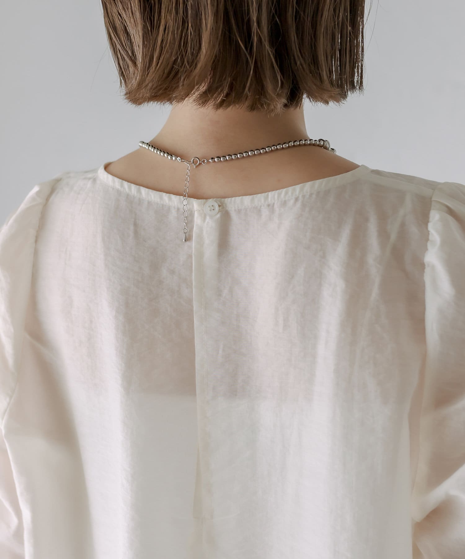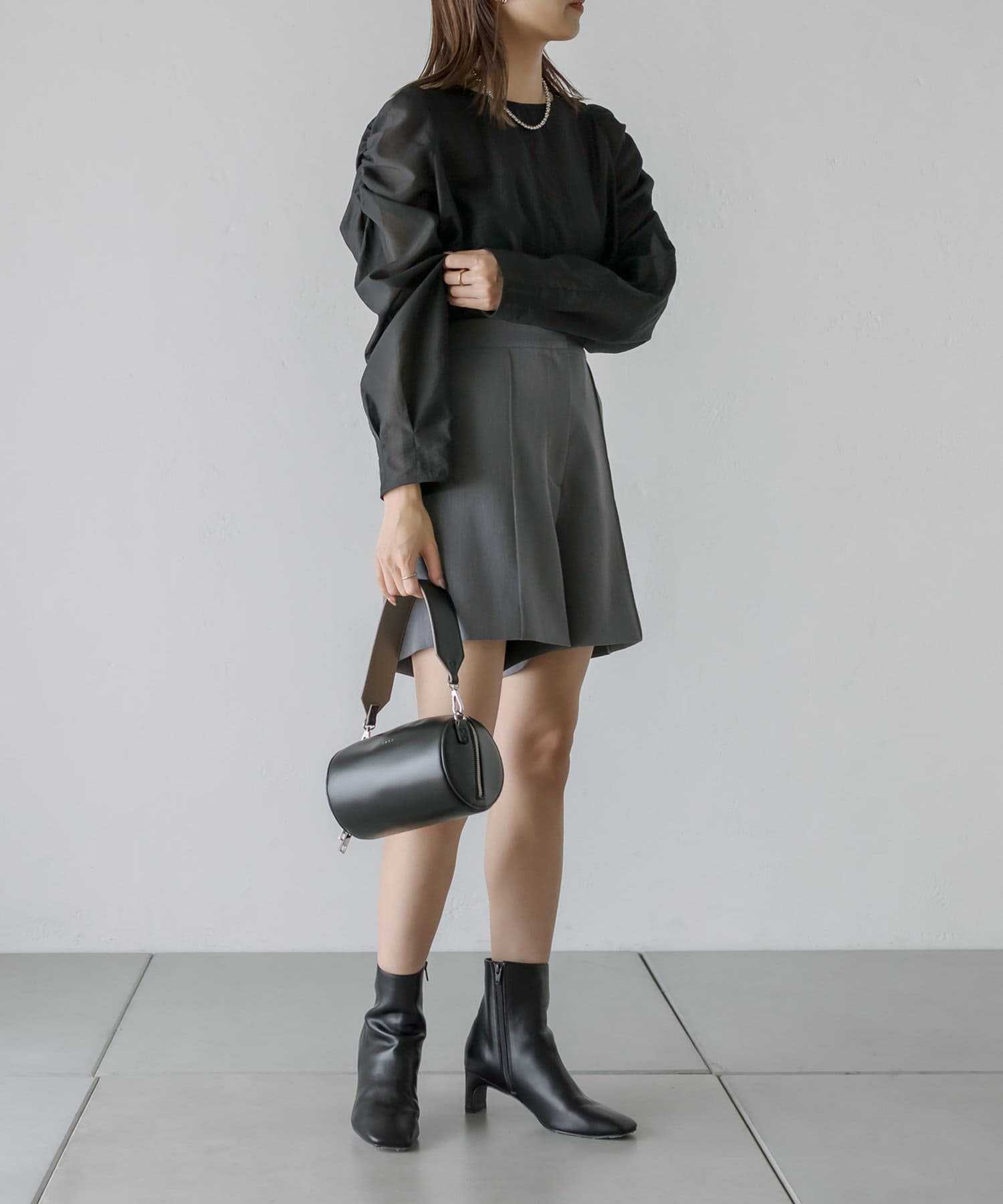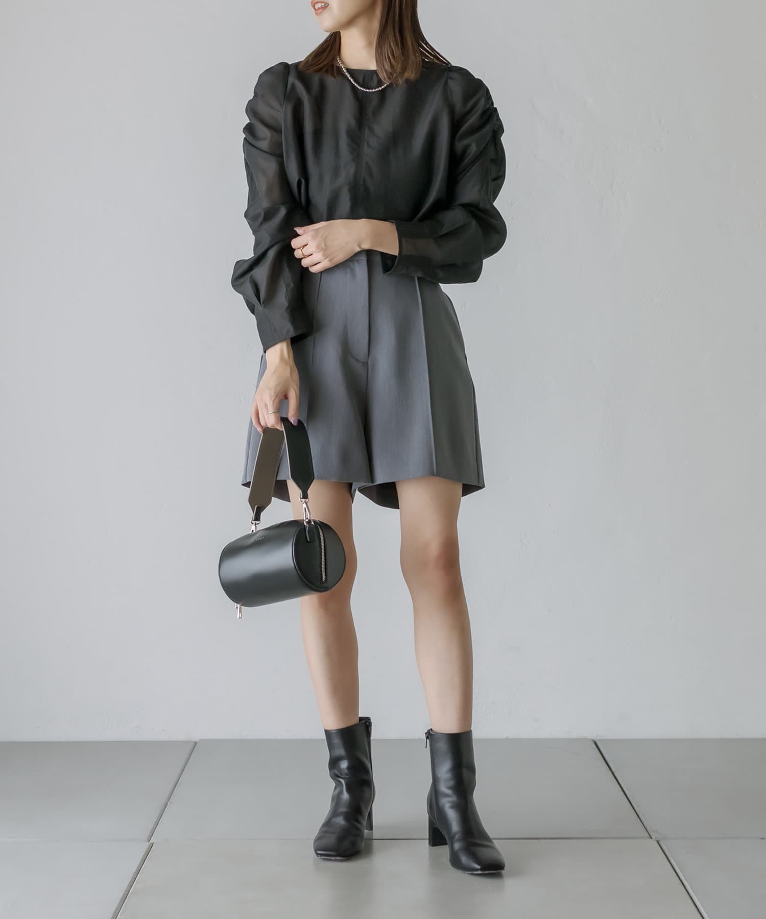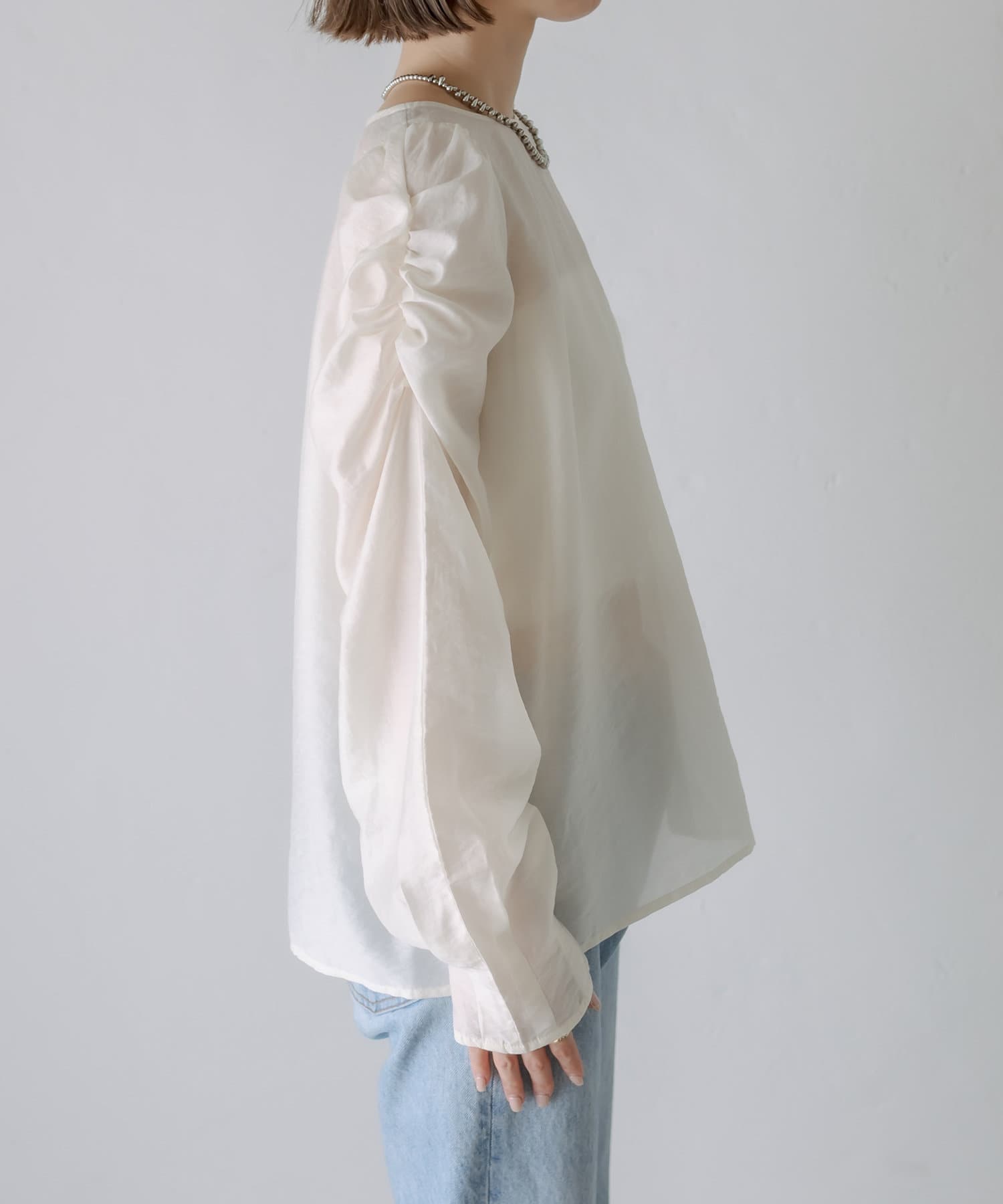・肩にたっぷりとギャザーが入っており女性らしい印象に。
