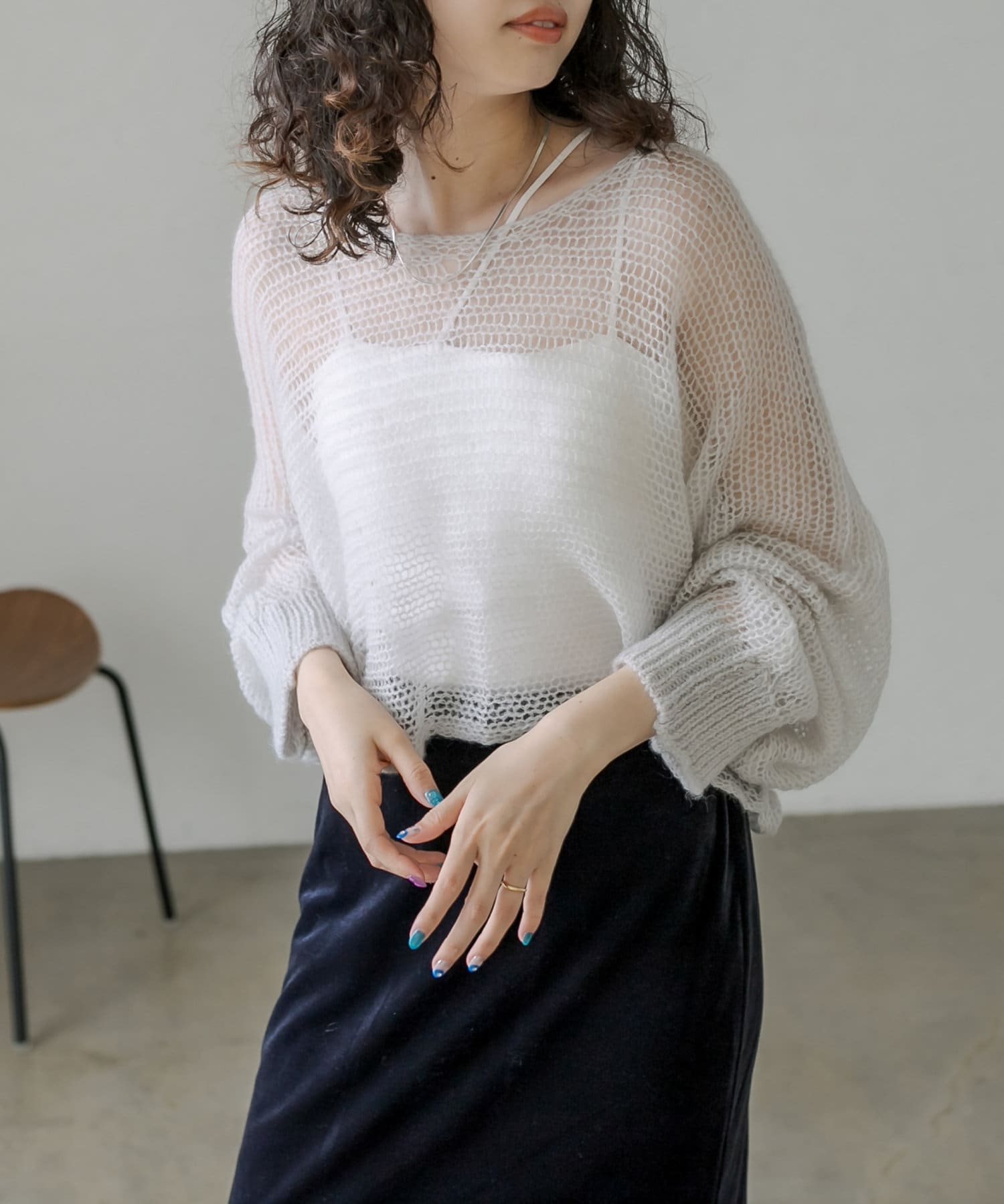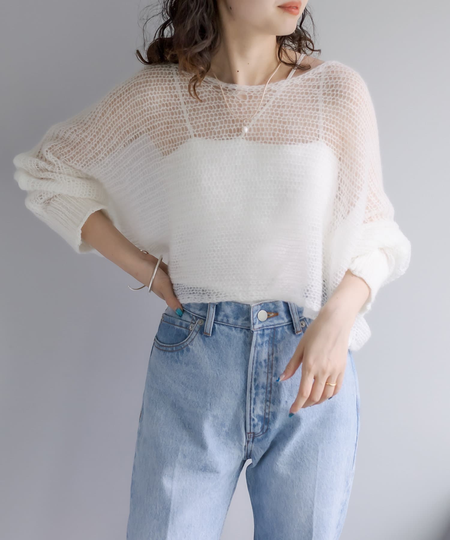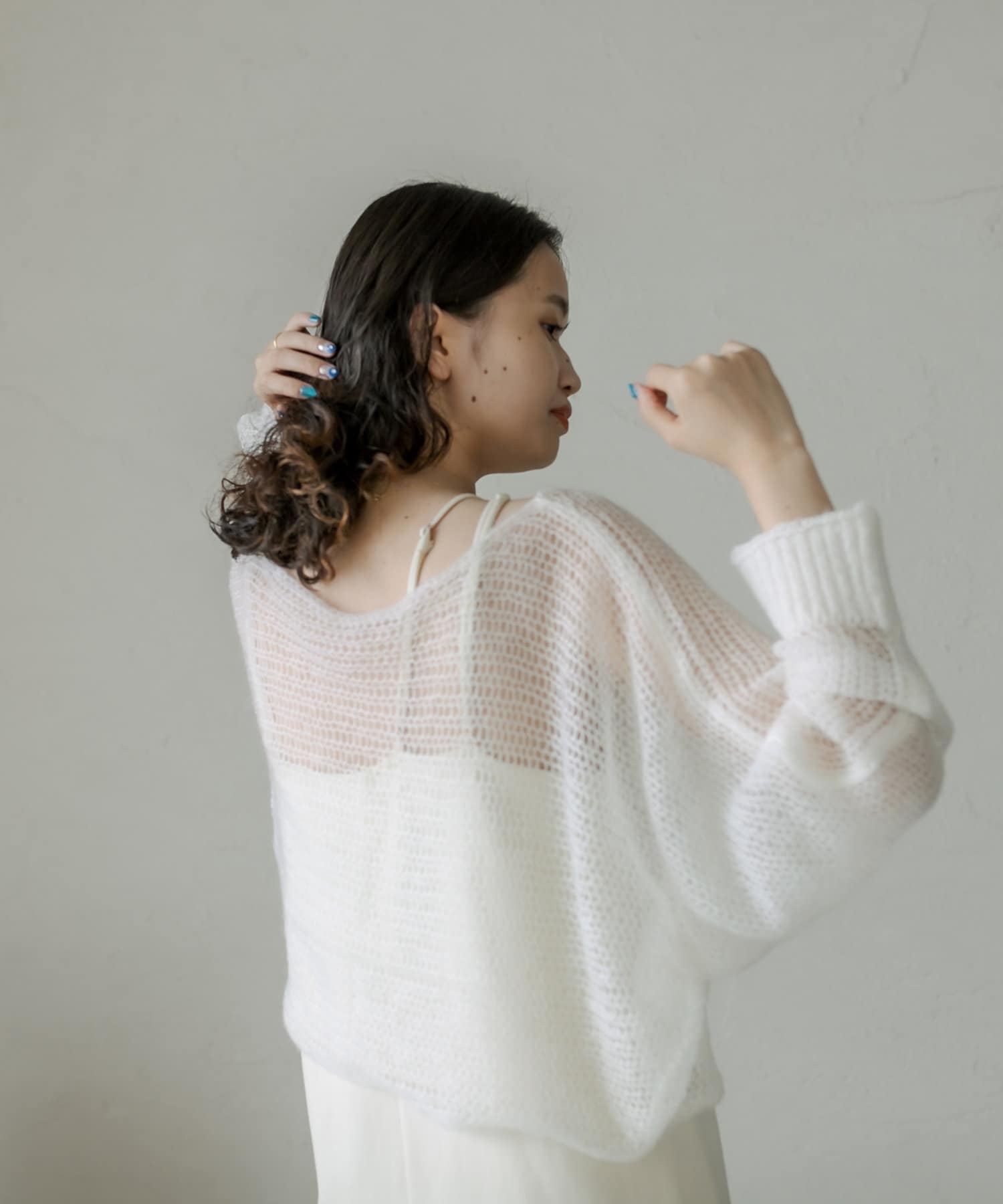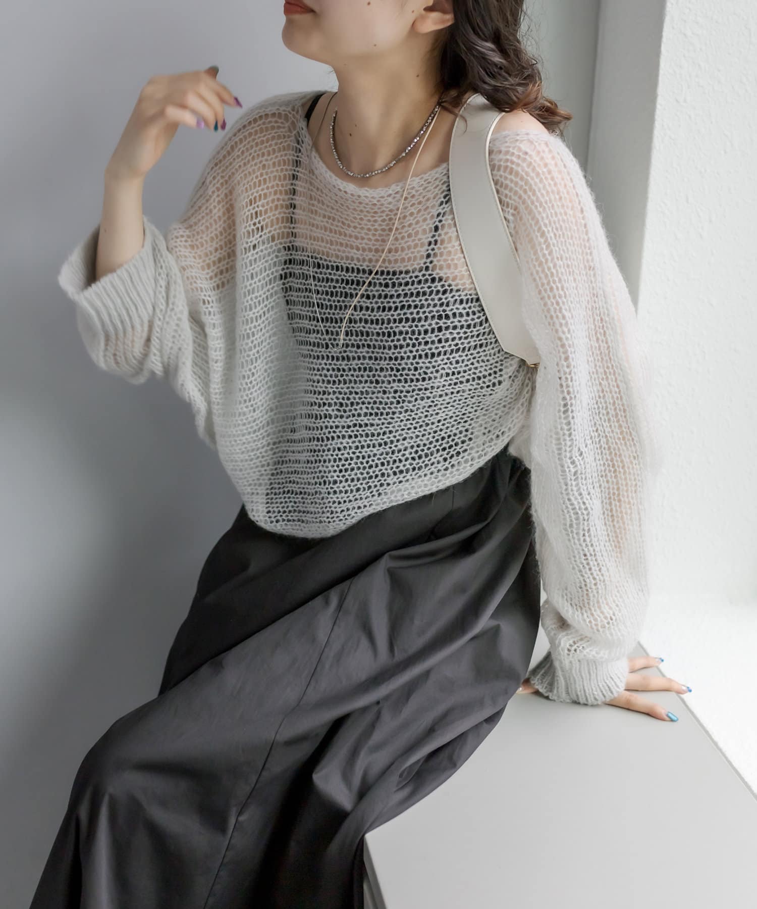 ・抜け感のでる編地が1枚でスタイリングの主役に。