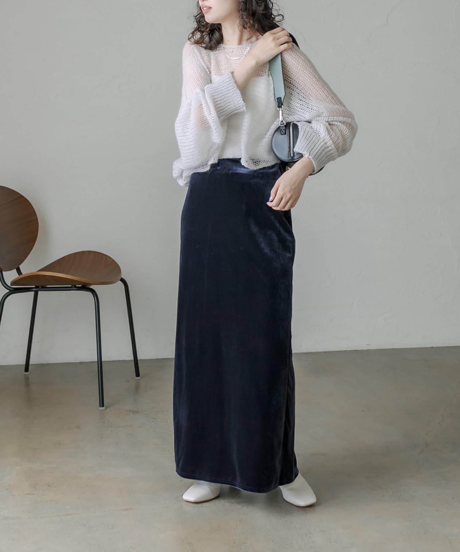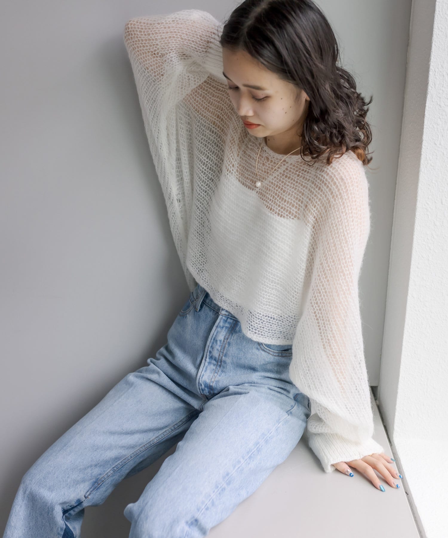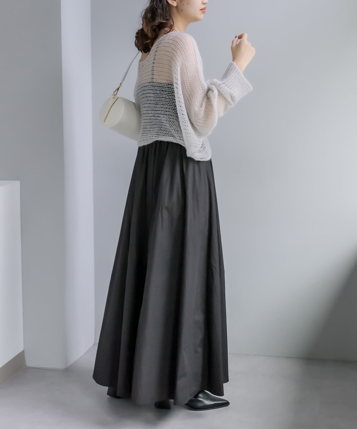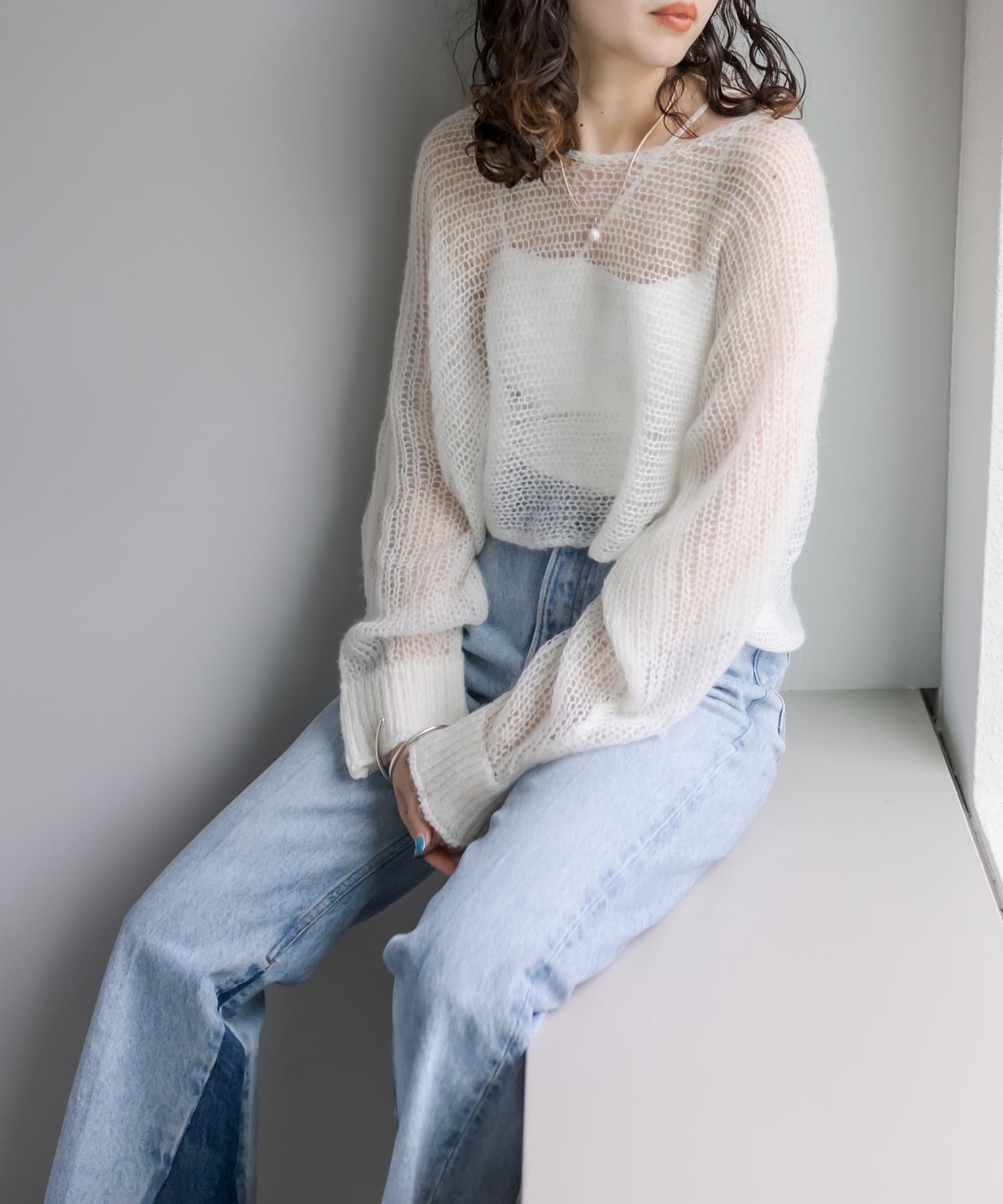 ・抜け感のでる編地が1枚でスタイリングの主役に。