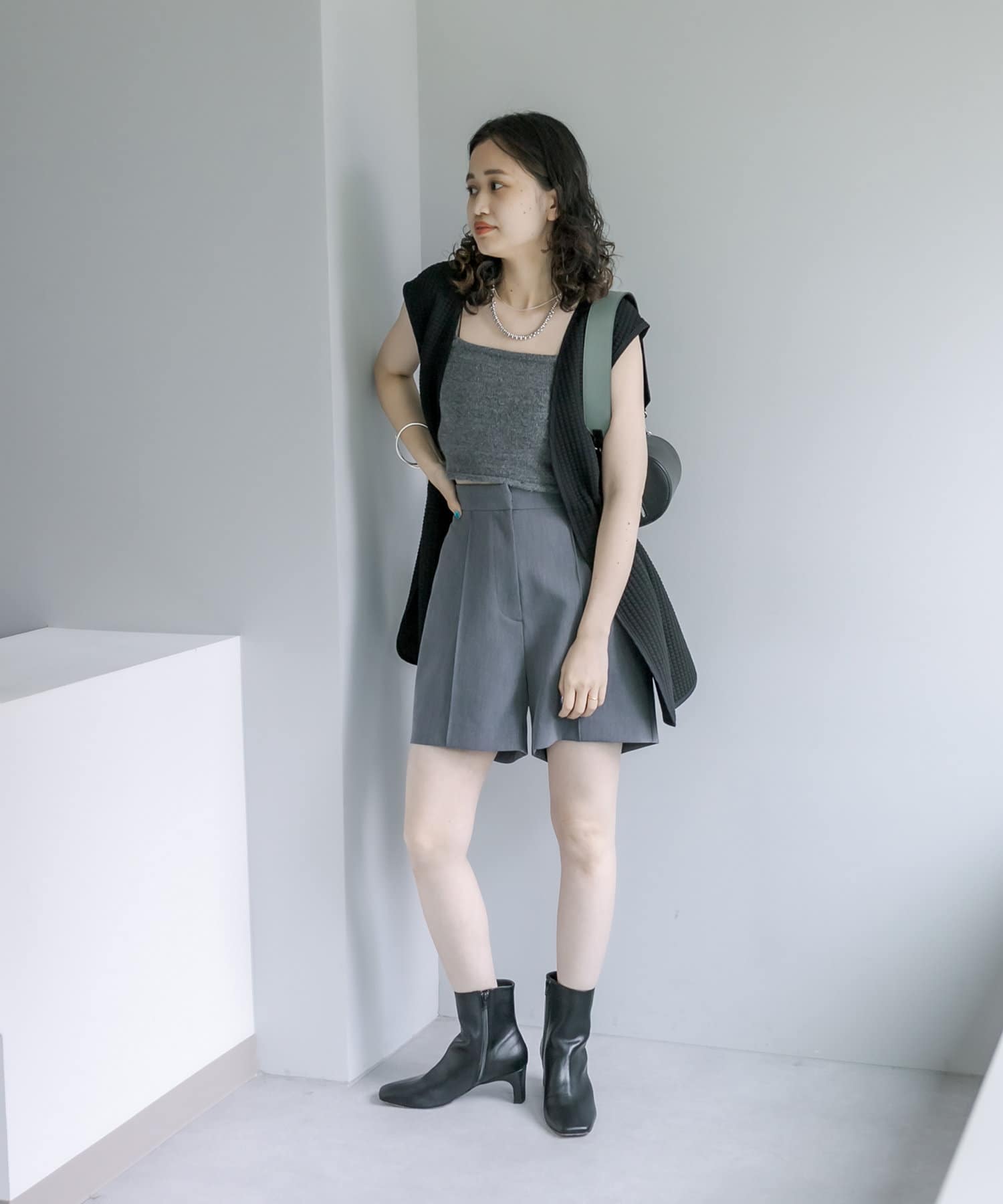 ・秋のスタイリングのインナー使いに欠かせないニットビスチェ。