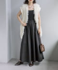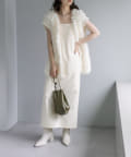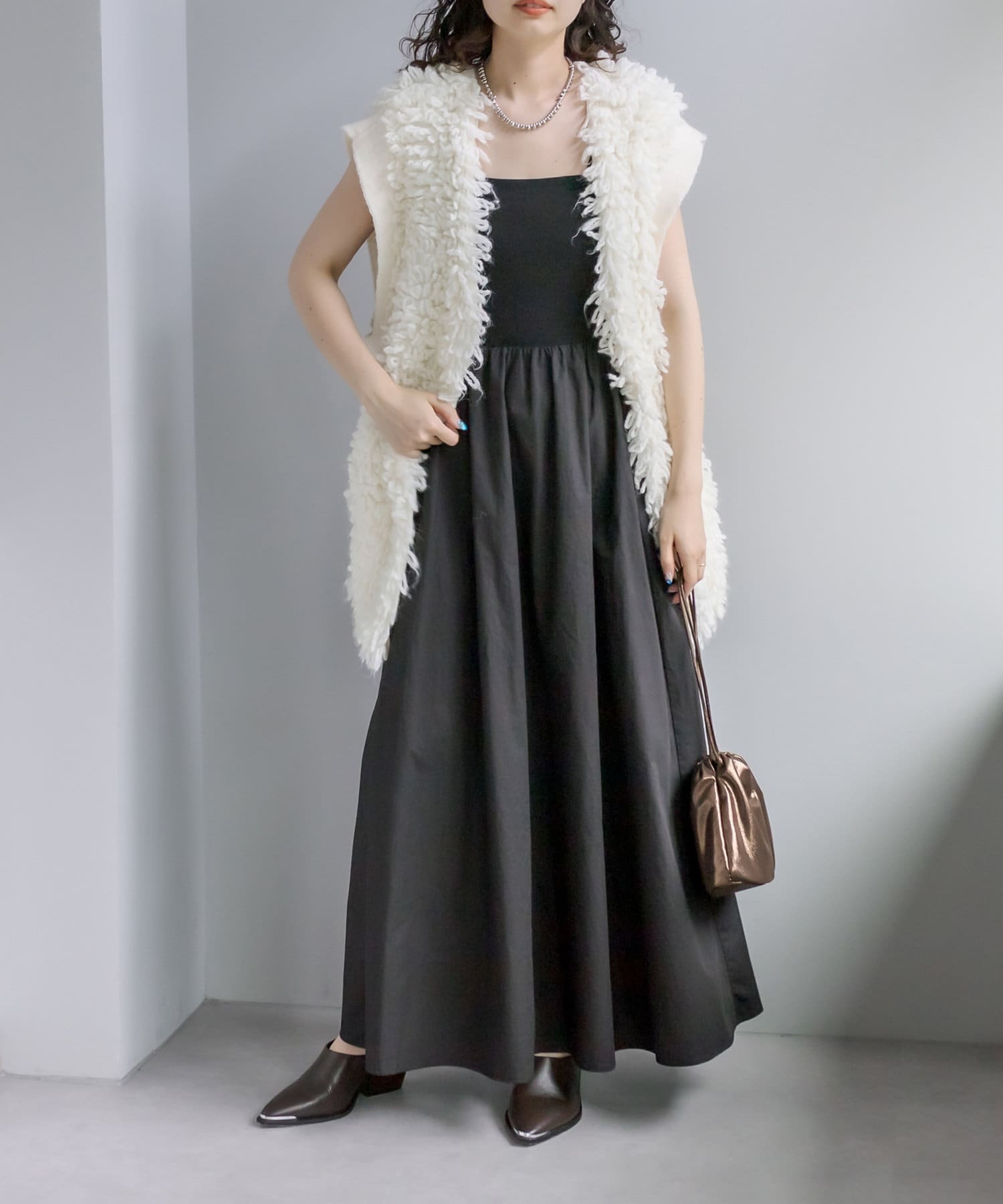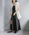ワンピースの上にレイヤードするだけでワンランクアップのスタイリングに。
