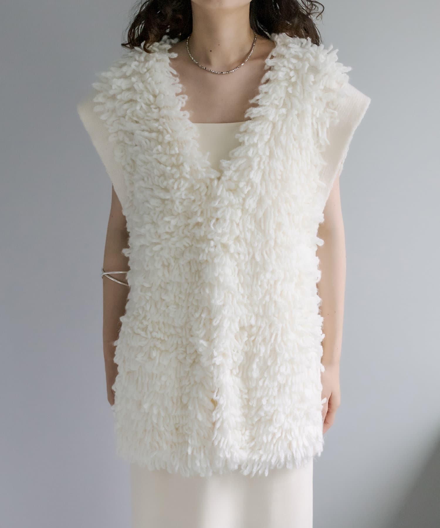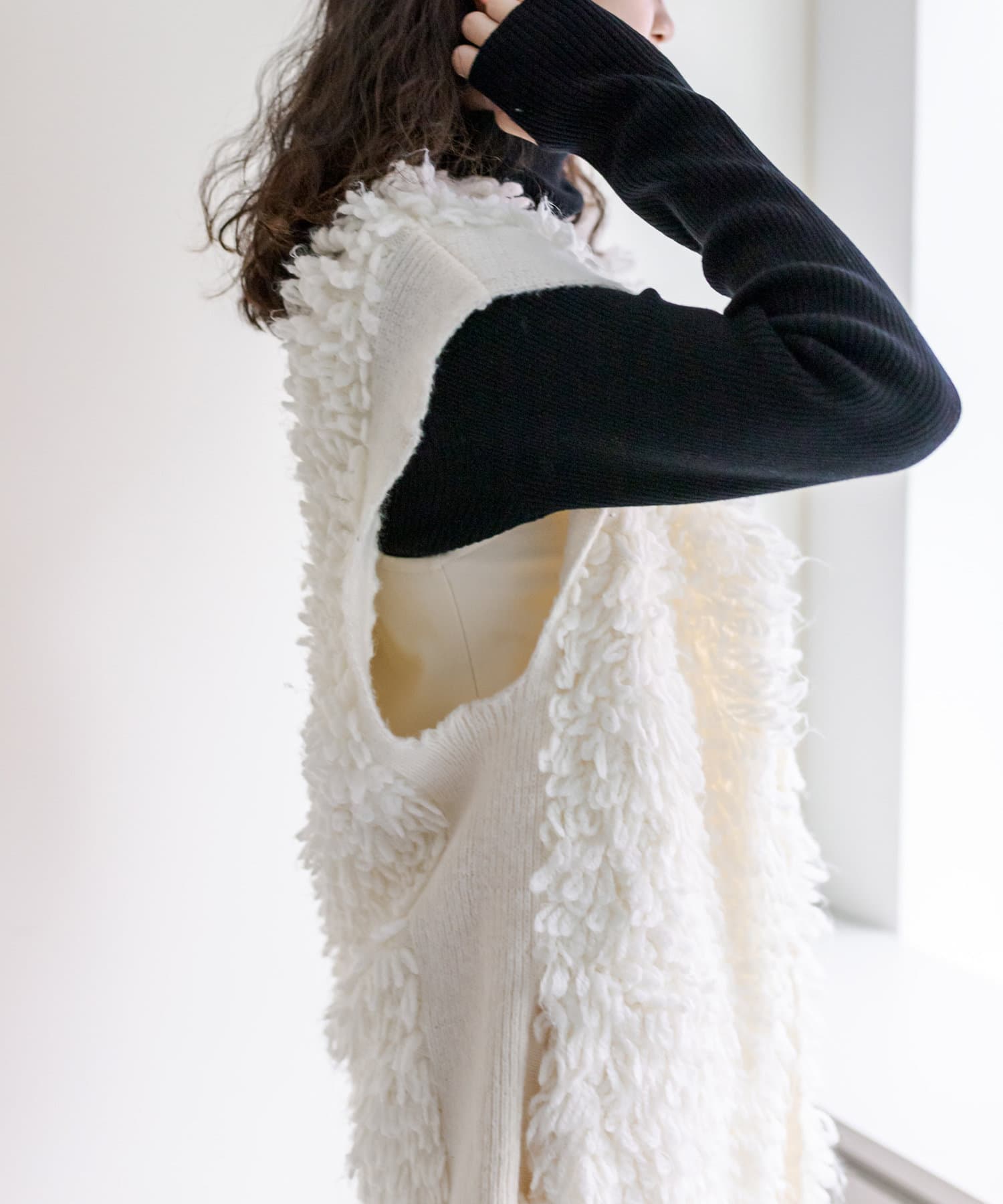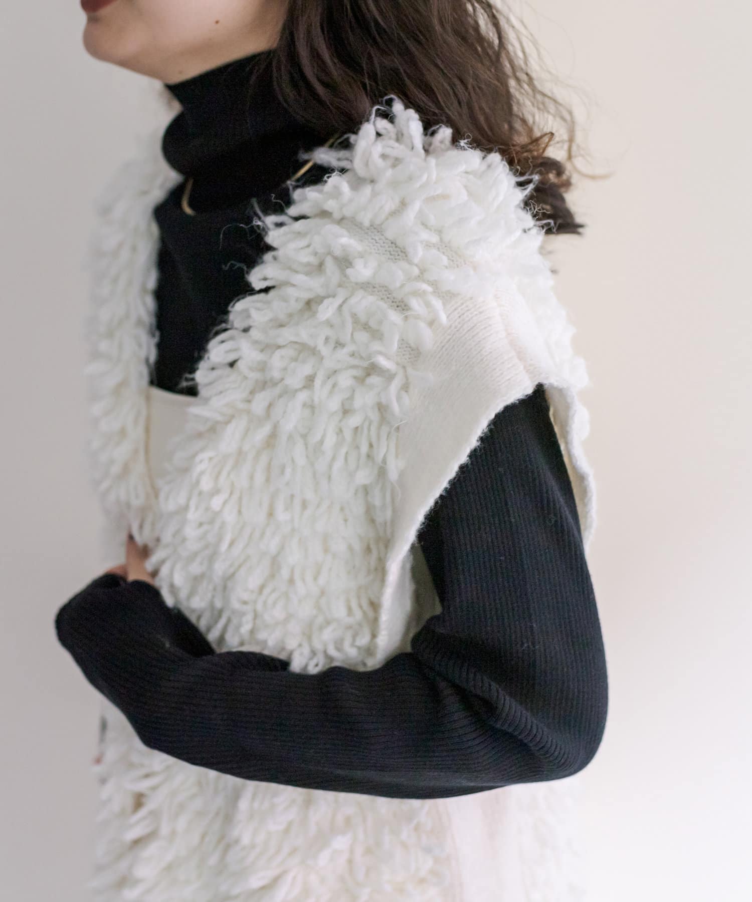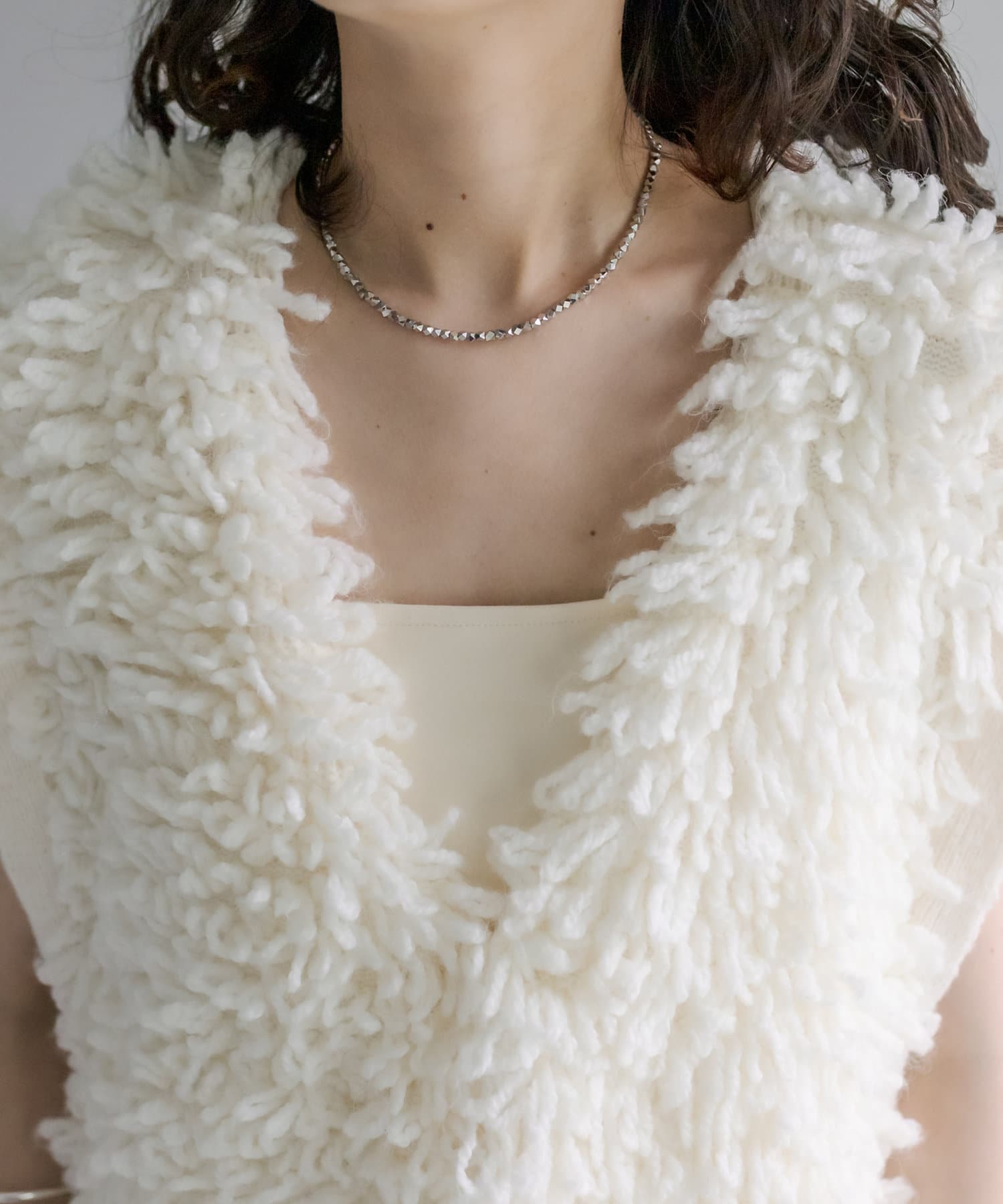 ・スタイリングにプラスするだけで華やかに決まるループベスト。