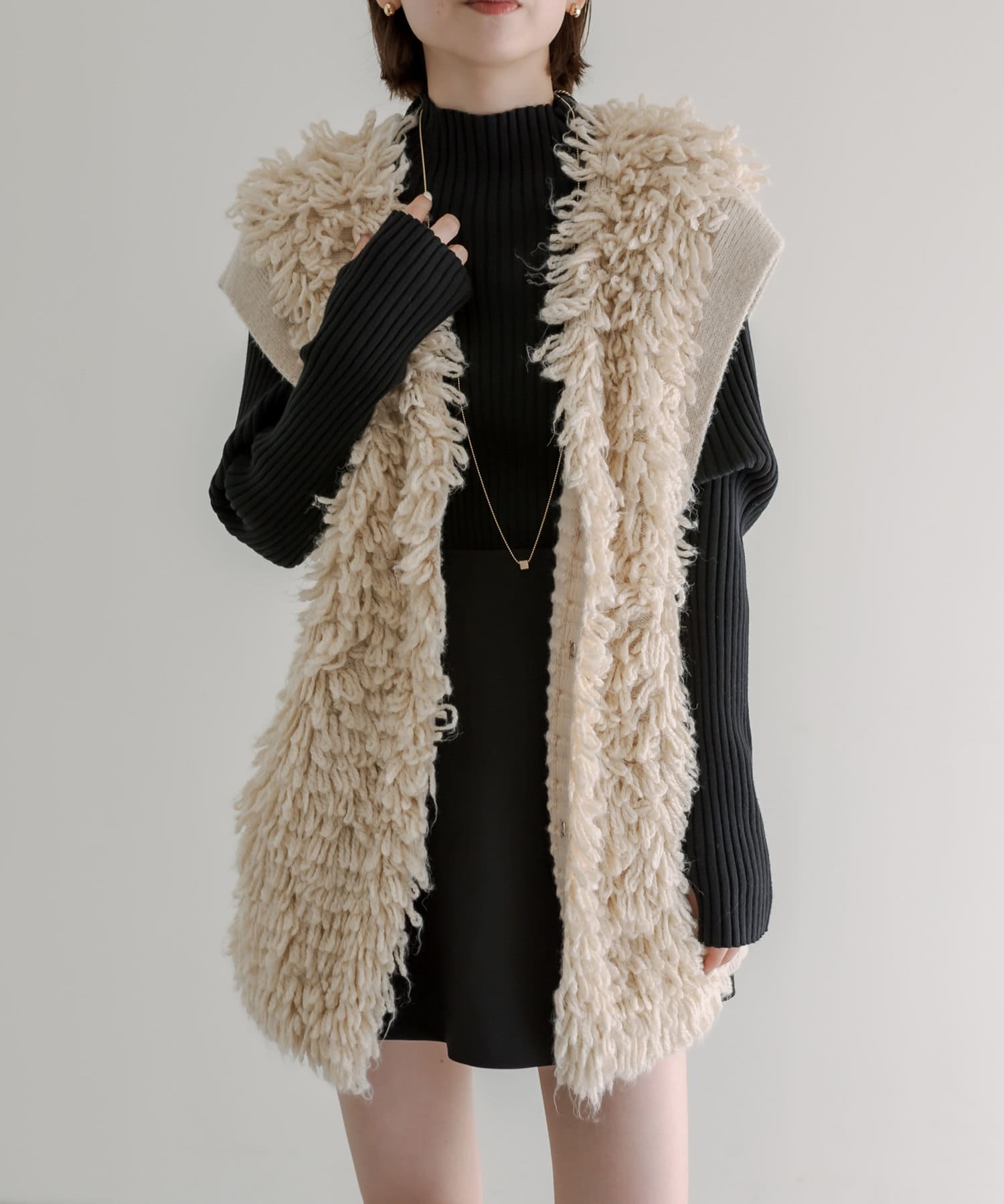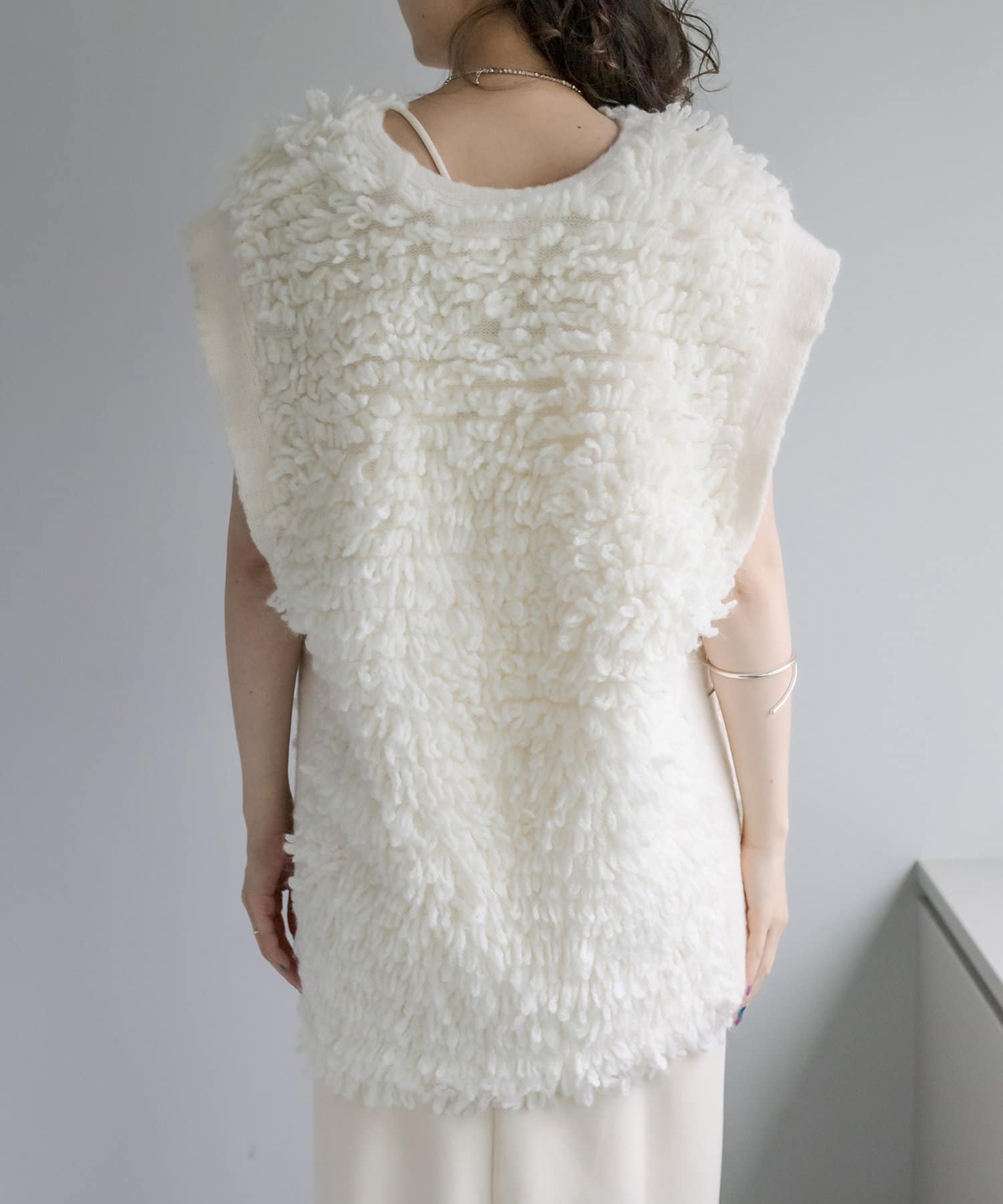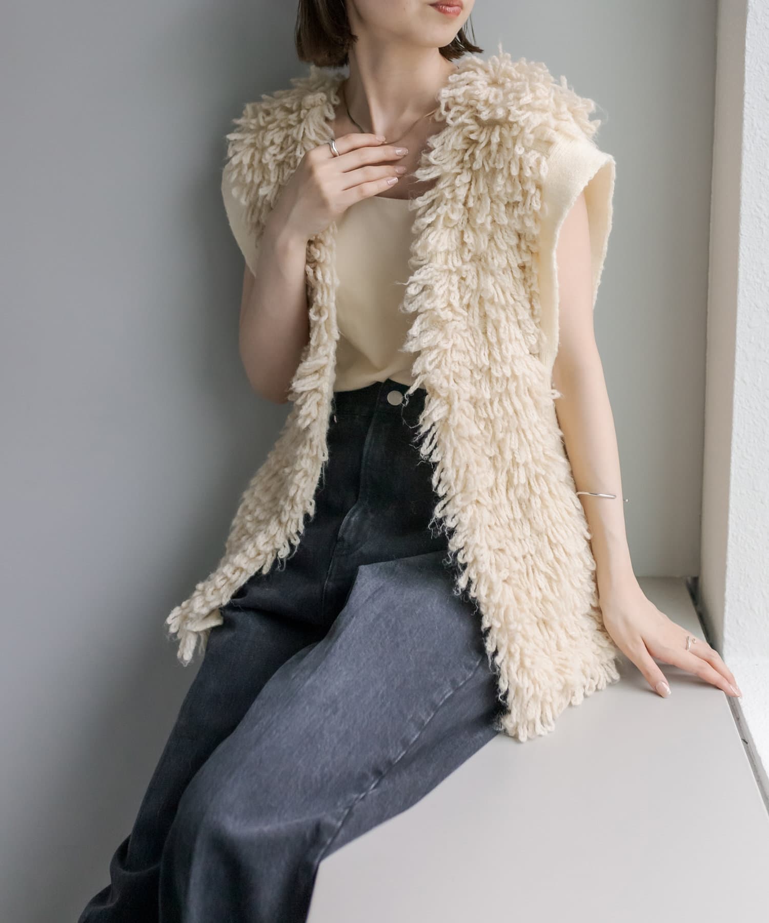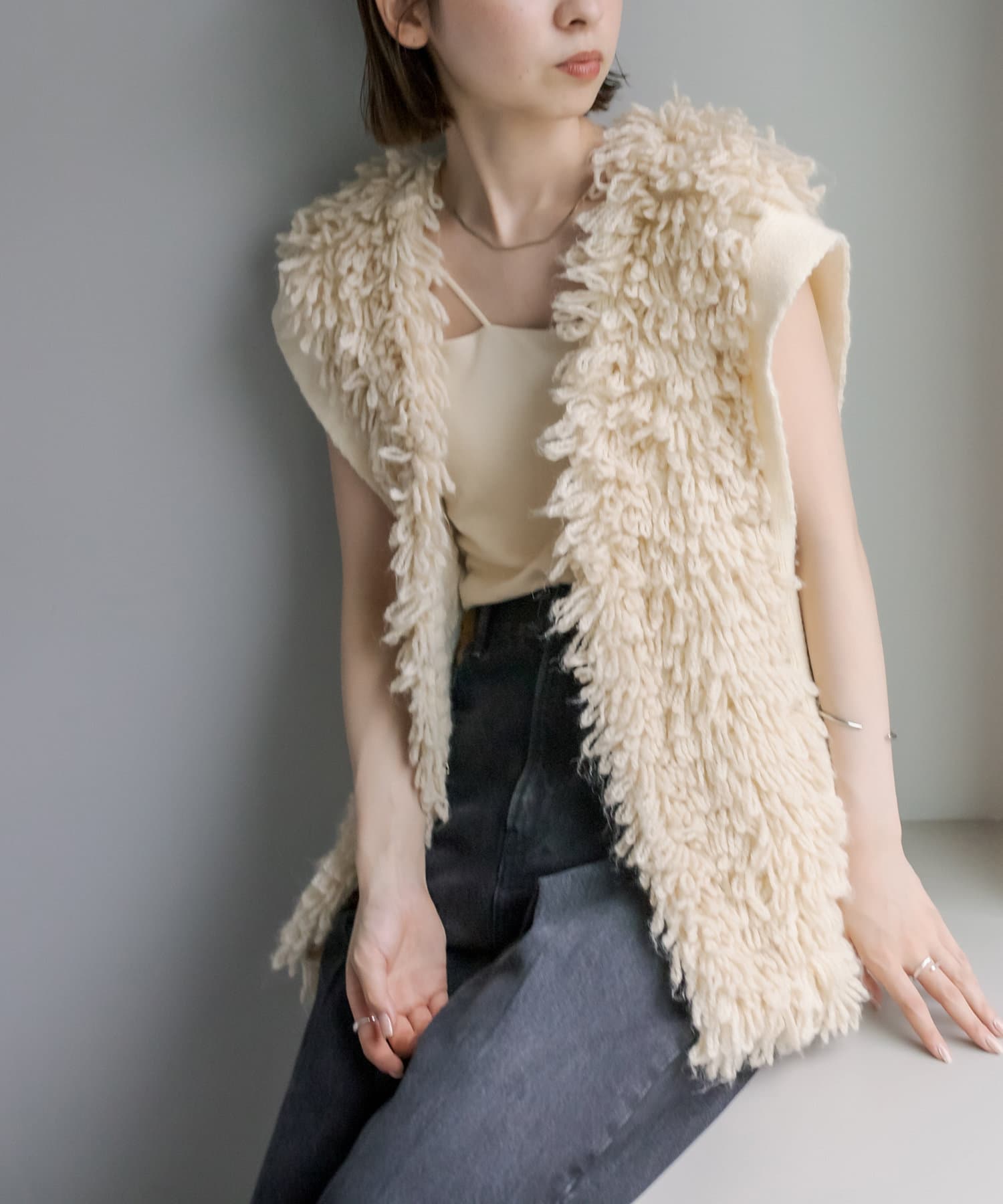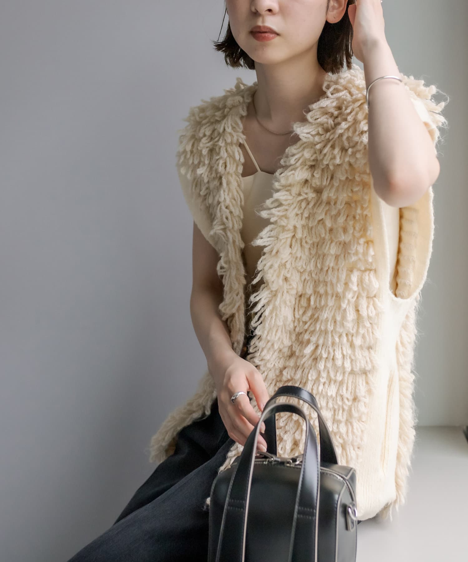 ・スタイリングにプラスするだけで華やかに決まるループベスト。