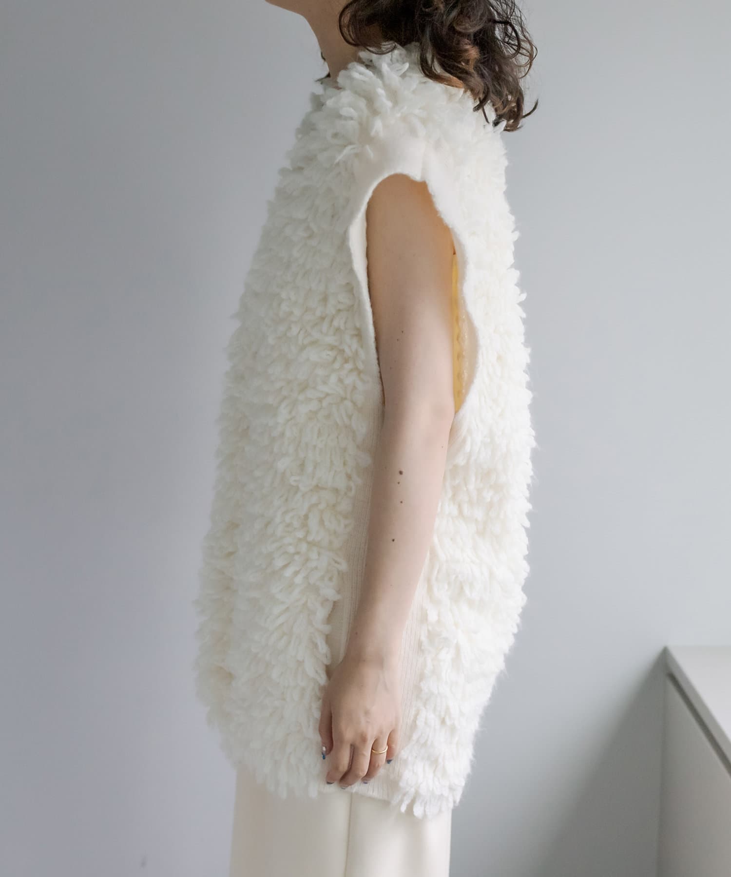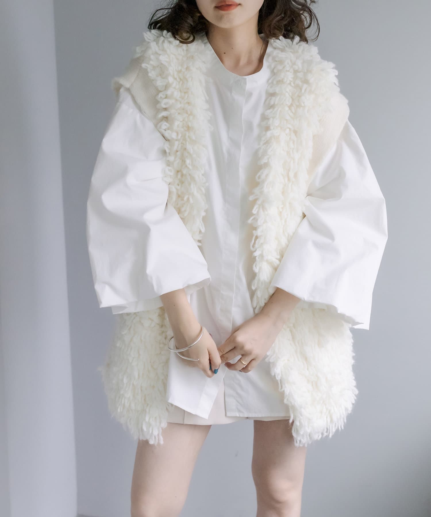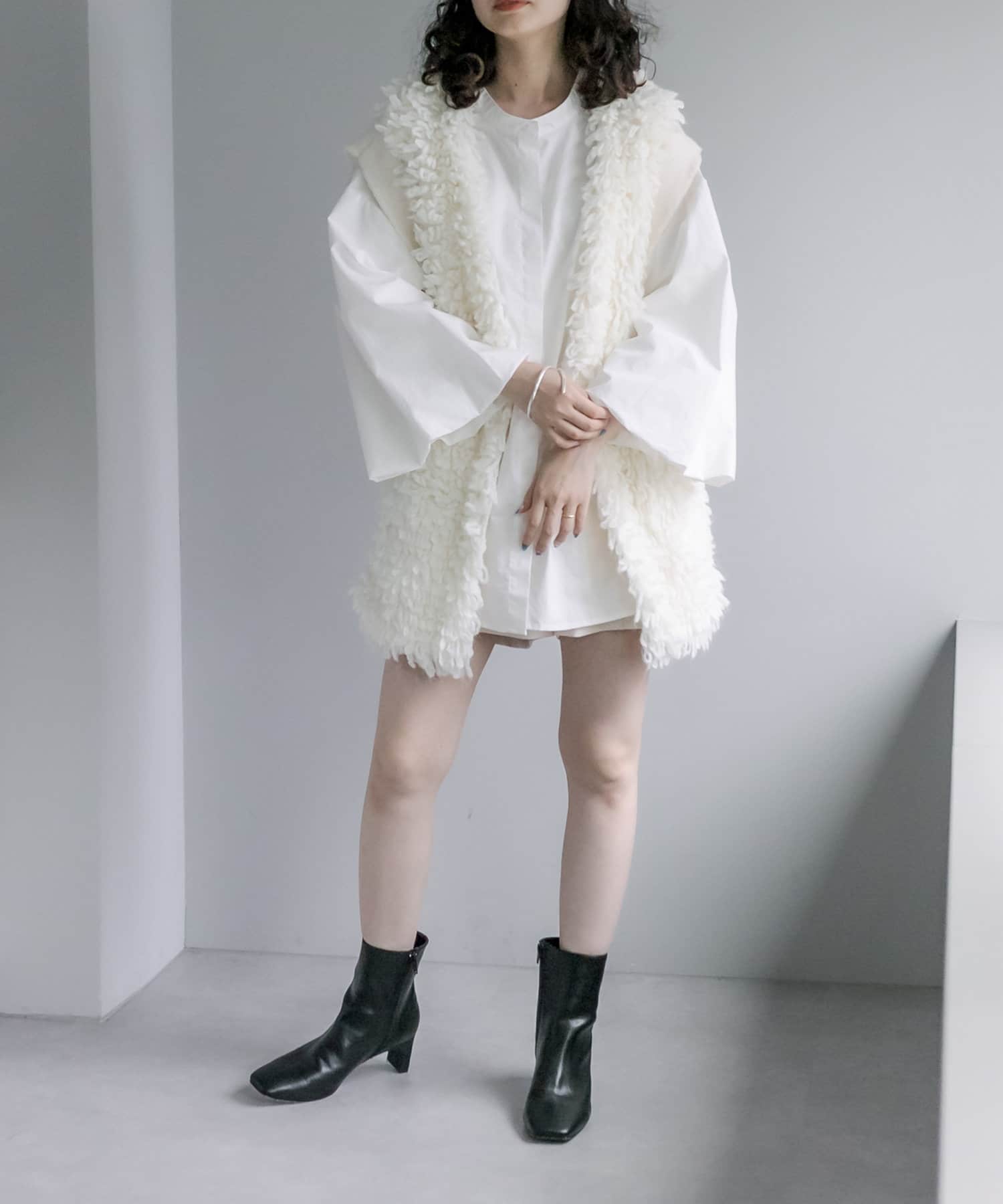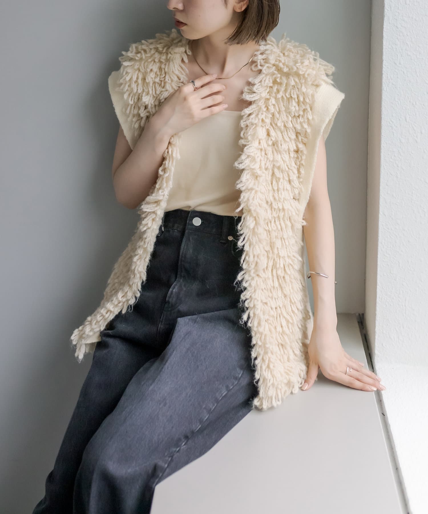 ・スタイリングにプラスするだけで華やかに決まるループベスト。