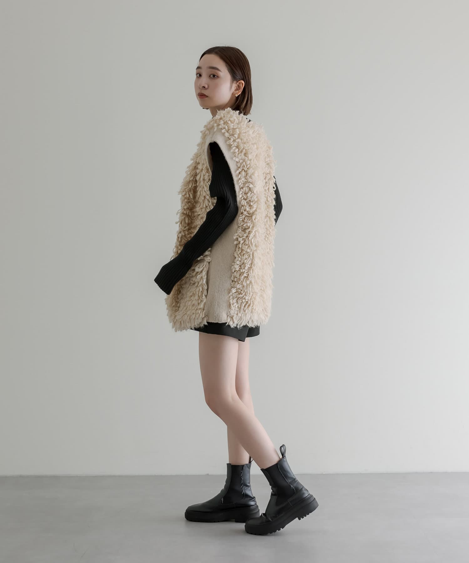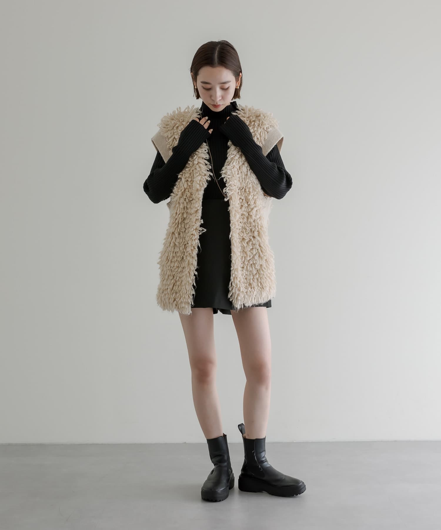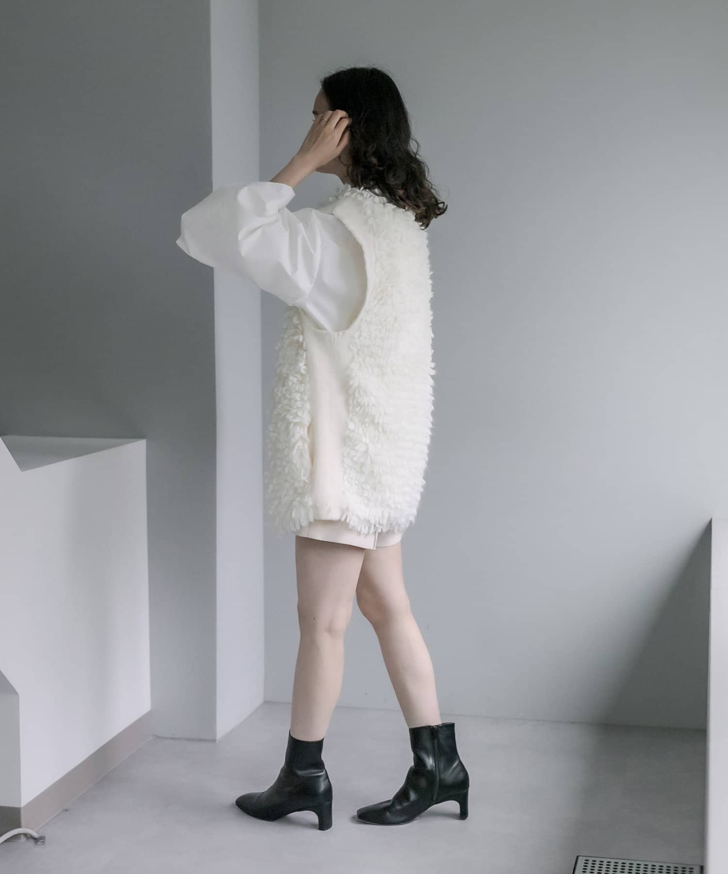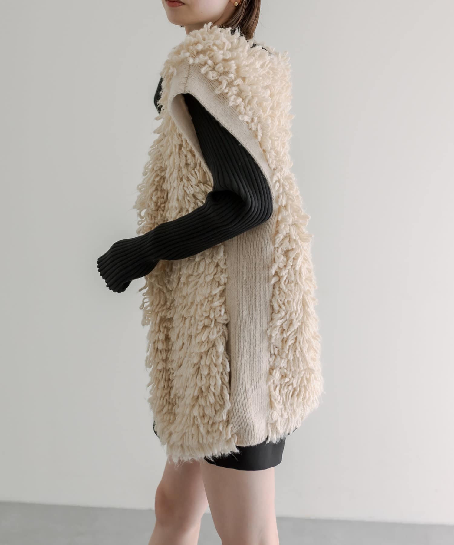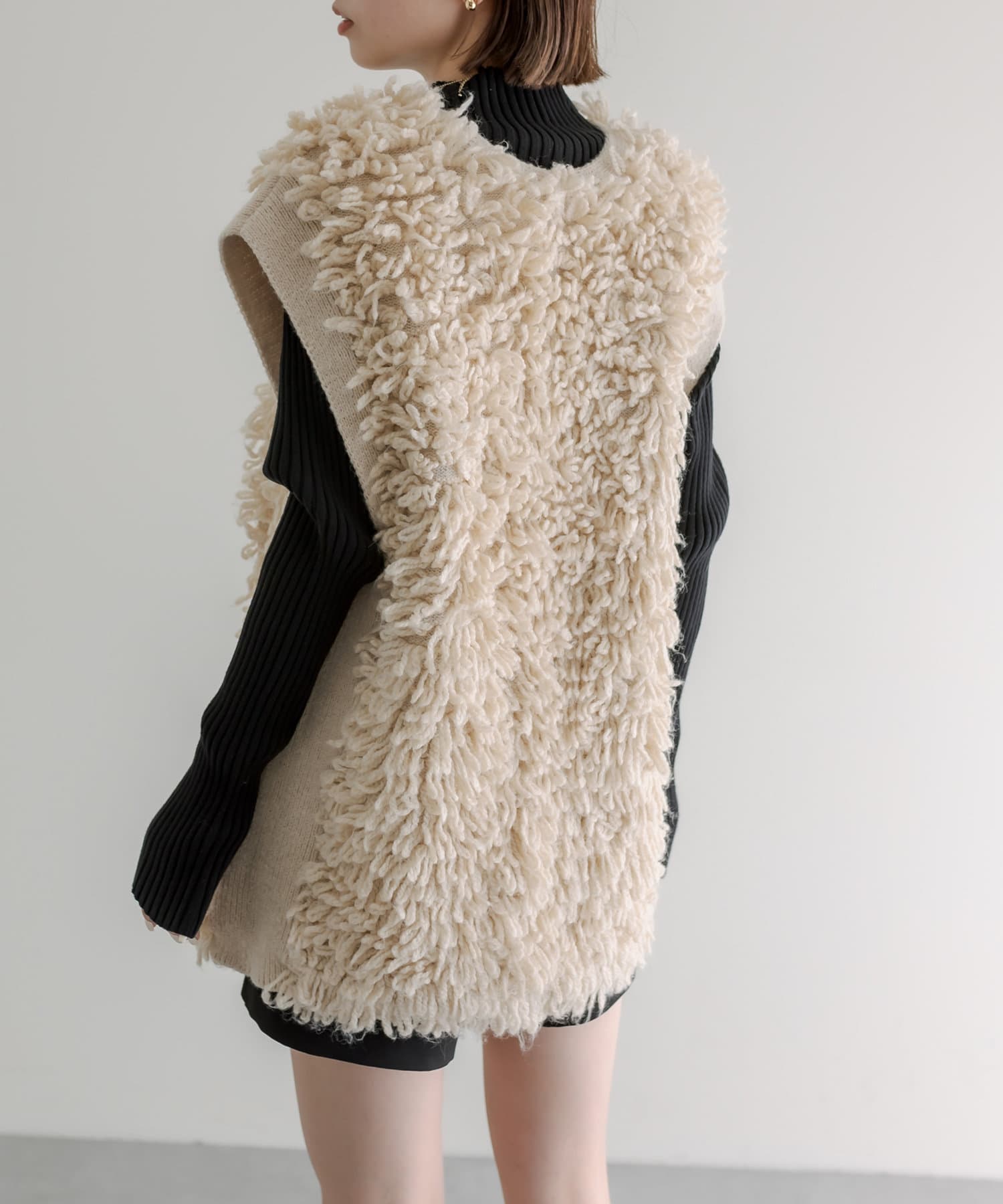 ・スタイリングにプラスするだけで華やかに決まるループベスト。