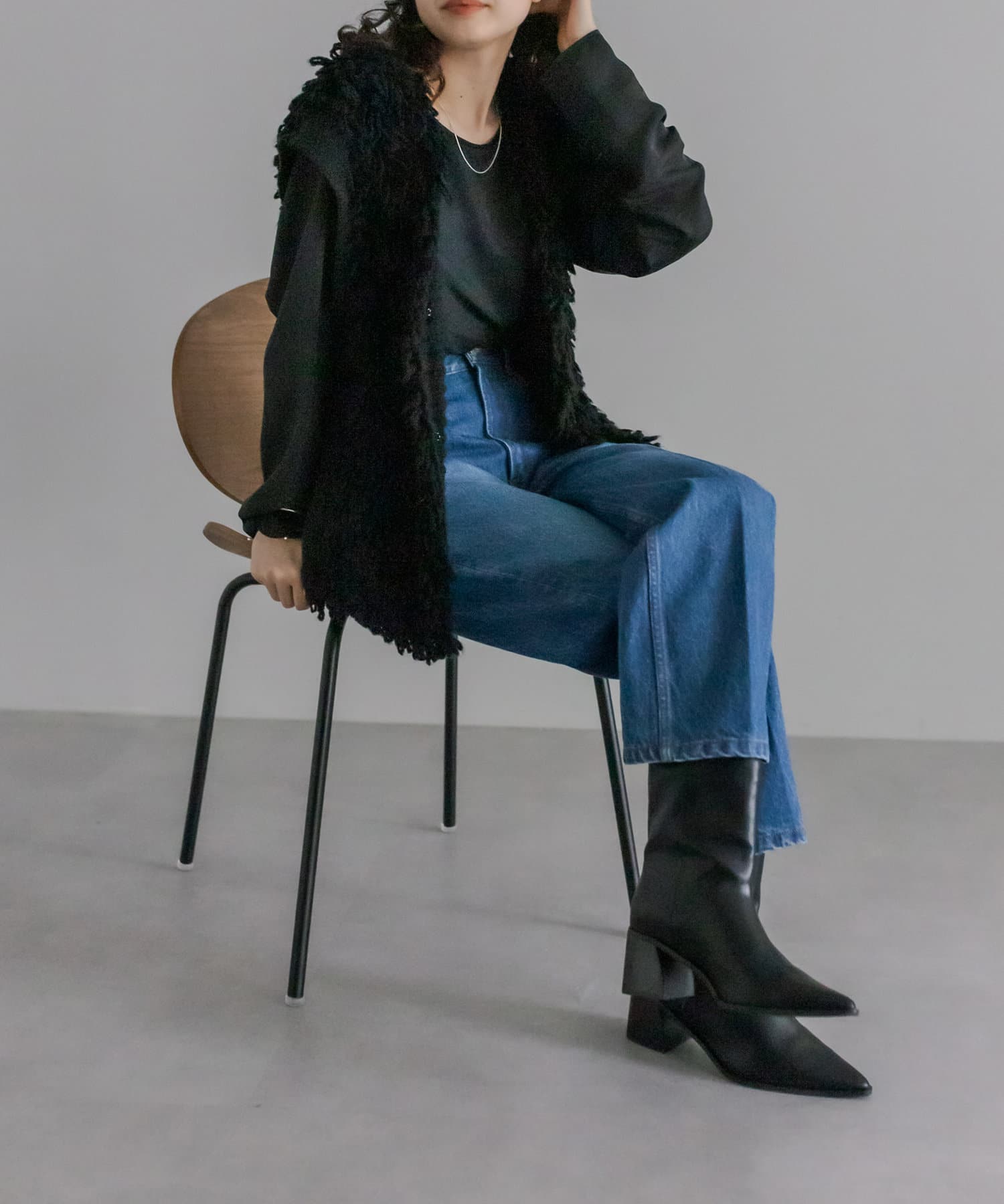 ボリューム感のあるベストなのでキャミソールで合わせて抜け感をプラスしました!