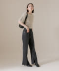 ボトムは裾絞りパンツと、足元はブーツで大人のデートコーデに!