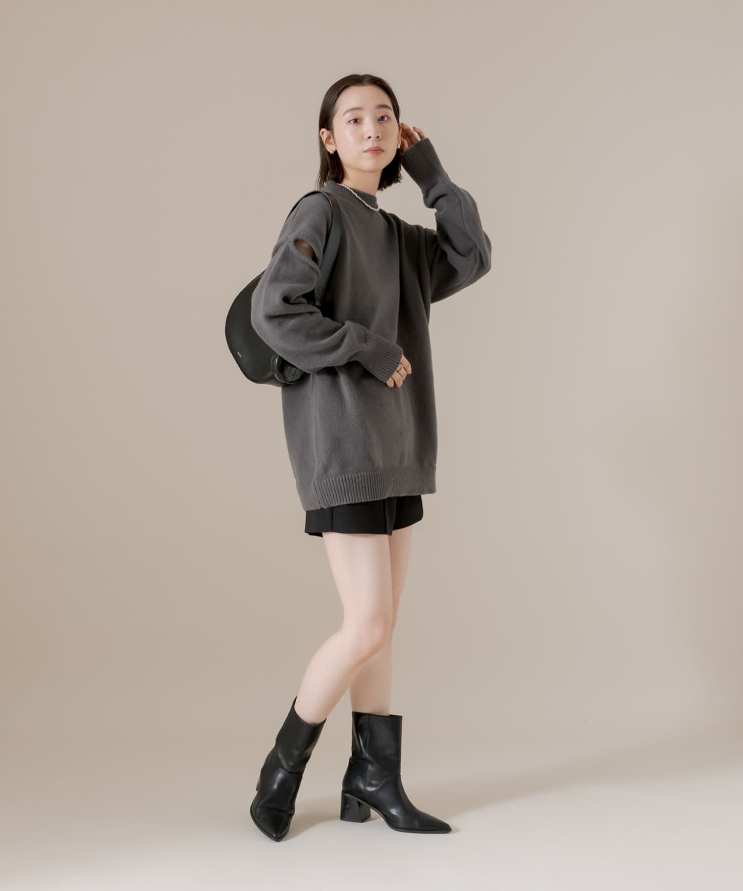 程よい肌見せ、腰回りもカバーしてくれるオーバーサイズニット