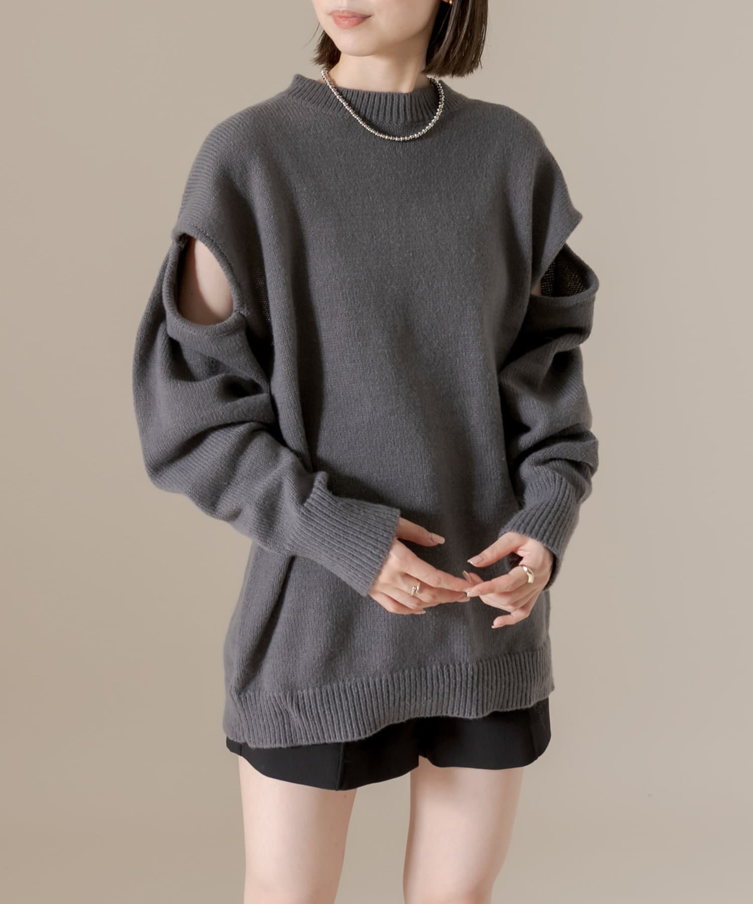 [mline]ショルダースリットニット