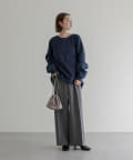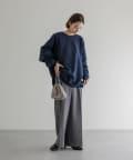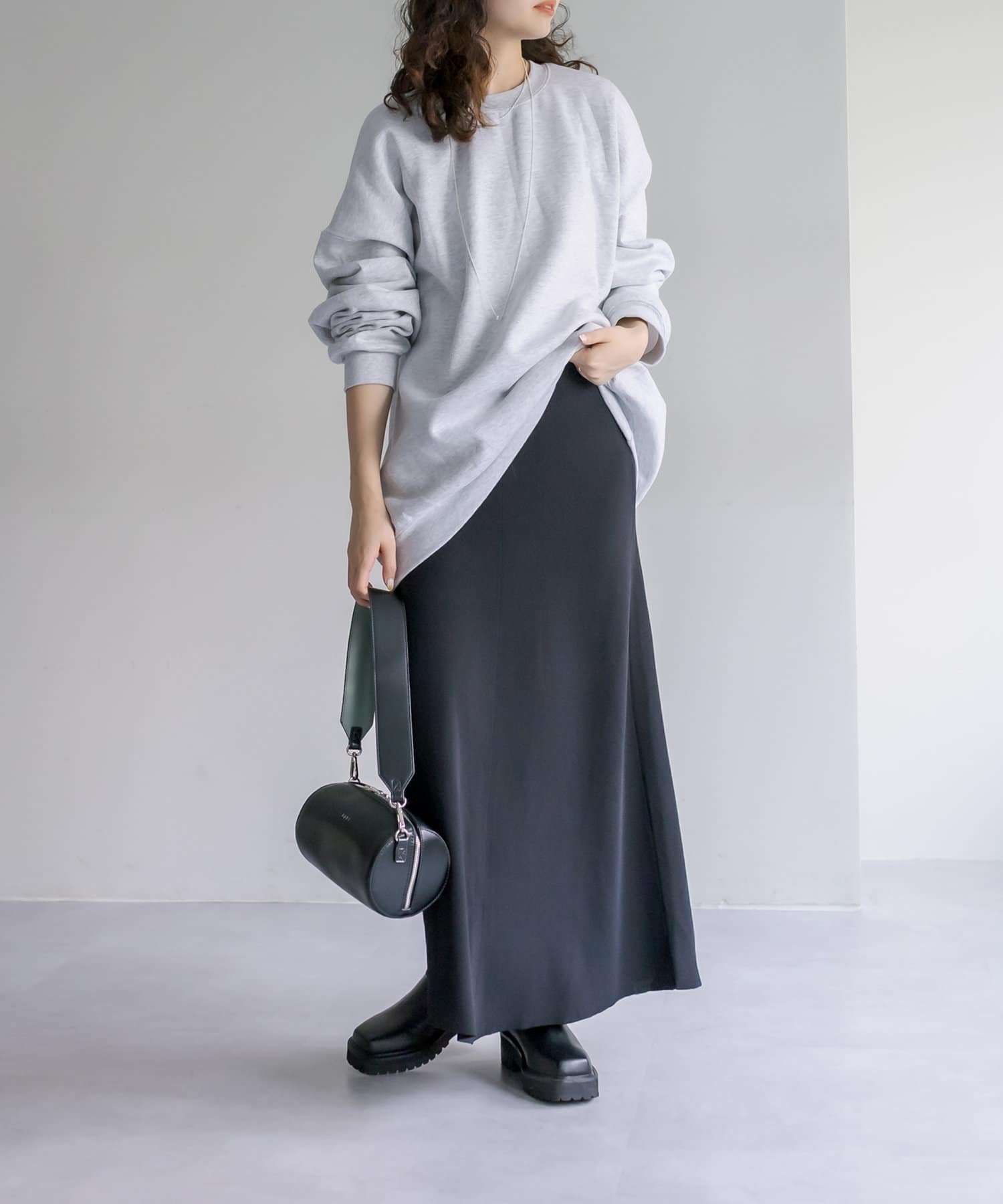 ・ニットスカートに合わせて女性らしいスタイリングも相性抜群。
