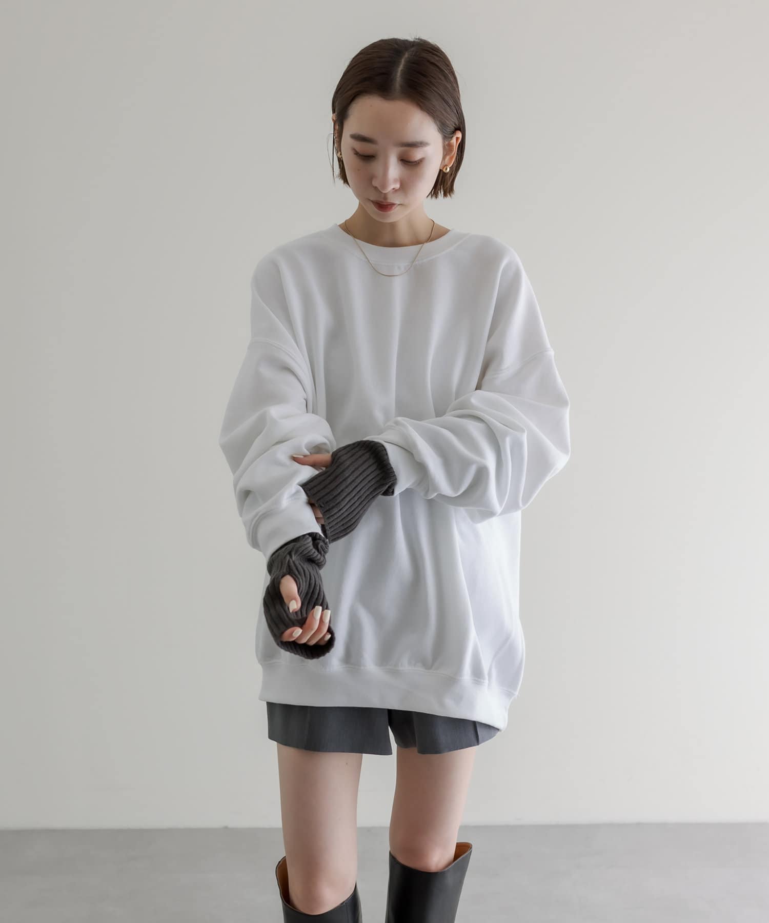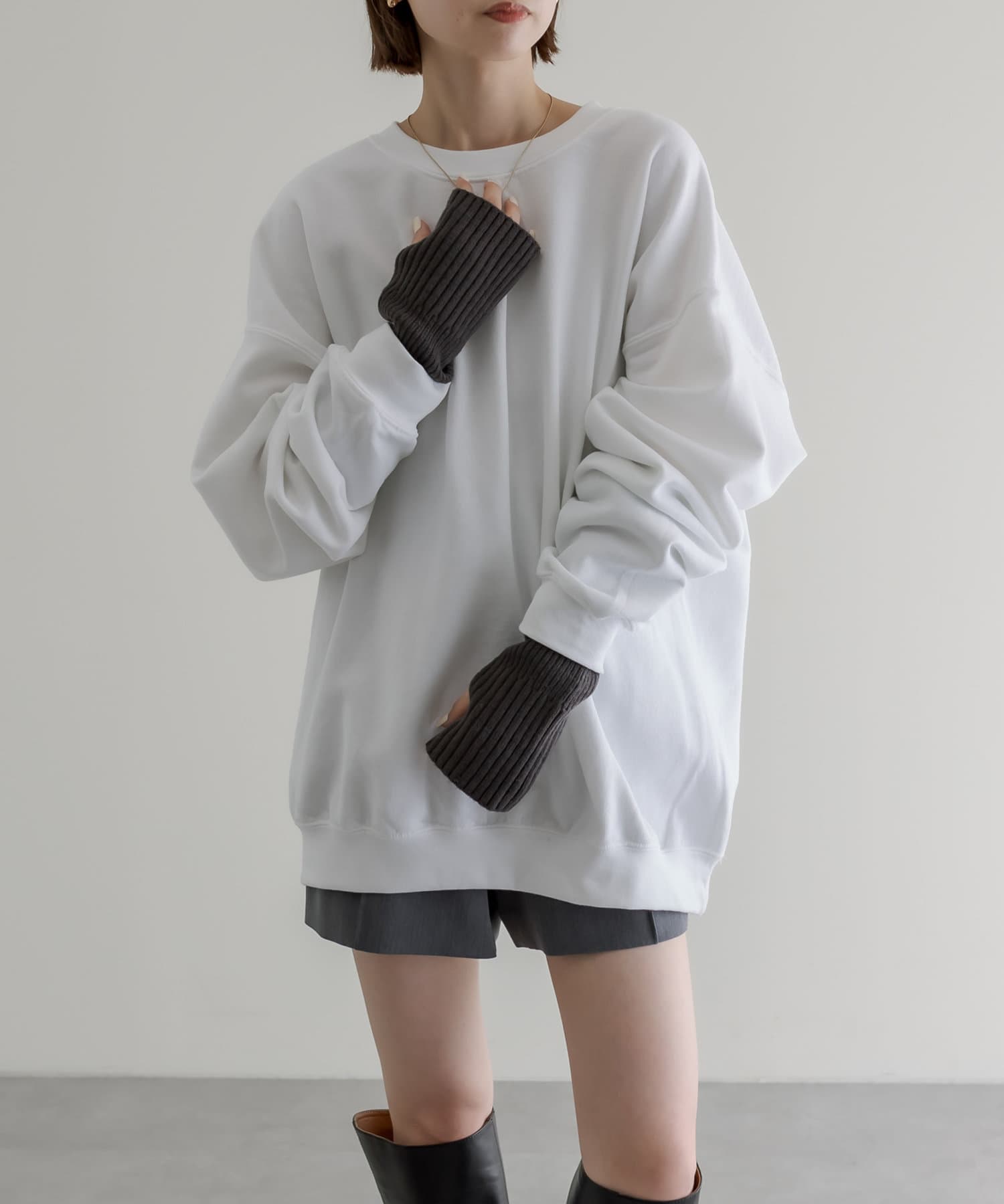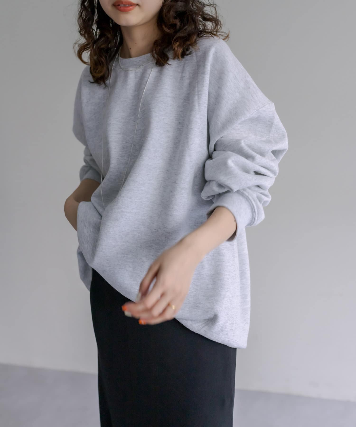 購入場所:店舗オーバーサイズ感がとても可愛いです!裏起毛ですが、薄めなので長い期間着れそうだと思います。前だけインしても形が可愛いのが嬉しいポイントです♪
